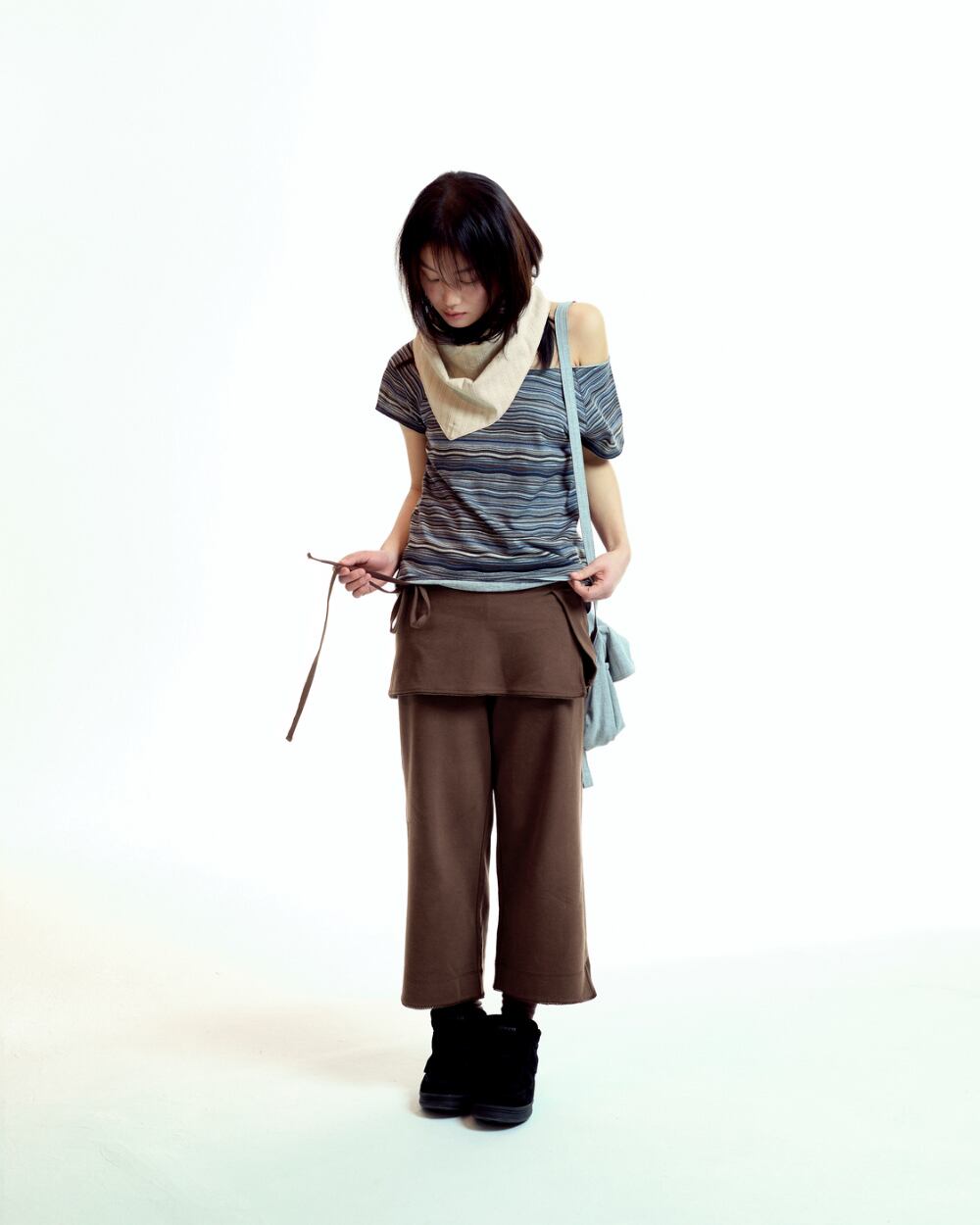 [COYSEIO] SOFT CROPPED SKIRT PANTS BROWN
