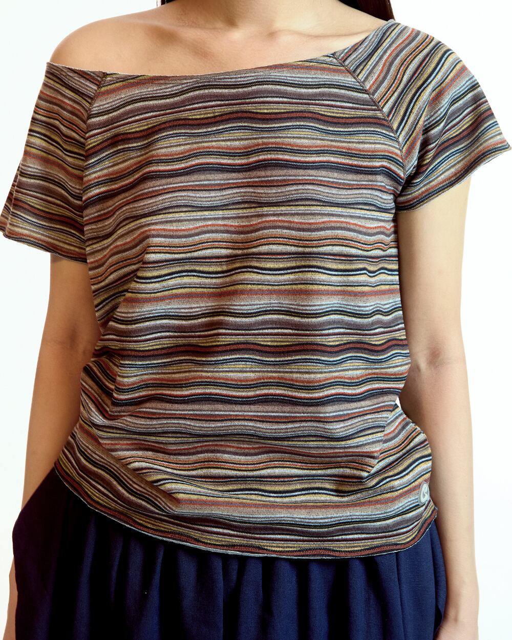 [COYSEIO] WAVE STRIPE KNIT T-SHIRT BROWN