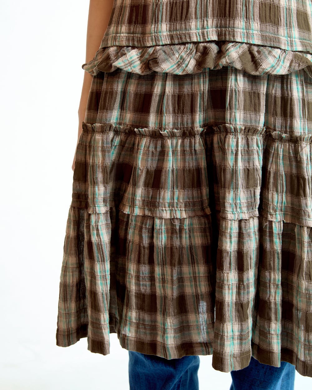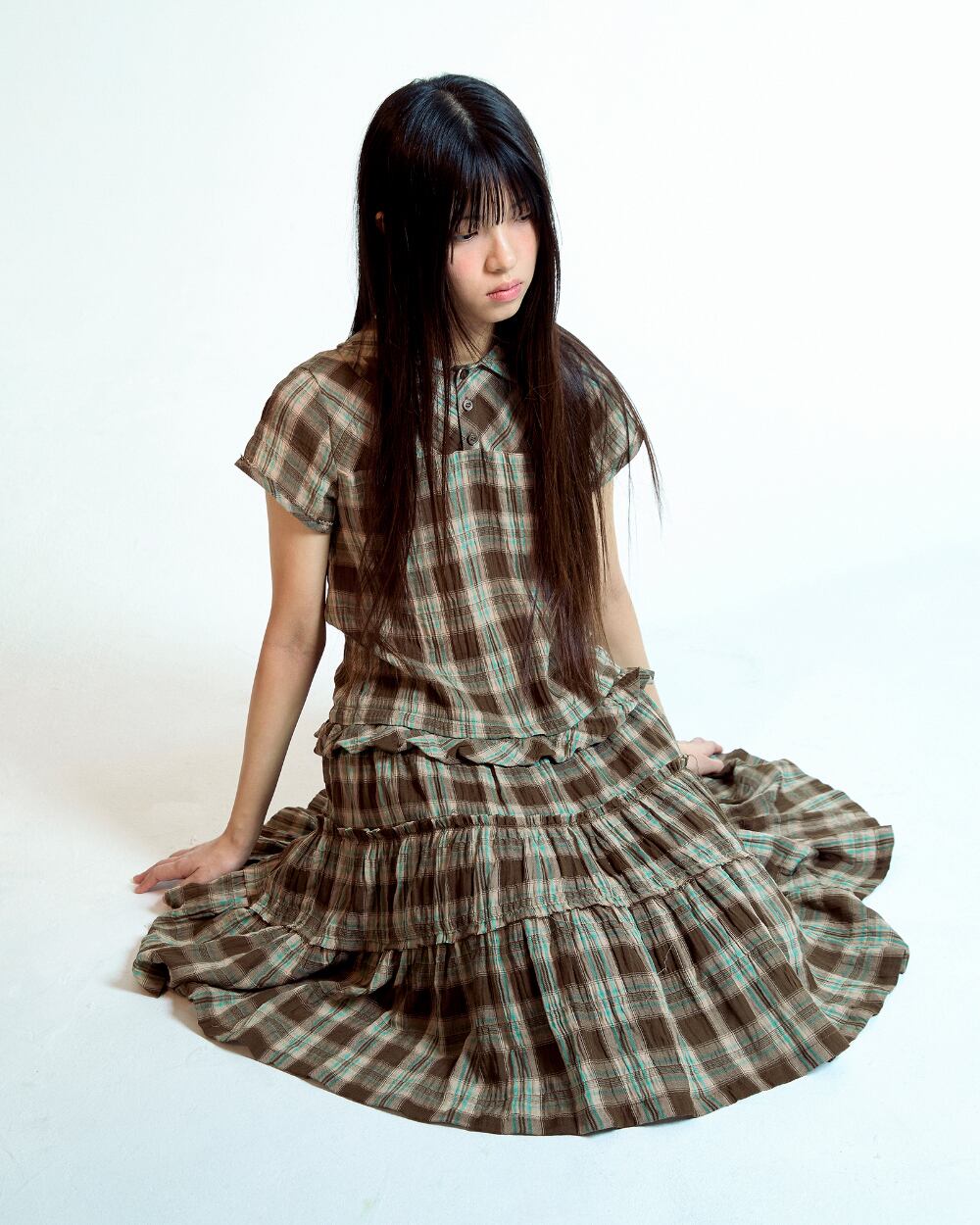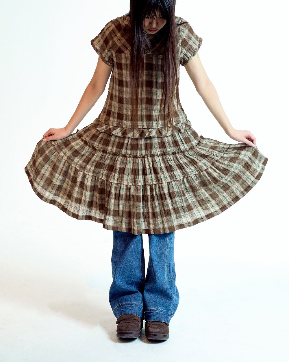 [COYSEIO] RAW EDGE CHECK ONE PIECE BROWN