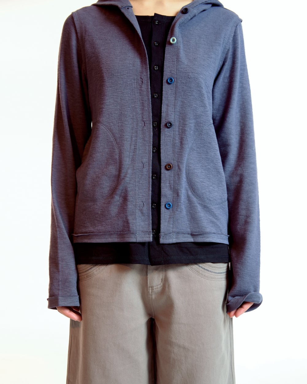 [COYSEIO] TWOFOLD BUTTON-UP HOODIE CHARCOAL