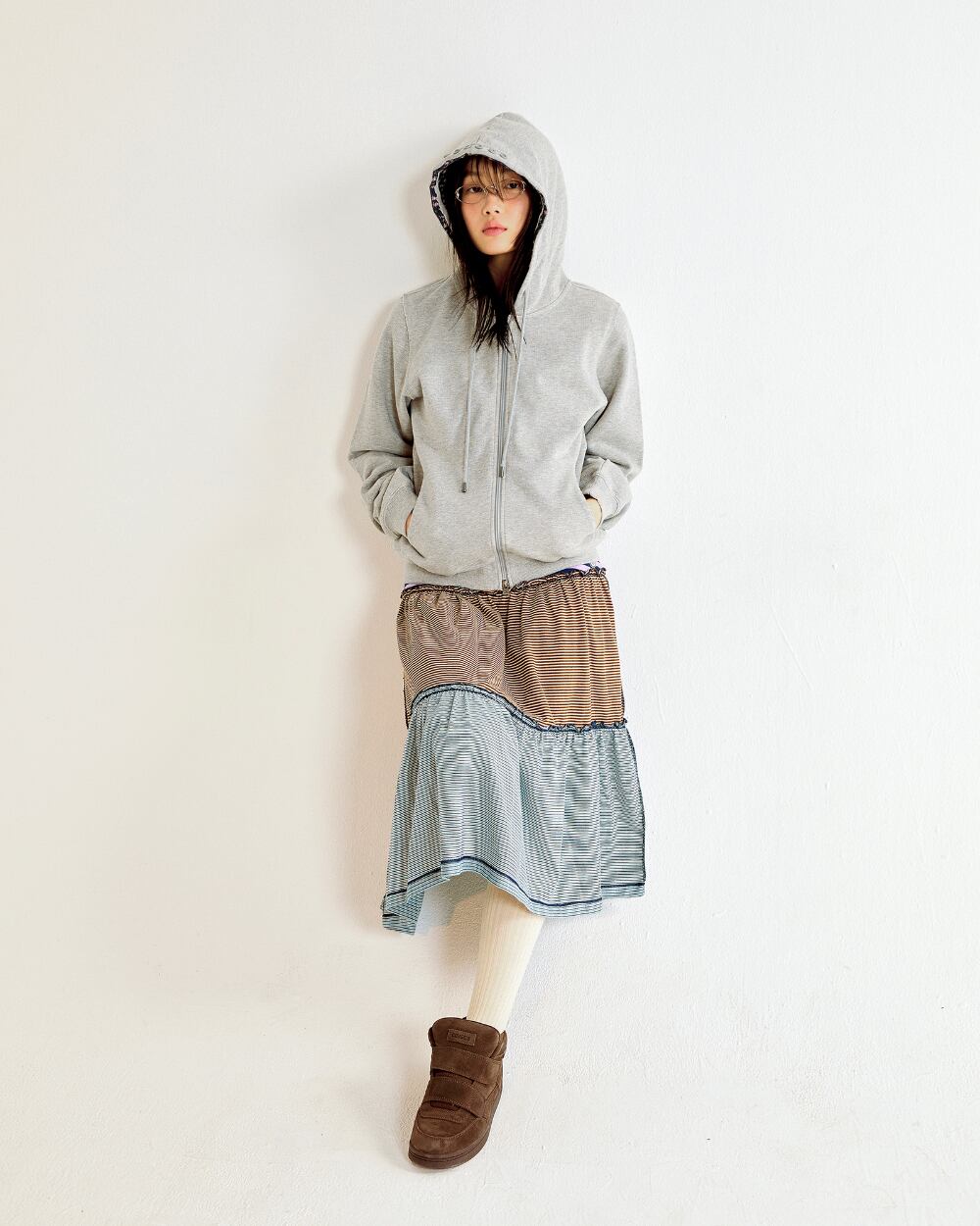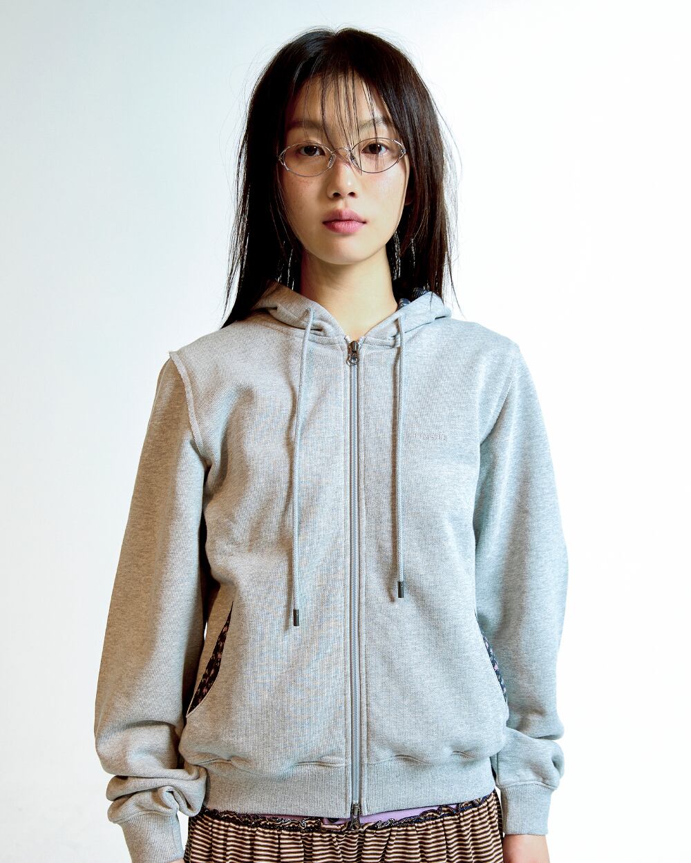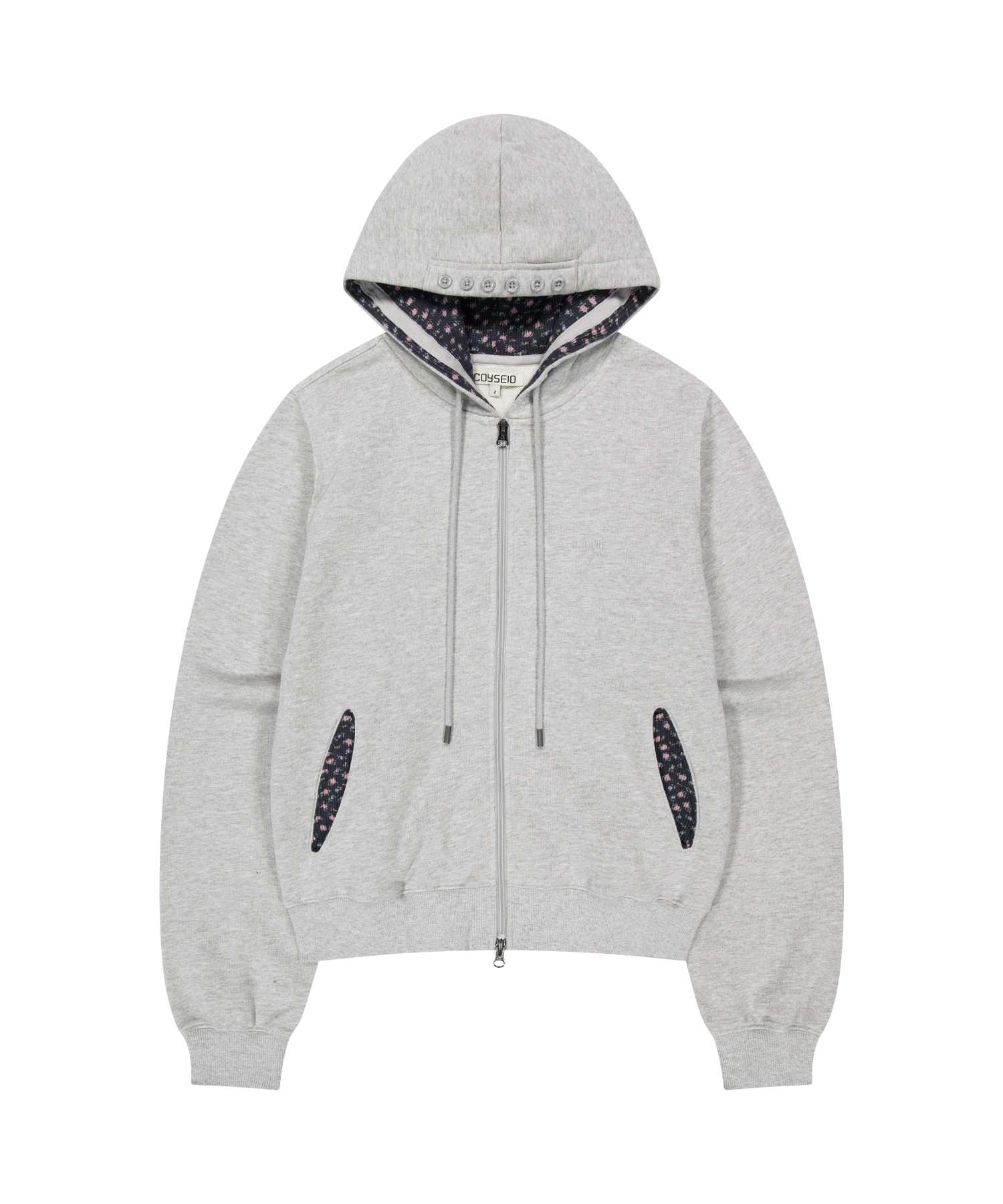 [COYSEIO] FLOWER POINT ZIP-UP HOODIE MELANGE GREY