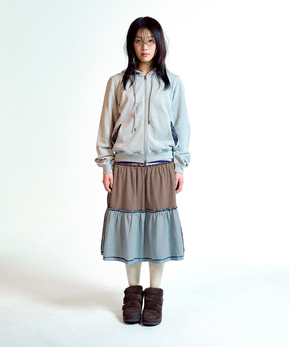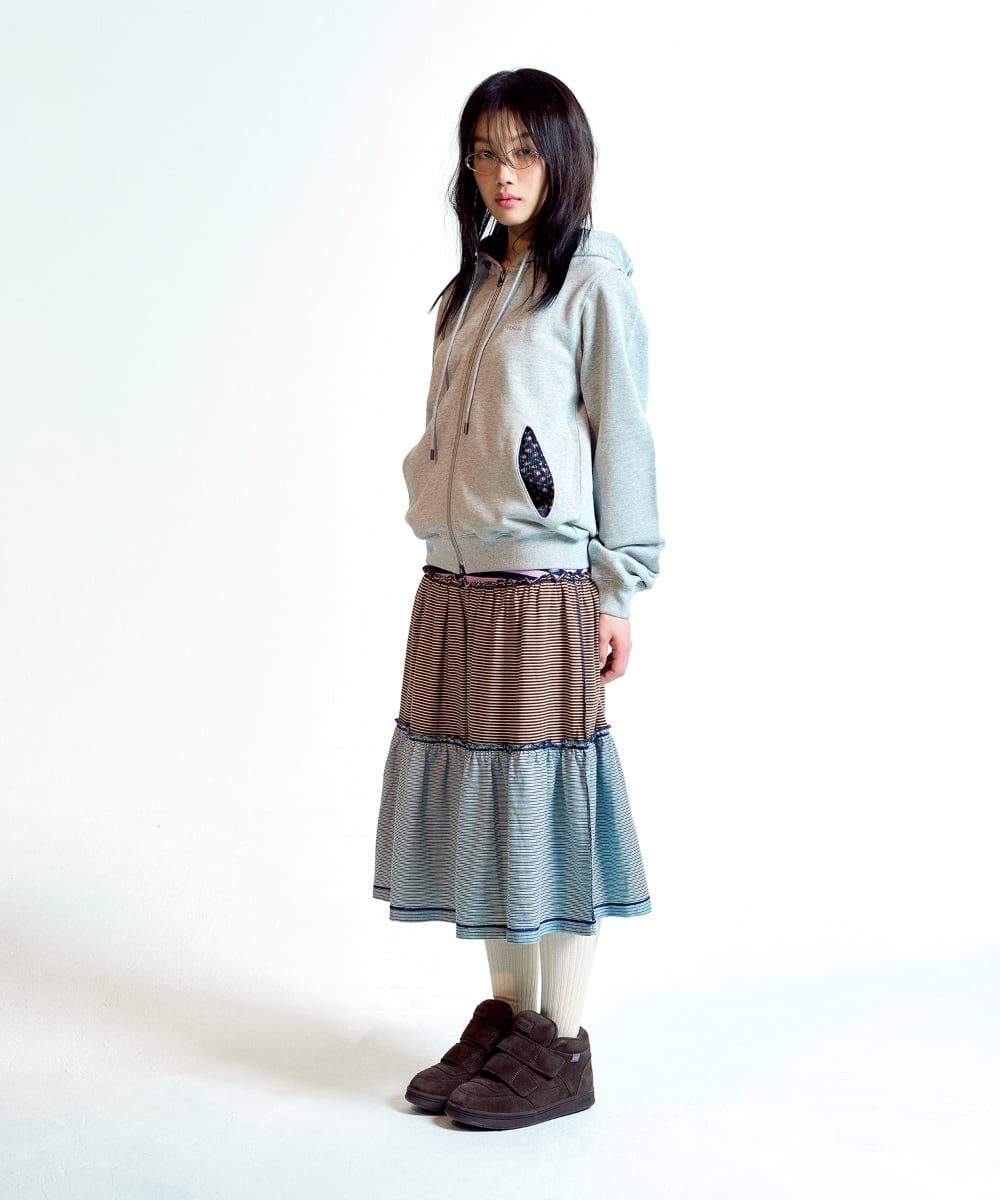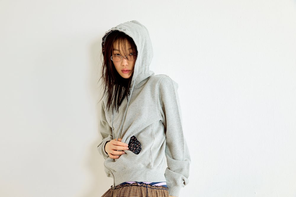 [COYSEIO] FLOWER POINT ZIP-UP HOODIE MELANGE GREY