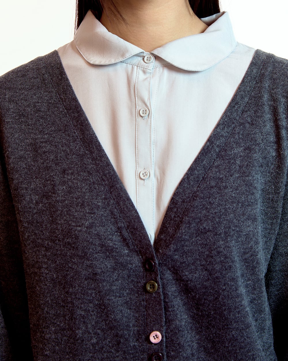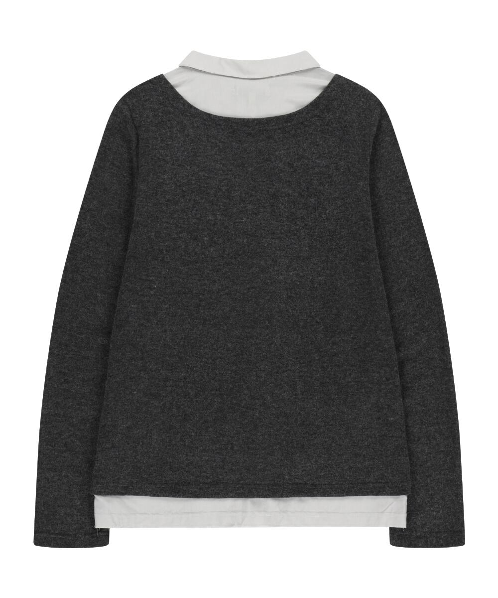 [COYSEIO] LAYERED SHIRT CARDIGAN DARK GREY