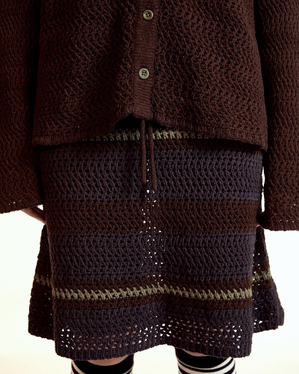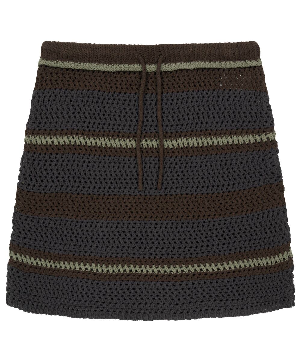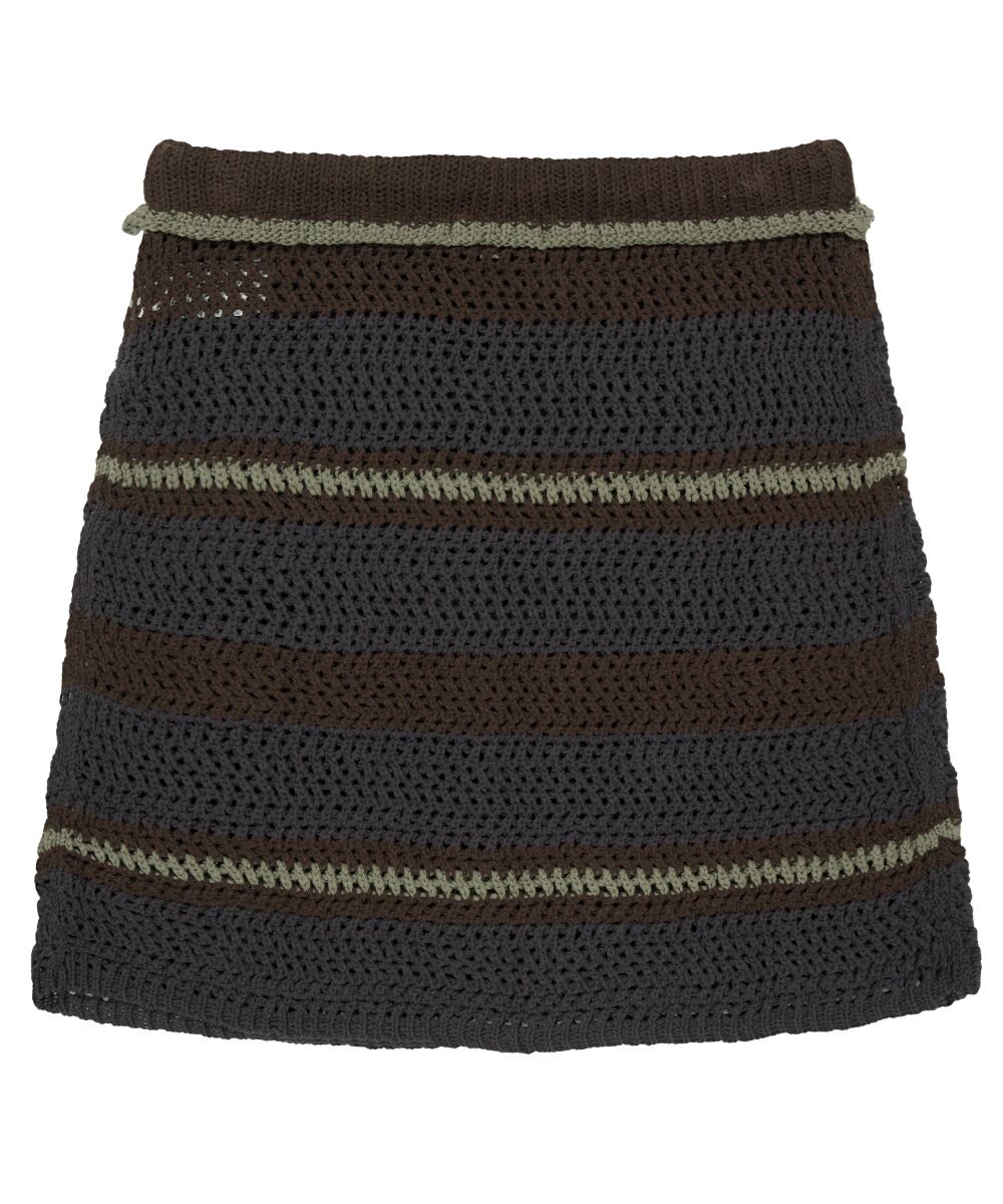 [COYSEIO] STRIPE LAYERED KNIT SKIRT BROWN