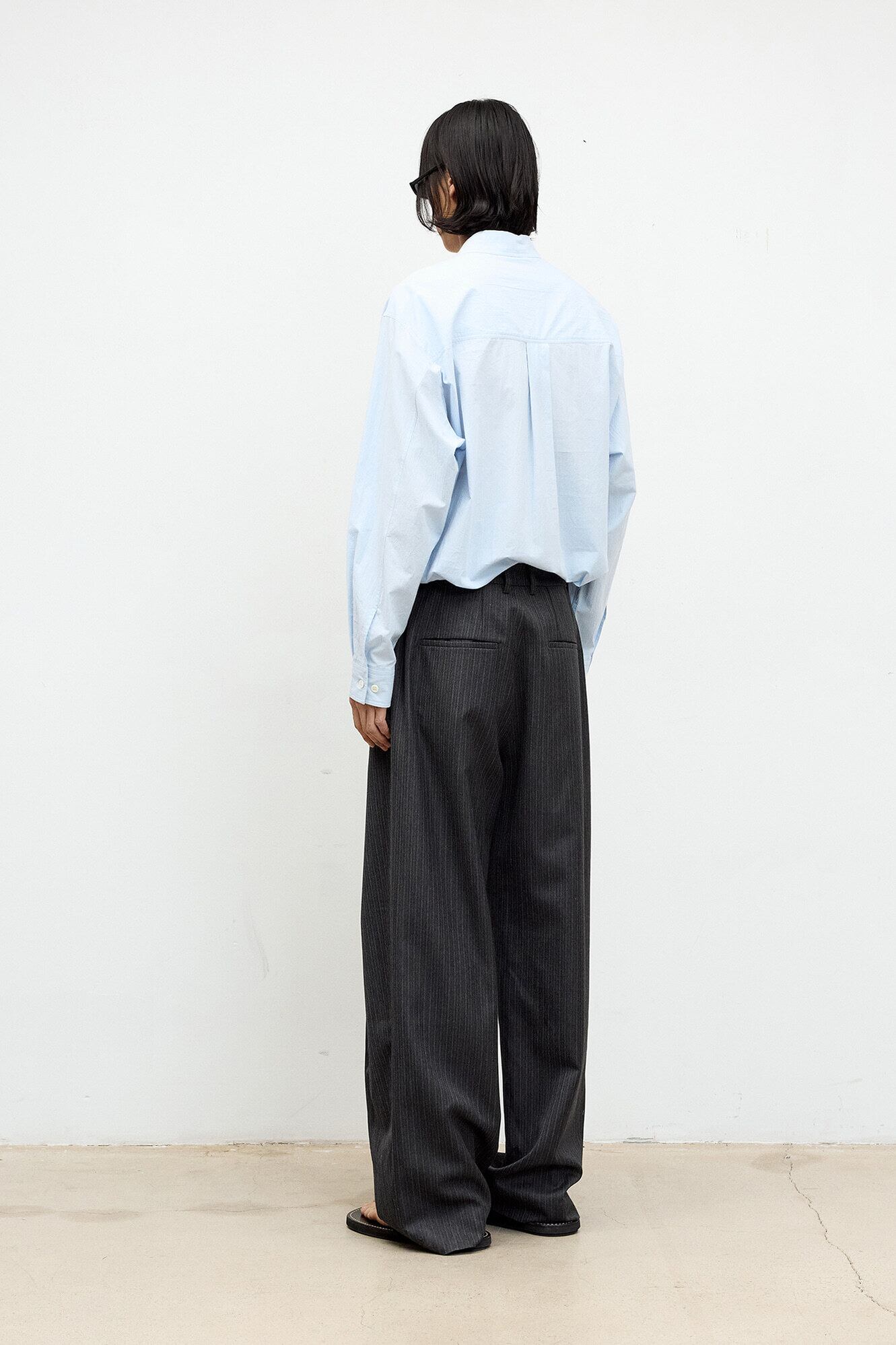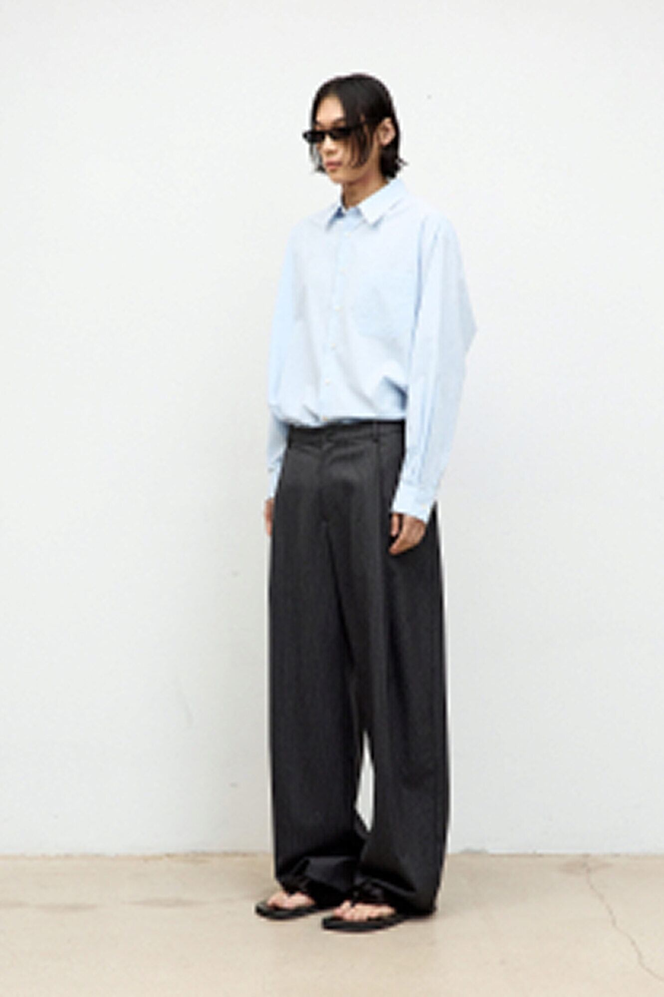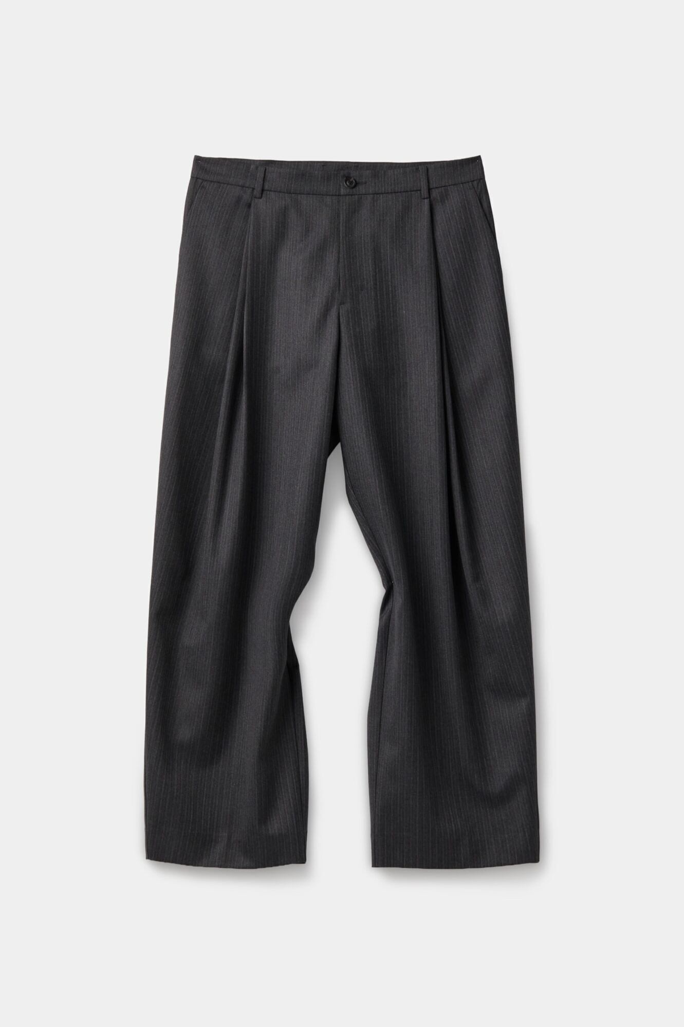 [COOR] Stripe Wool Blend Pleated Trousers (Charcoal Gray)