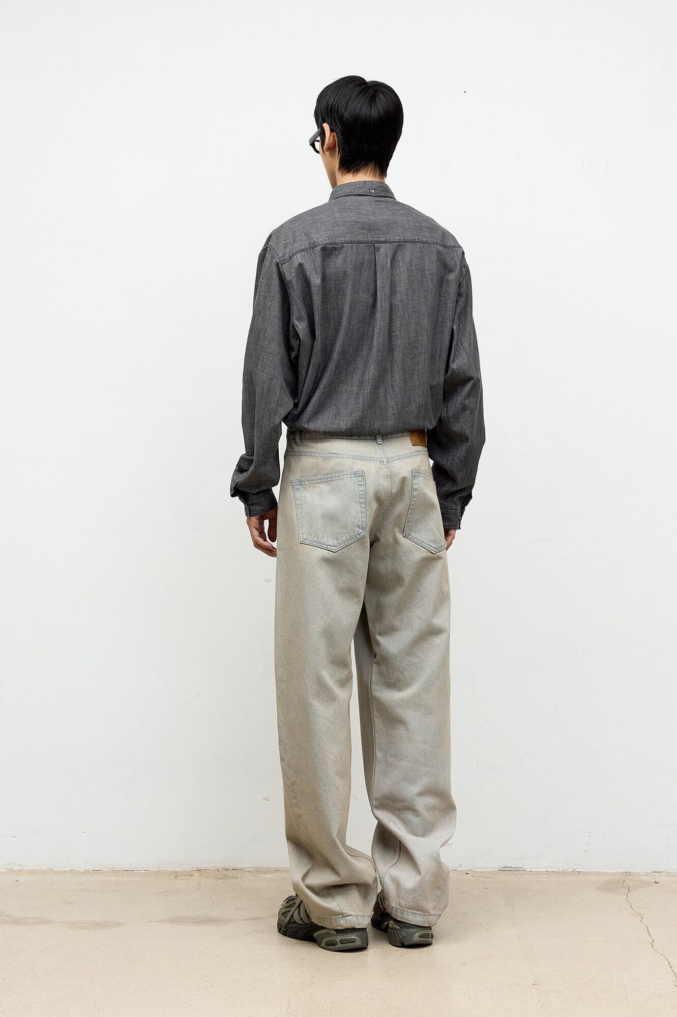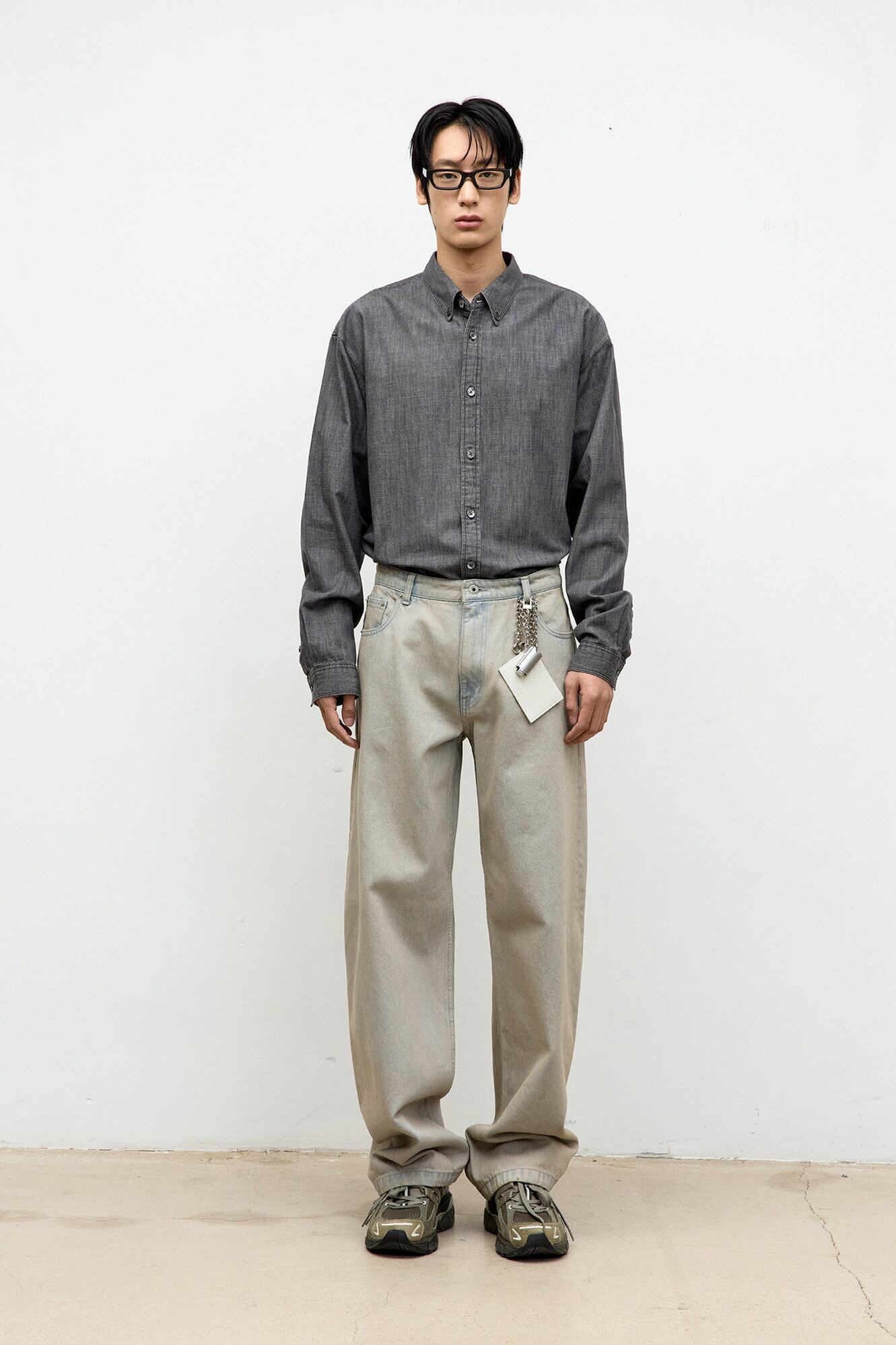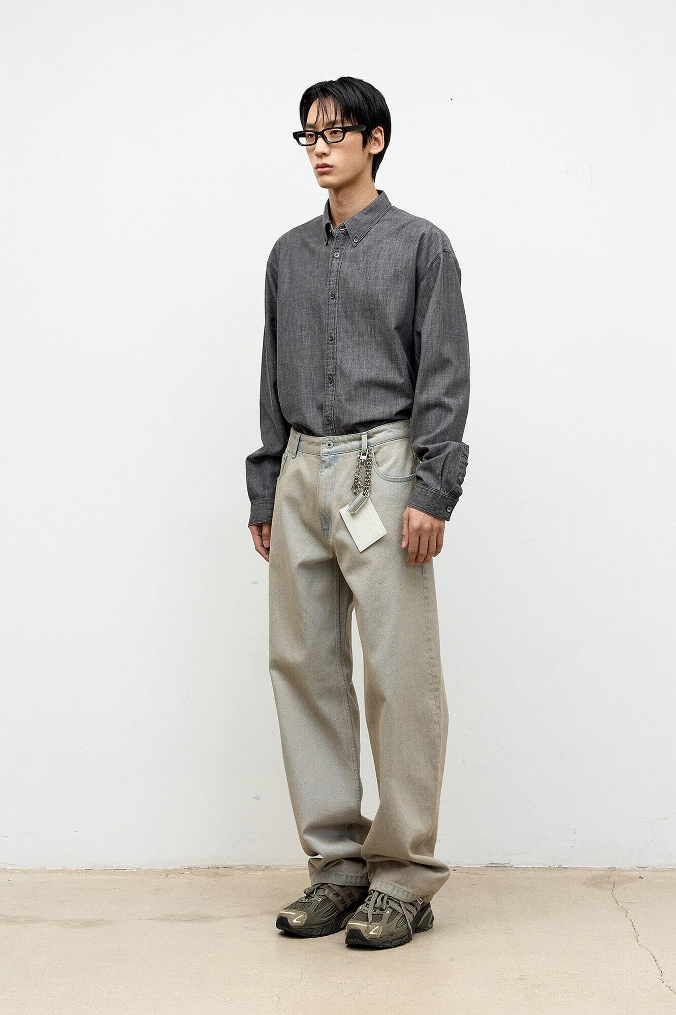 [COOR] Button Down Light Denim Shirt (Washed Gray)