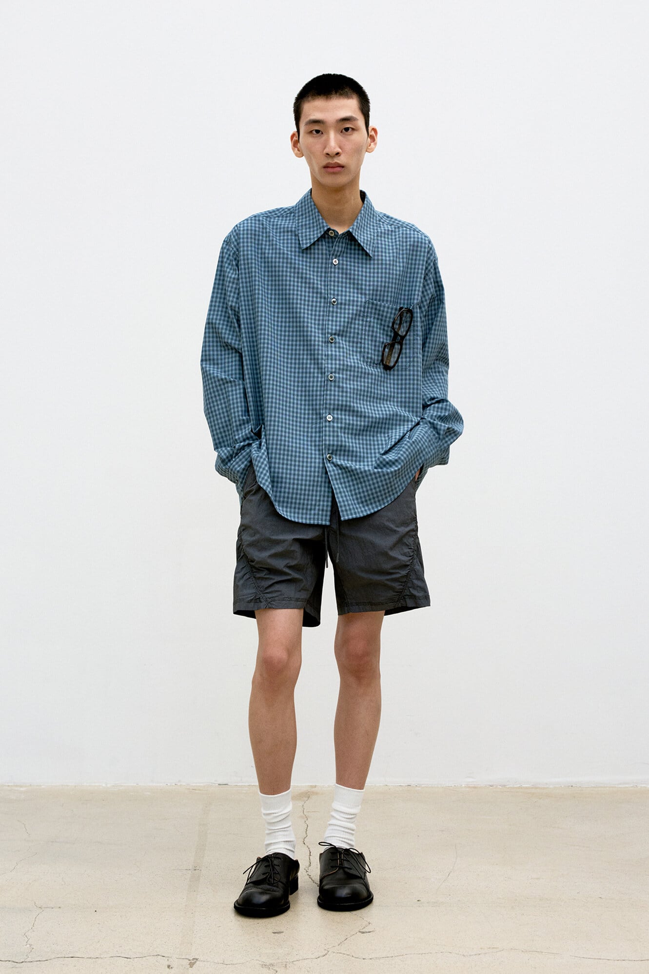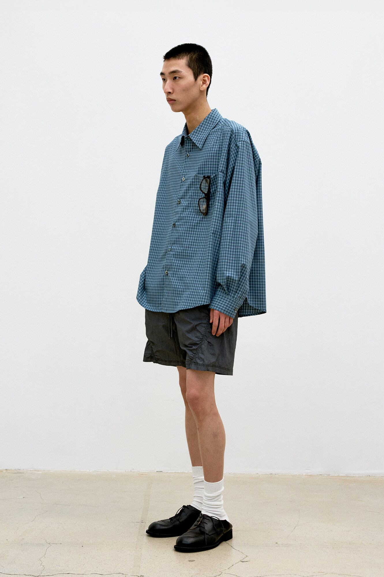 [COOR] Micro Ombre Check Shirt (Navy)