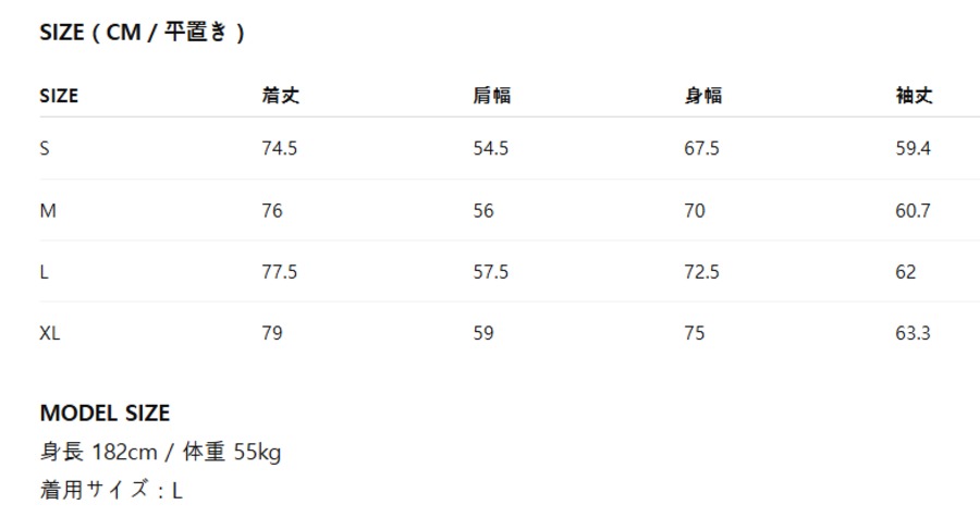 下記のサイズ表をご参照ください。