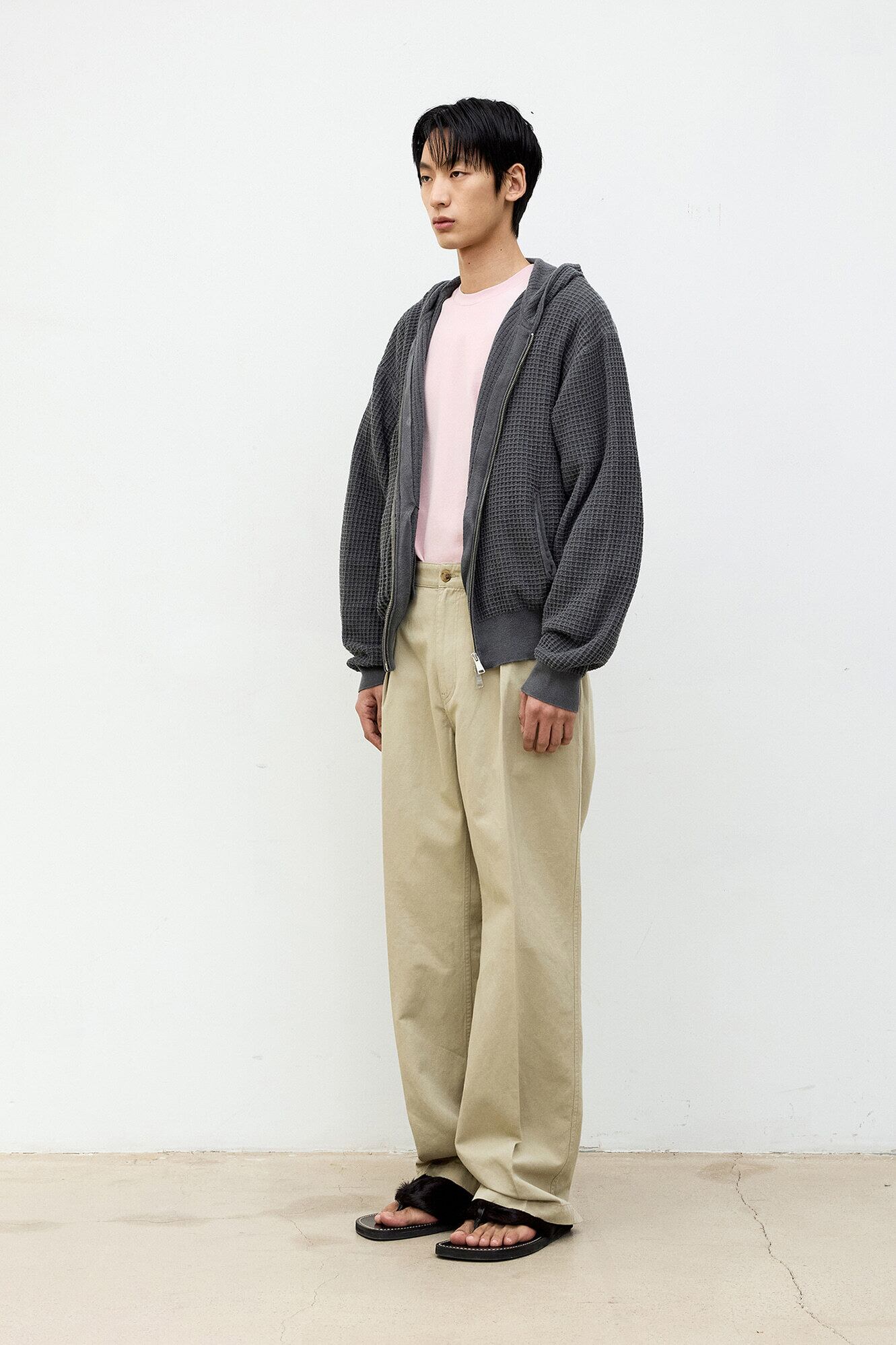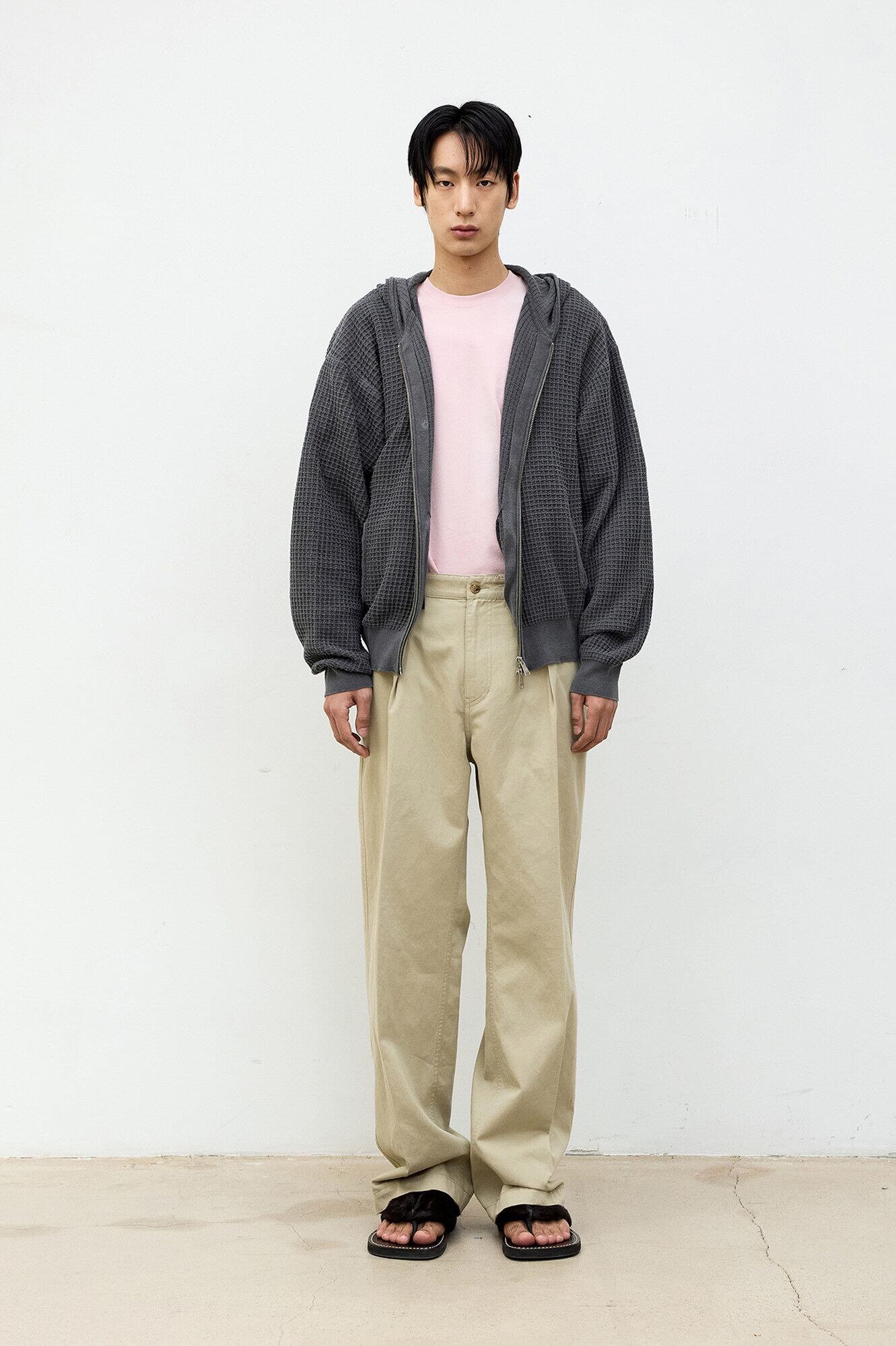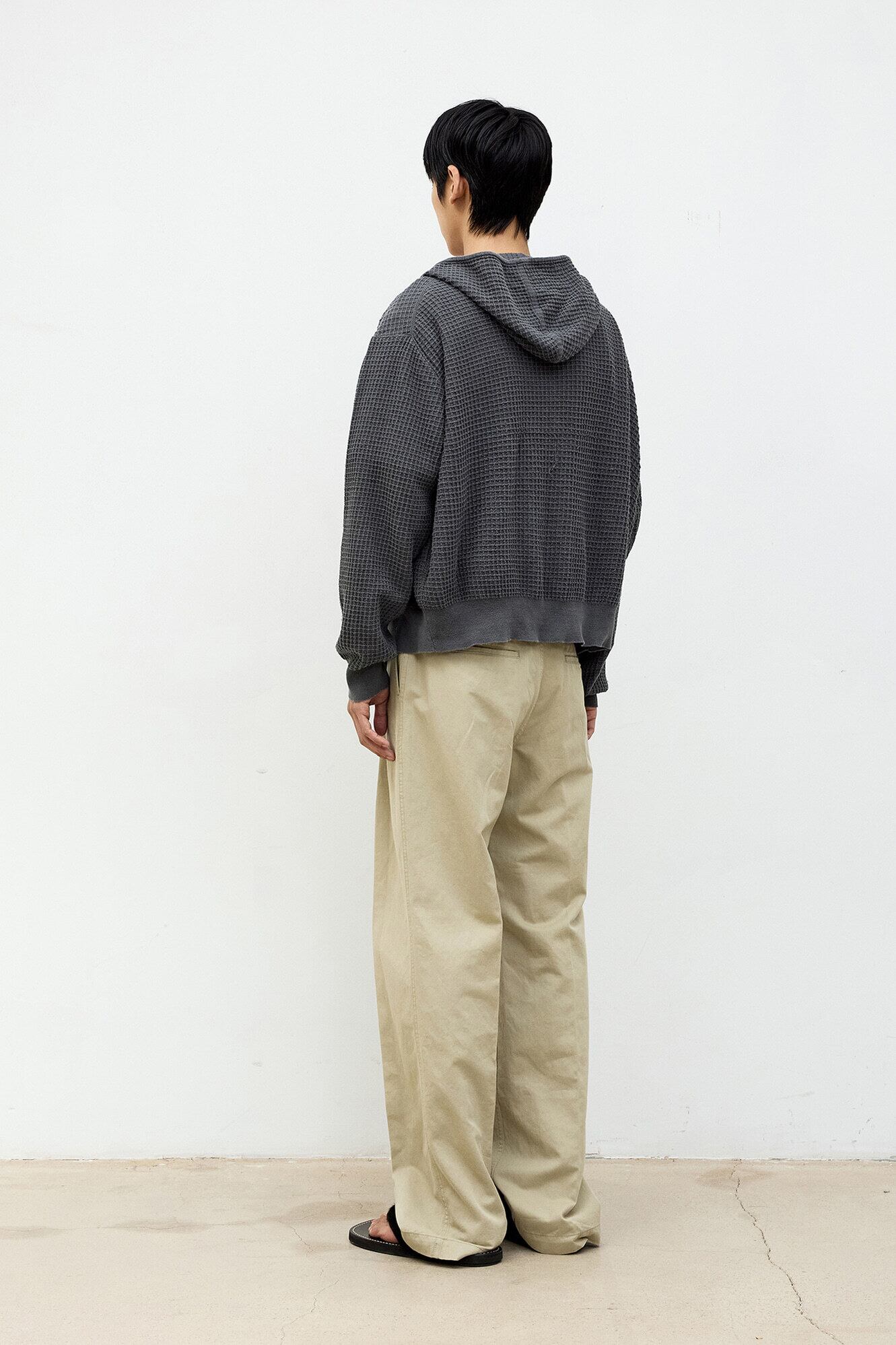 [COOR] Waffle Cotton Color Dyed Hoodie Zip-Up (Washed Charcoal)