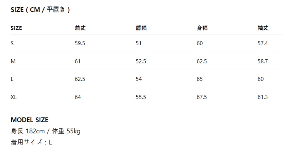 下記のサイズ表をご参照ください。