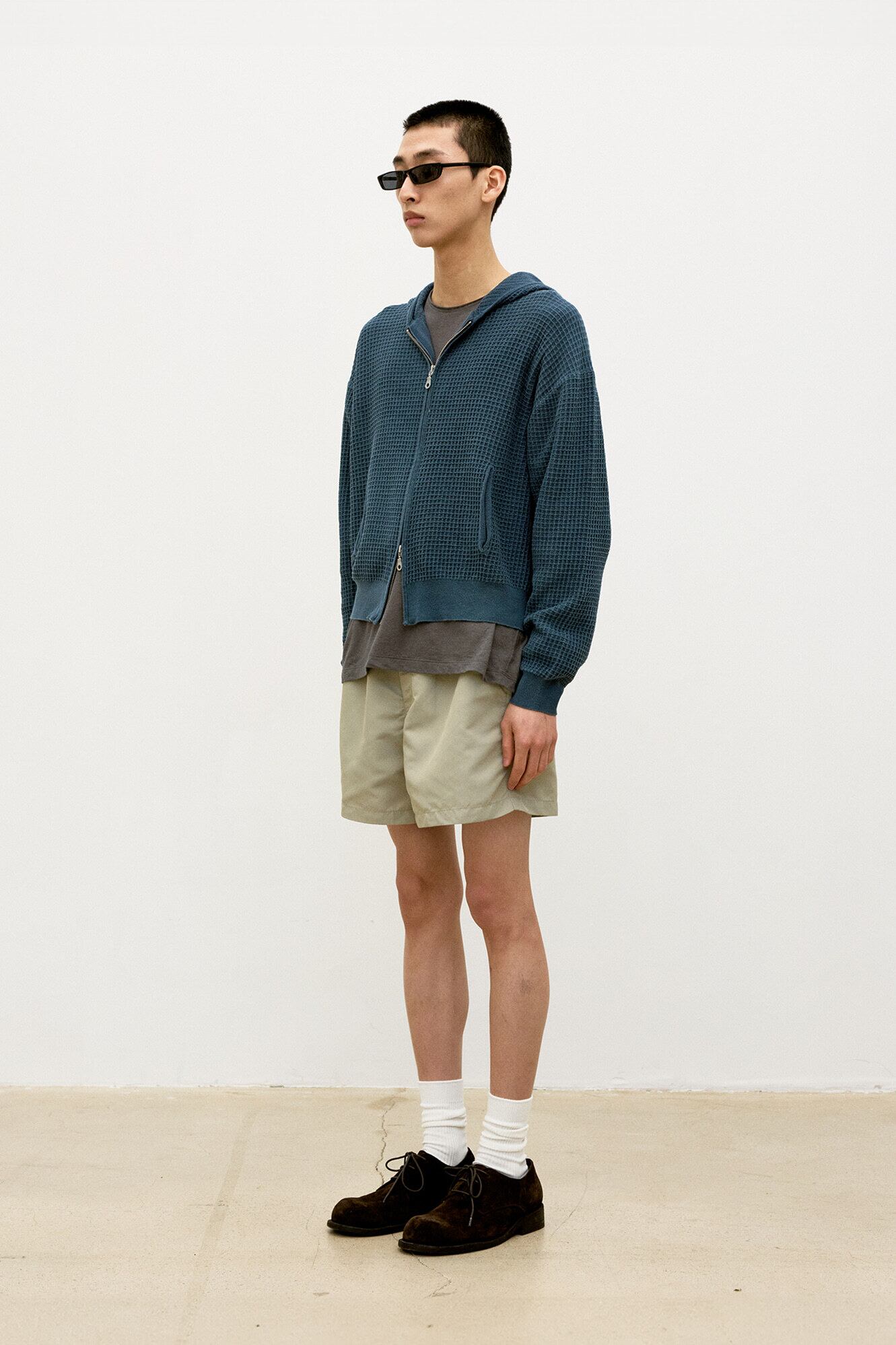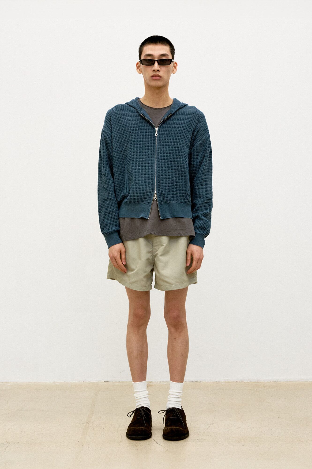 [COOR] Waffle Cotton Color Dyed Hoodie Zip-Up (Washed Navy)