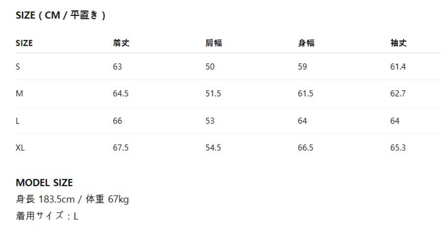下記のサイズ表をご参照ください。