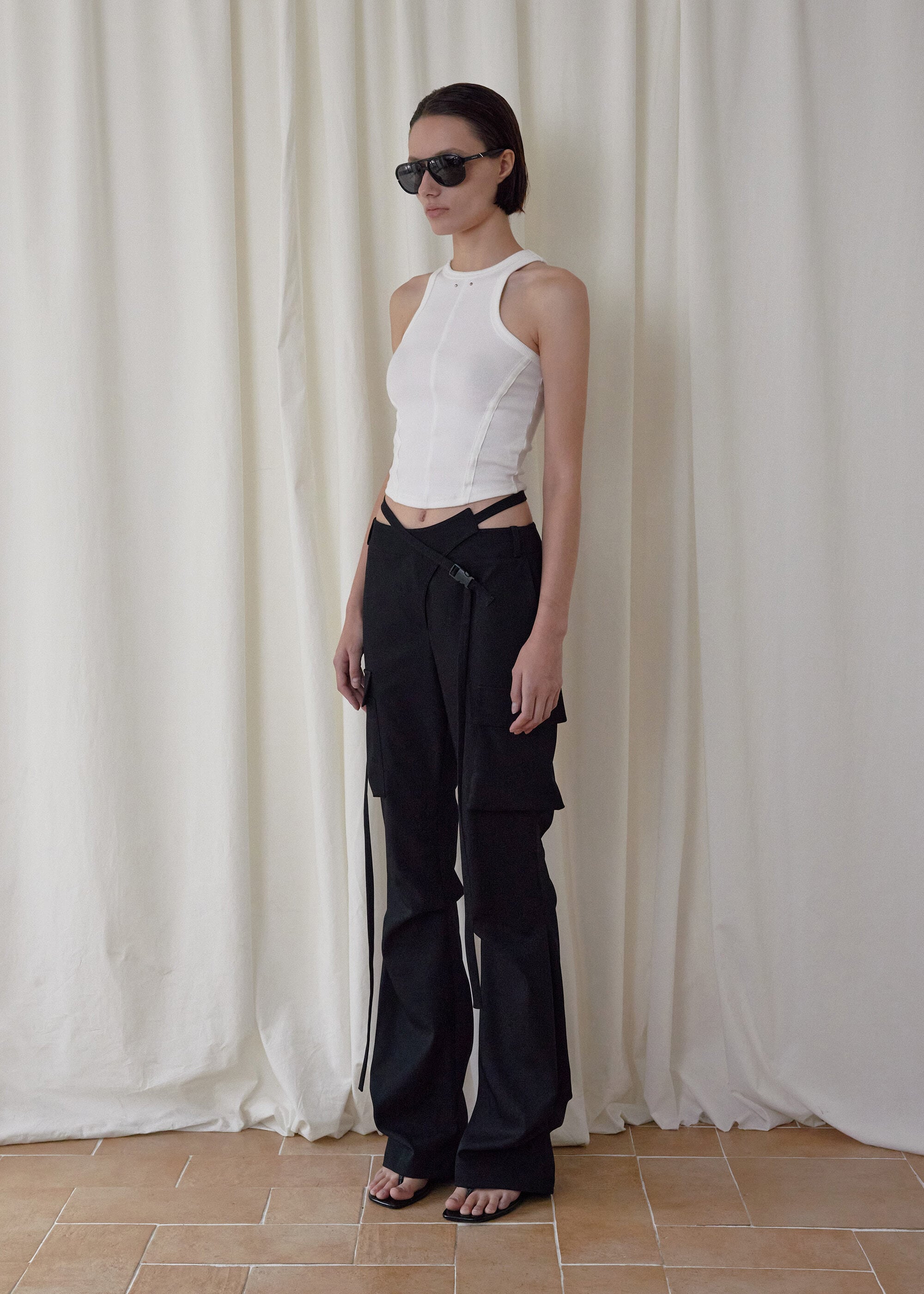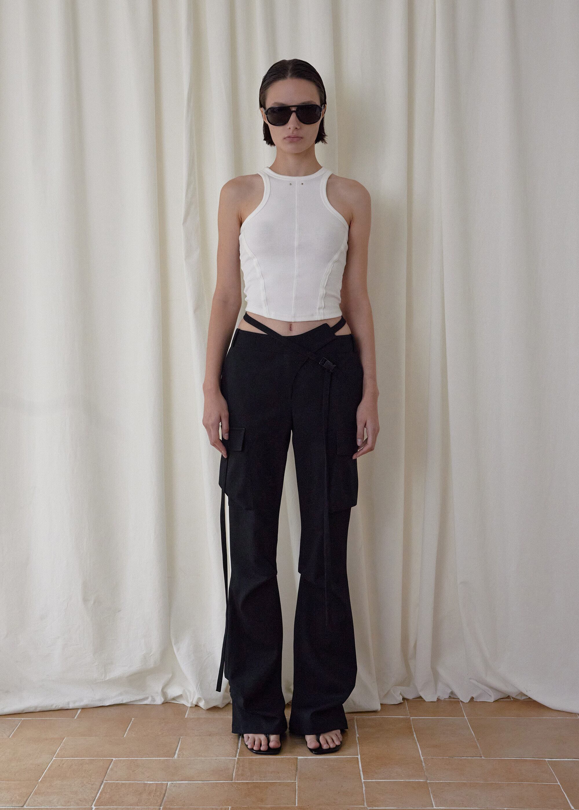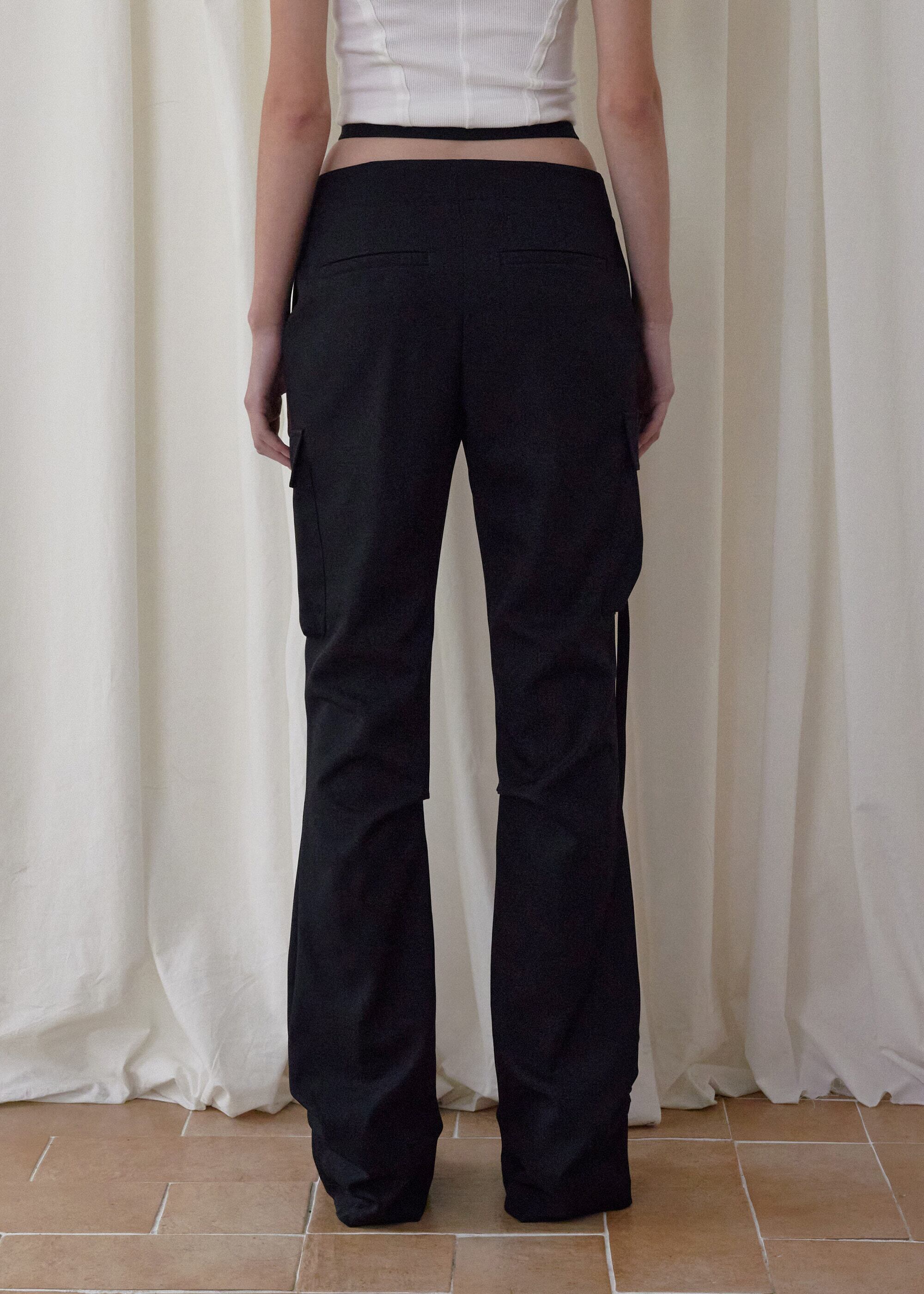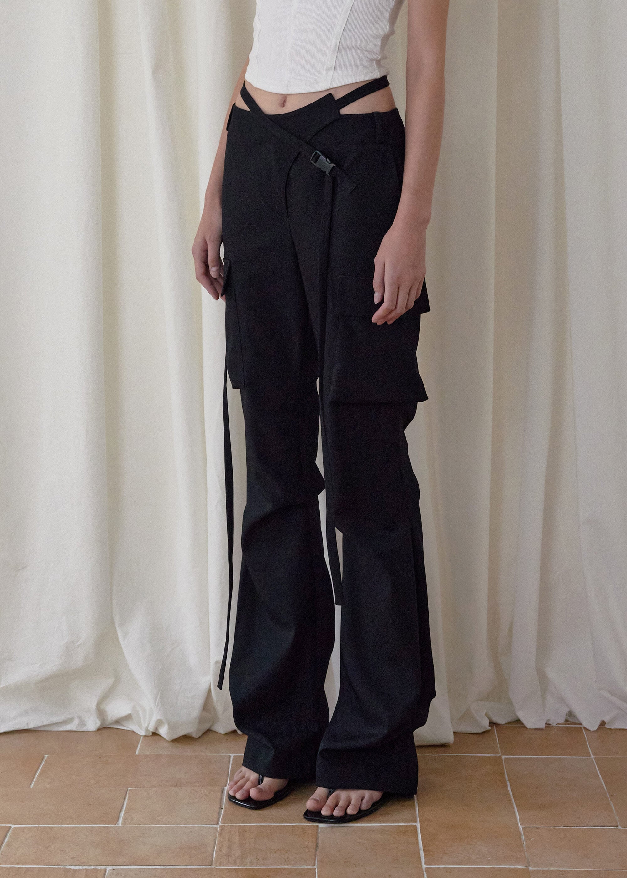 [BOHEMSEO] HEMLINE TUCK CARGO PANTS, BLACK
