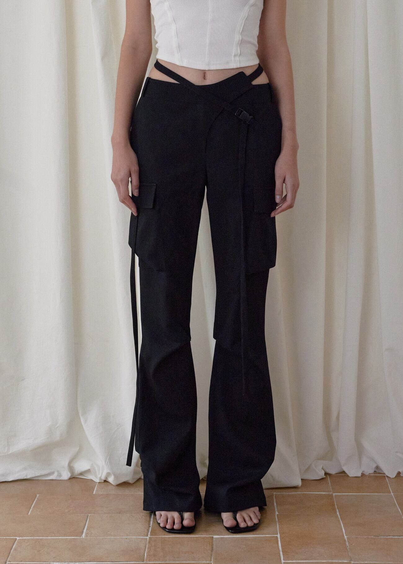 [BOHEMSEO] HEMLINE TUCK CARGO PANTS, BLACK 正規品 韓国ブランド 韓国通販 韓国代行 韓国ファッション BOHEMIAN SEOUL ボヘミアンソウル 日本 店舗