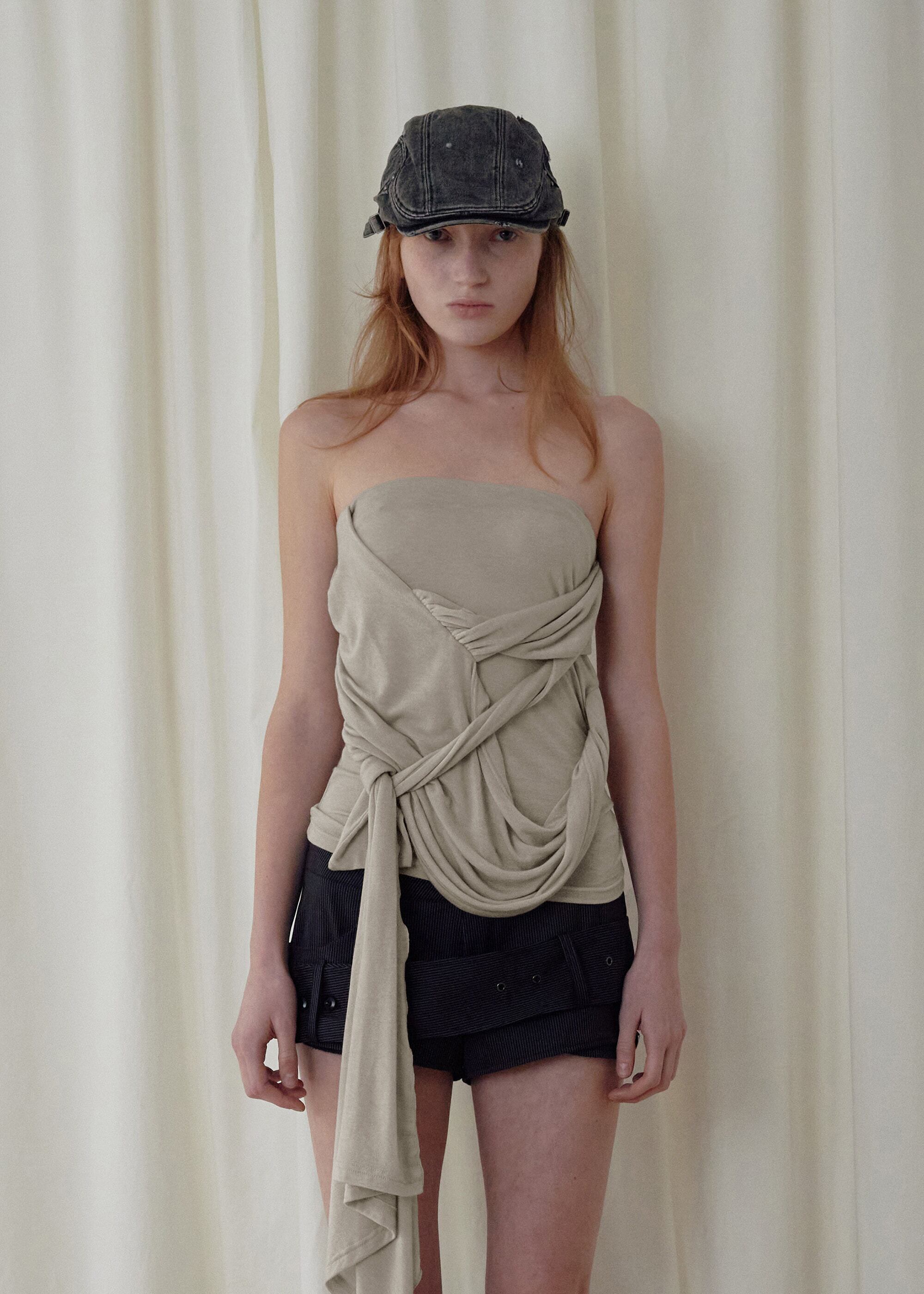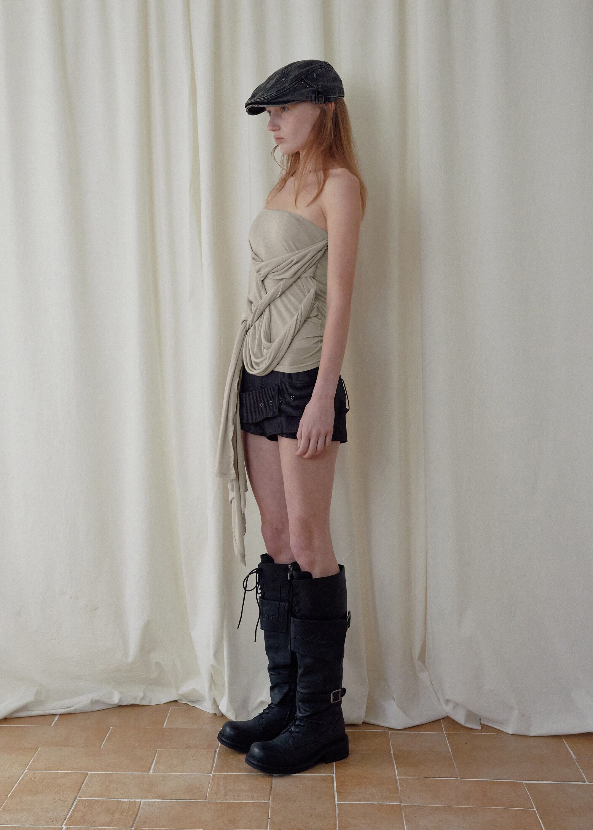[BOHEMSEO] SIGNATURE DRAPE TUBE TOP, BEIGE 正規品 韓国ブランド 韓国通販 韓国代行 韓国ファッション BOHEMIAN SEOUL ボヘミアンソウル 日本 店舗