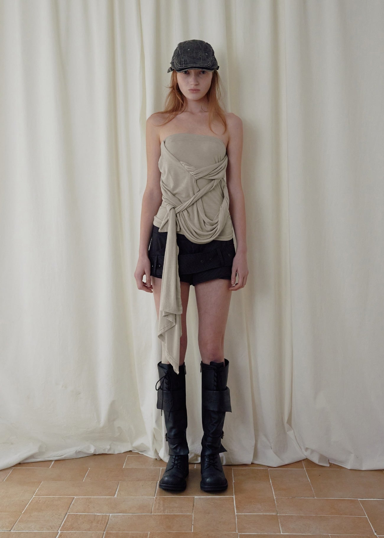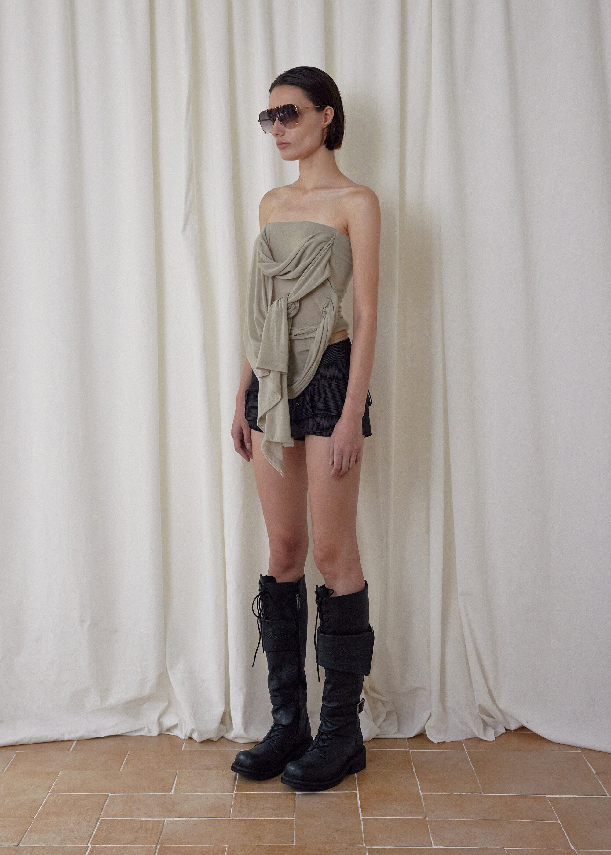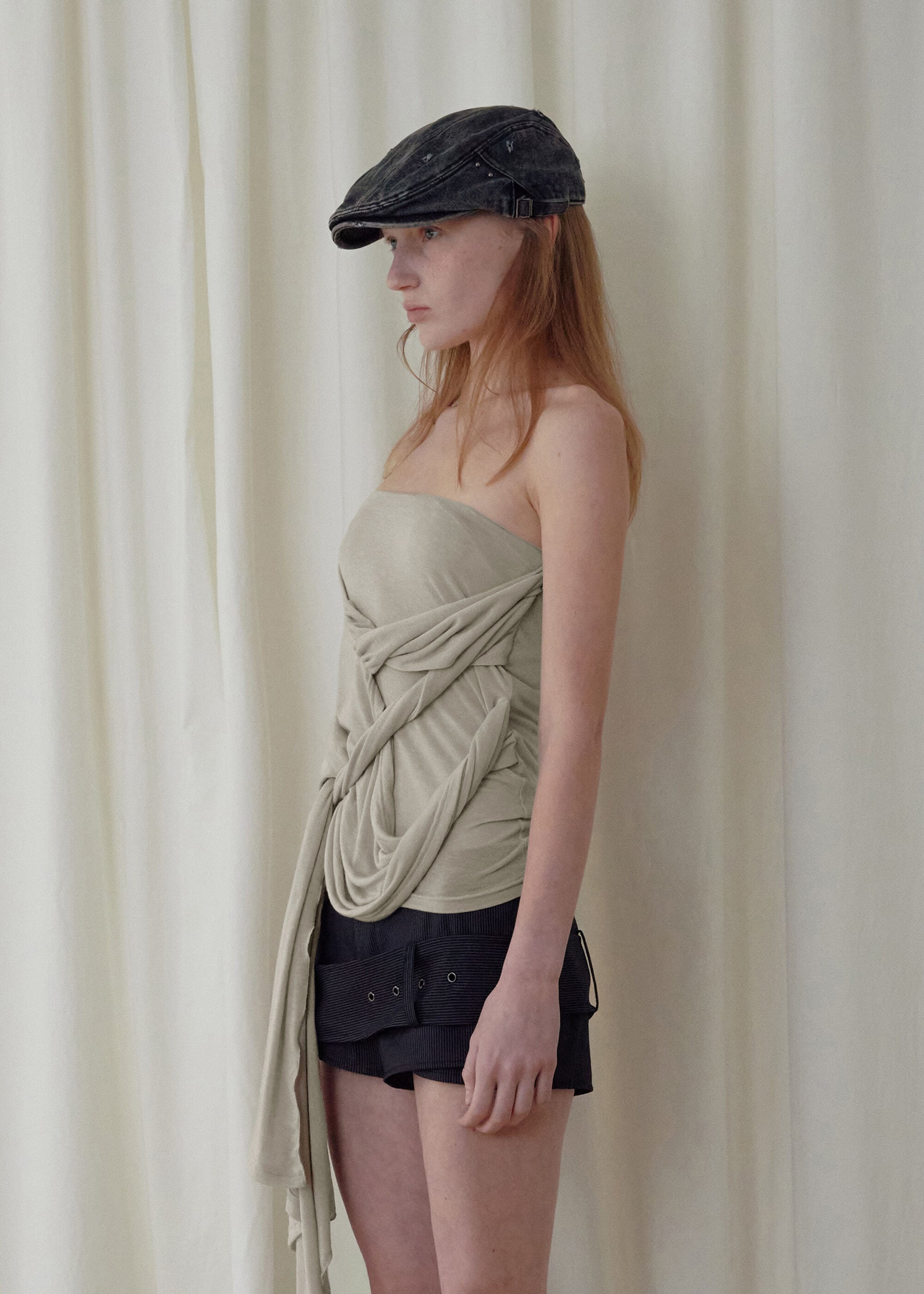 [BOHEMSEO] SIGNATURE DRAPE TUBE TOP, BEIGE