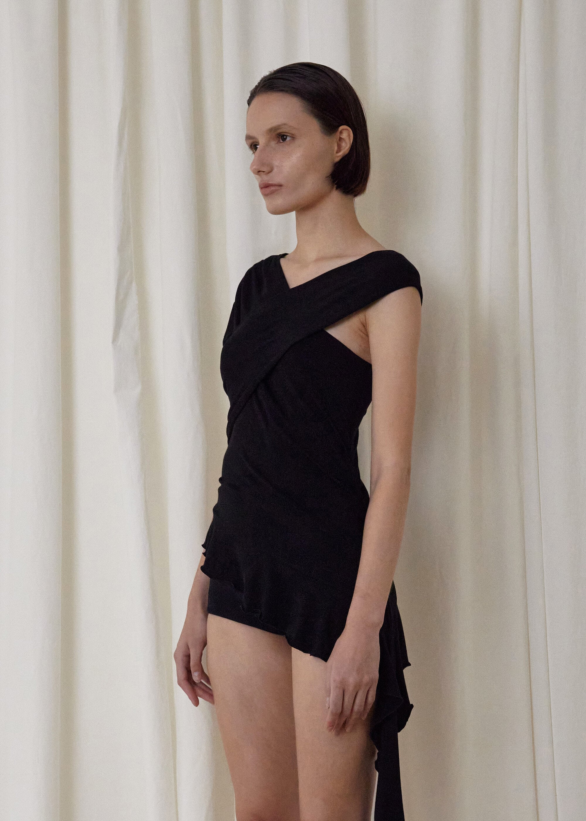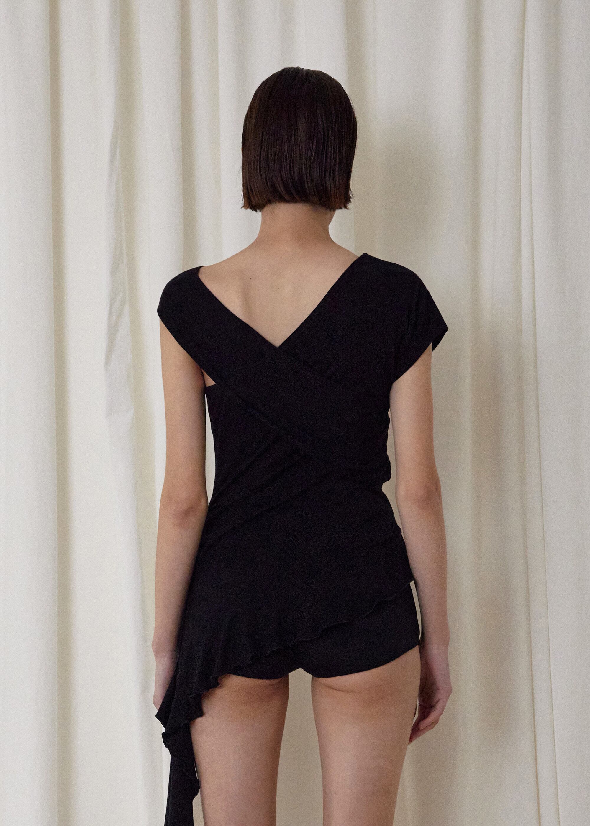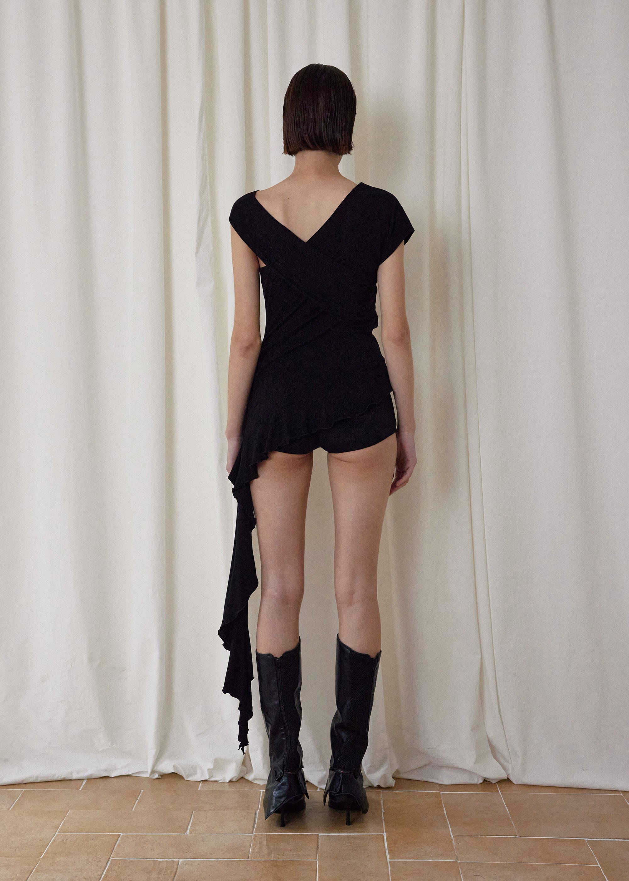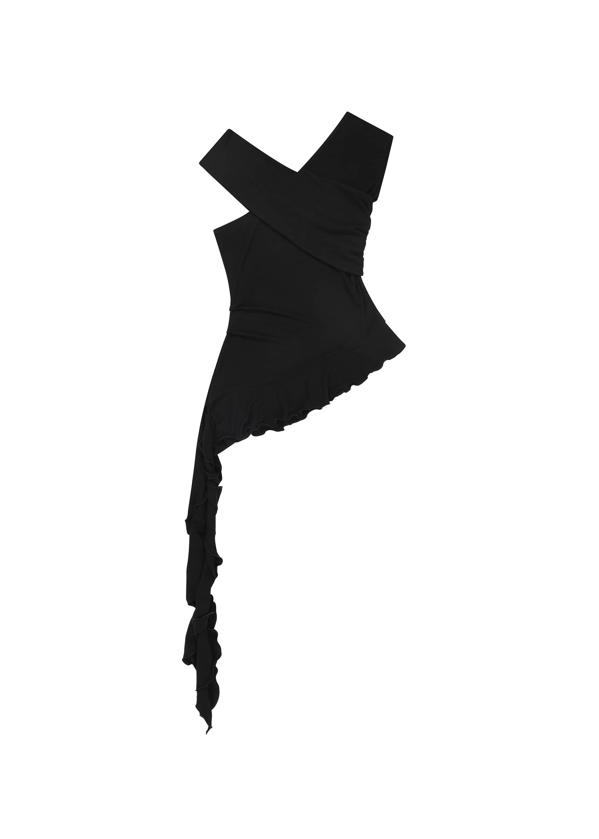 [BOHEMSEO] TUCK JERSEY RUFFLE TOP, BLACK