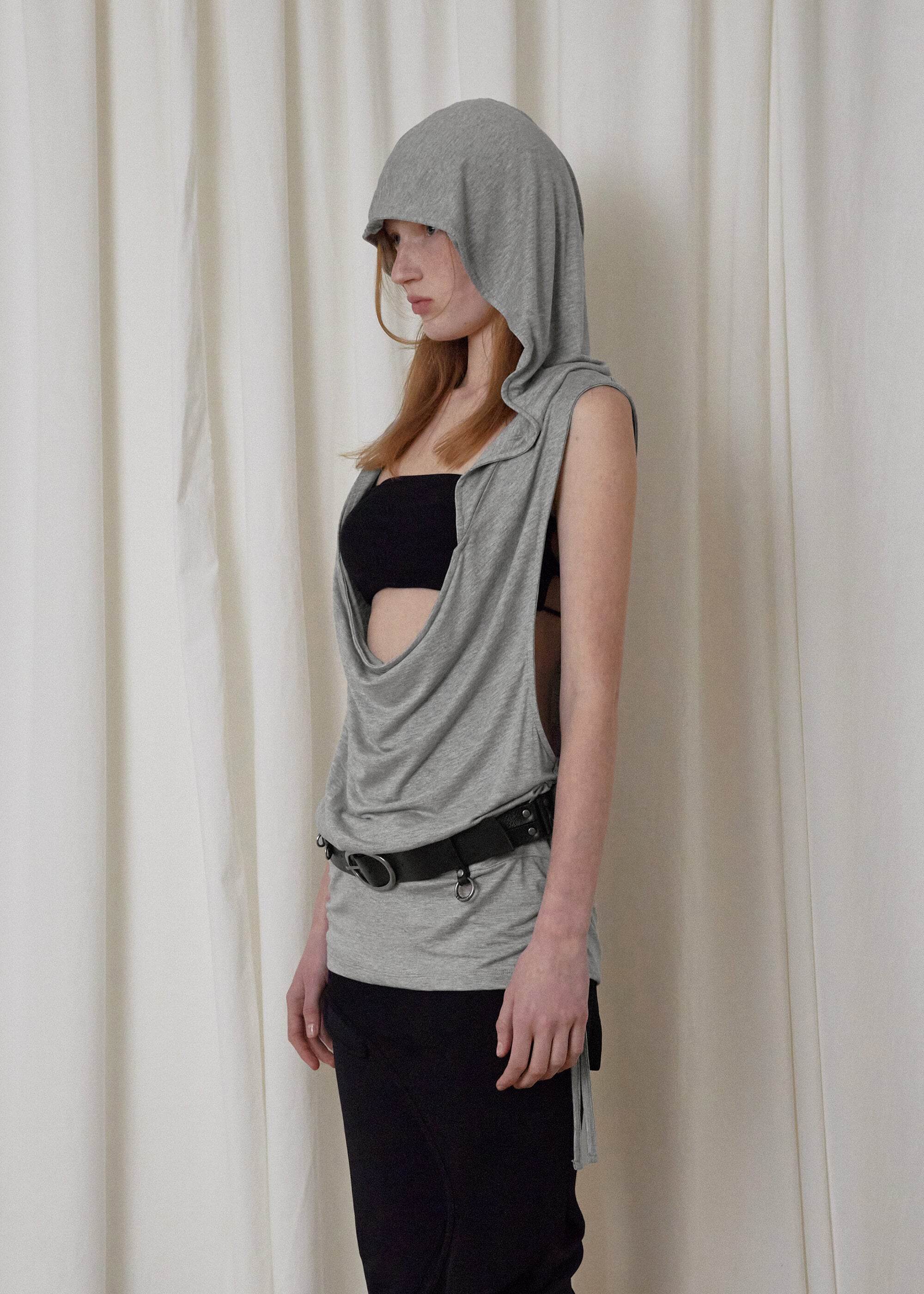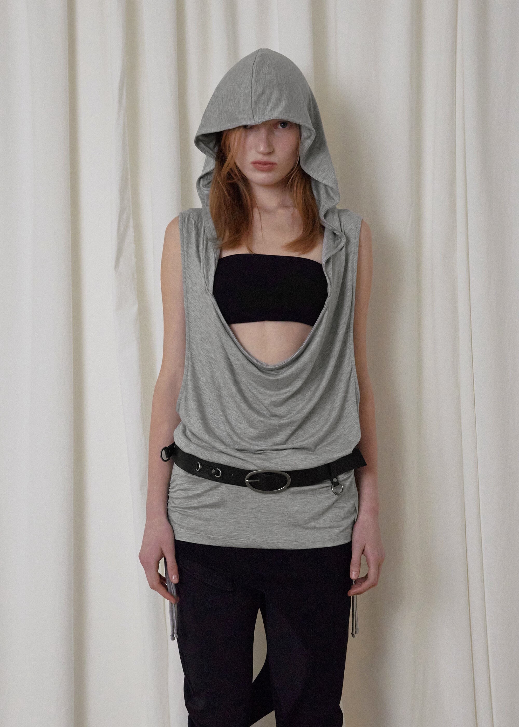 [BOHEMSEO] COWL BOXER HOODIE, LIGHT GRAY