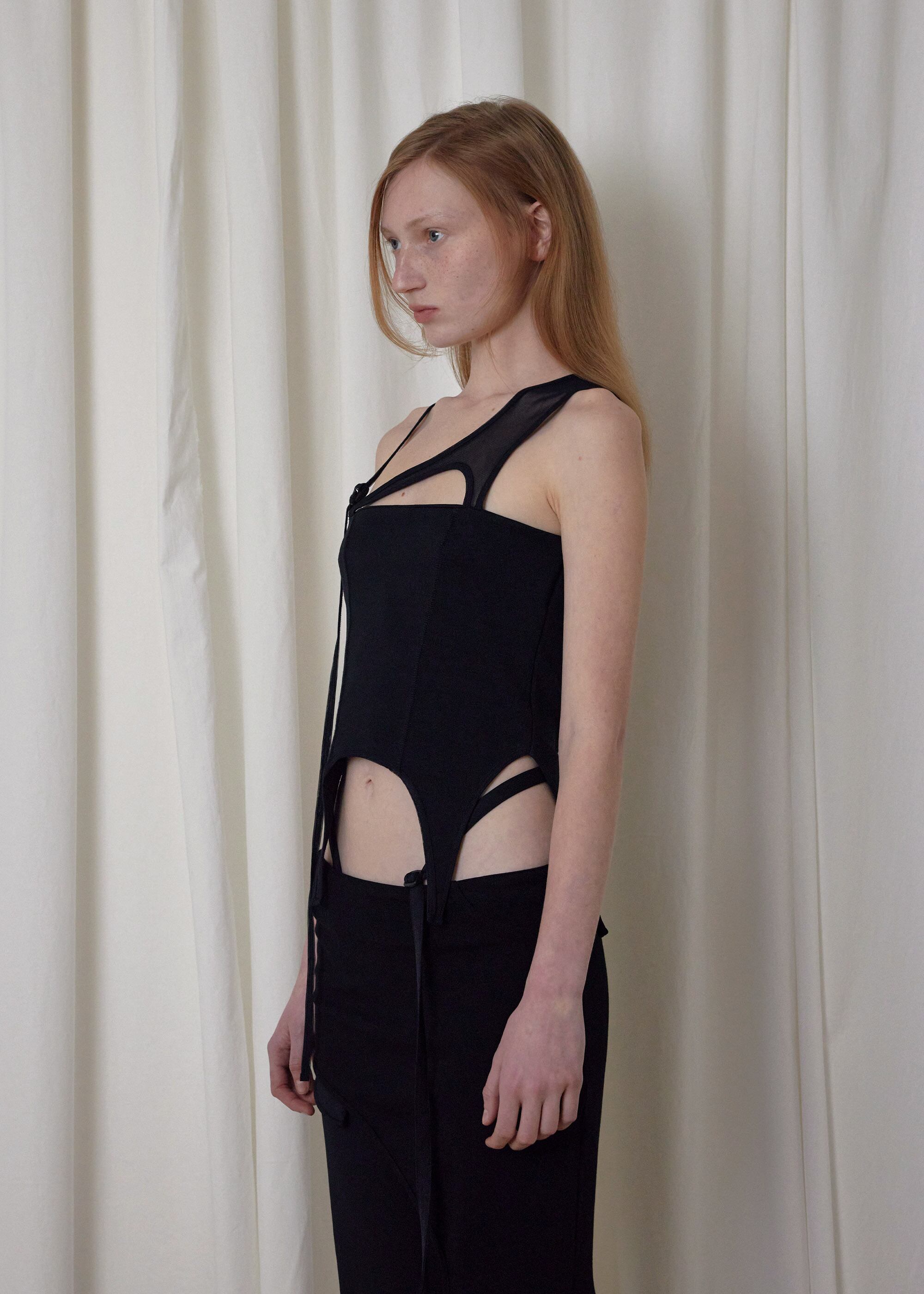[BOHEMSEO] CORSET MESH SLEEVELESS, BLACK