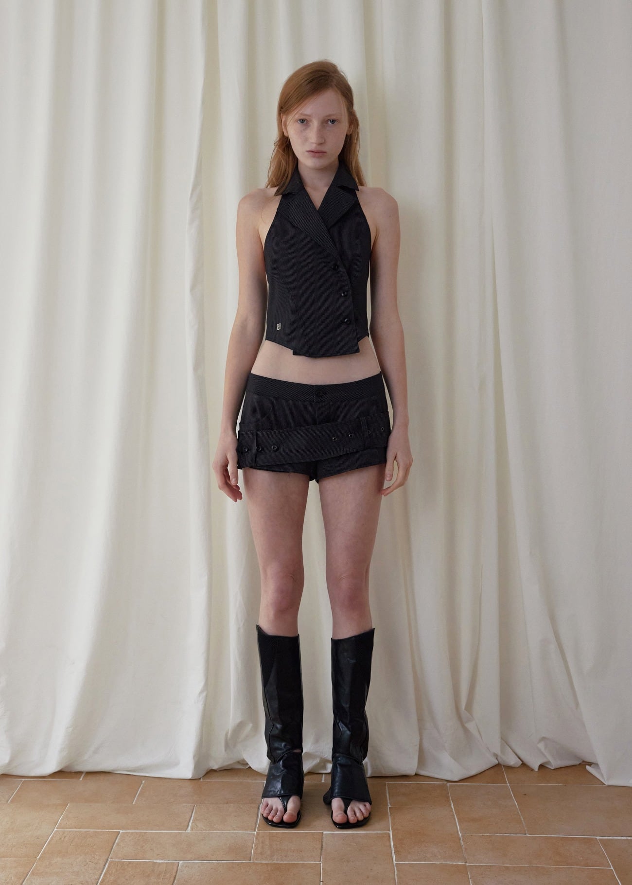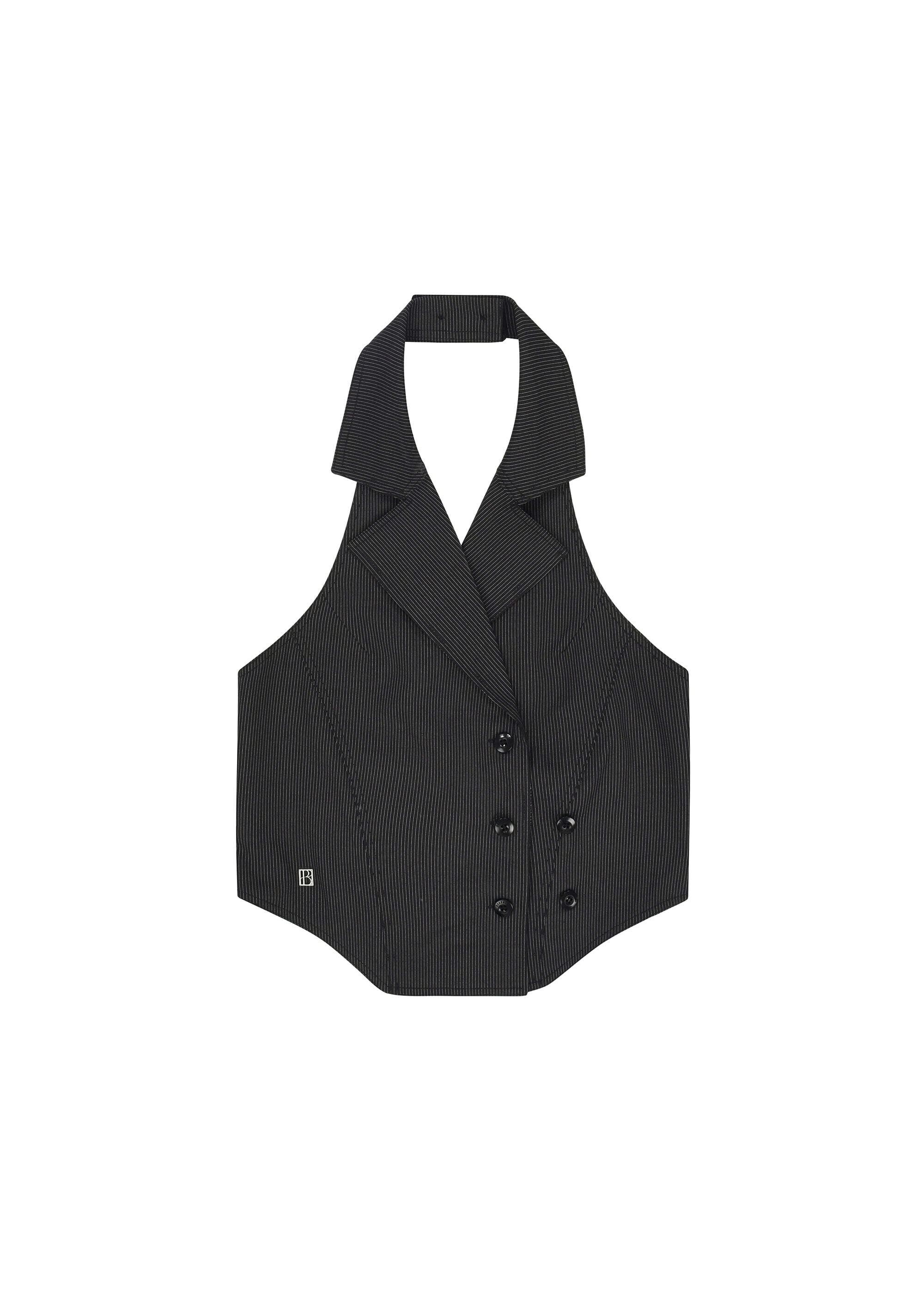 [BOHEMSEO] HALTER BUTTON VEST, STRIPE BLACK