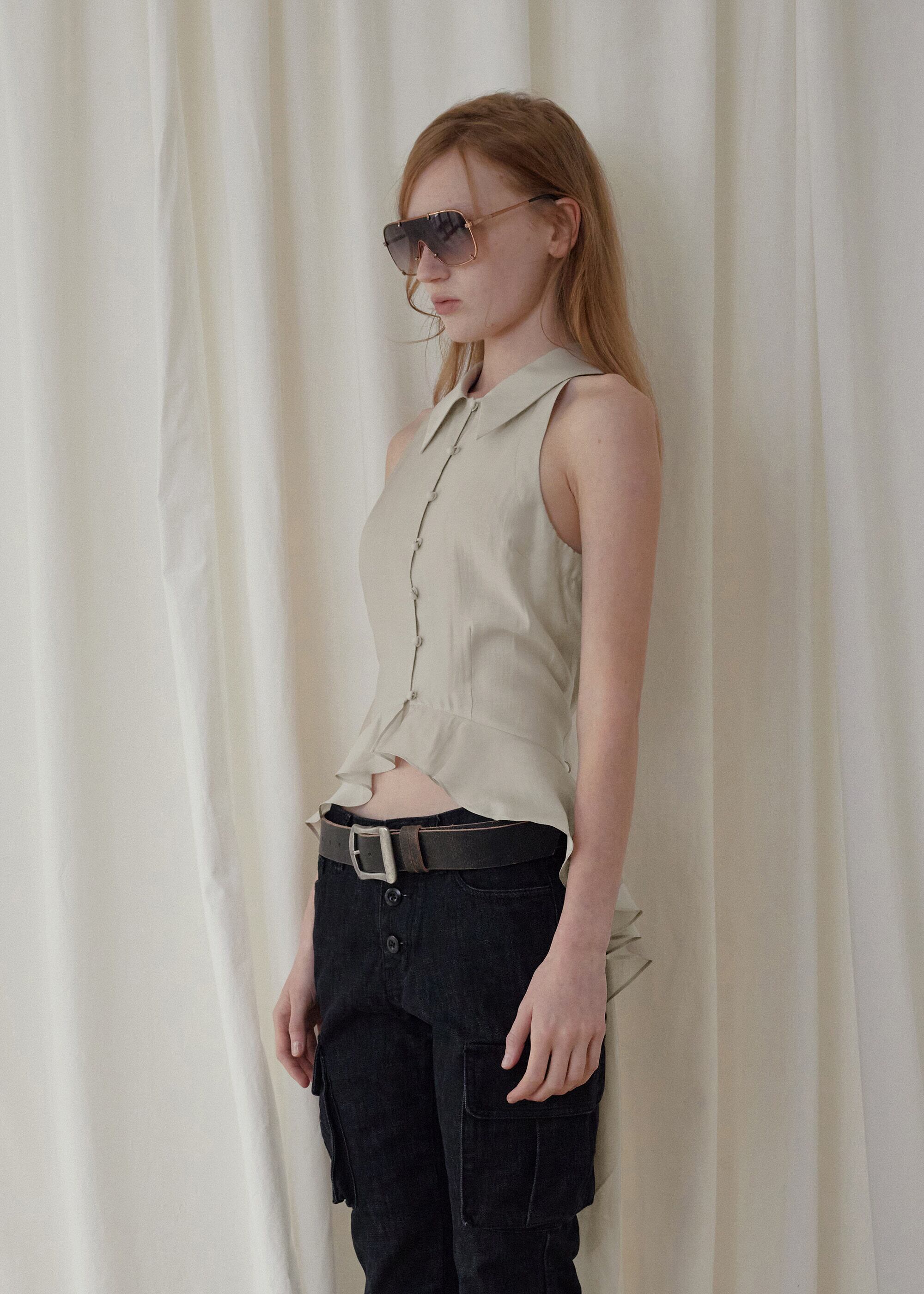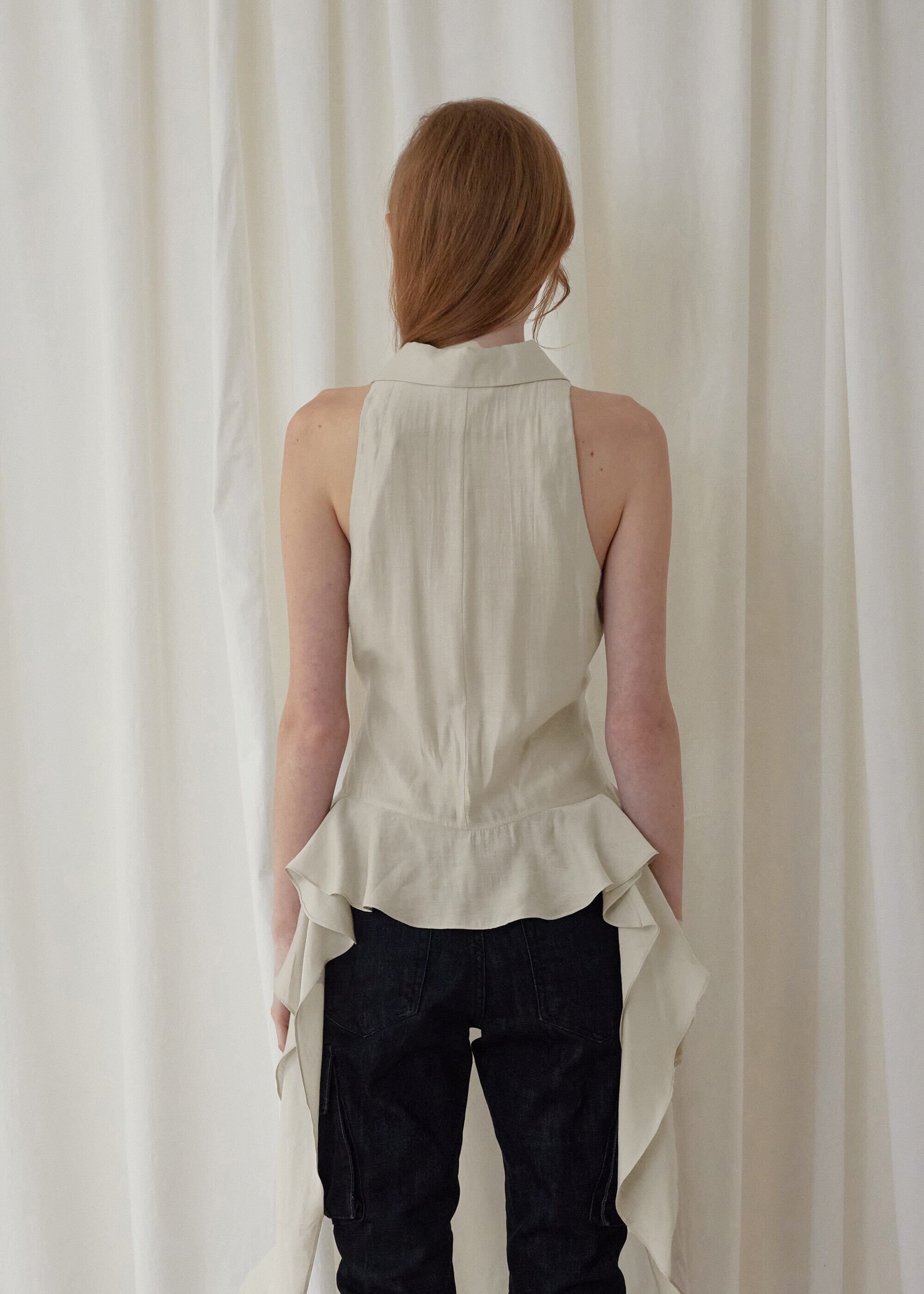 [BOHEMSEO] HALTER RUFFLE SHIRT, BEIGE