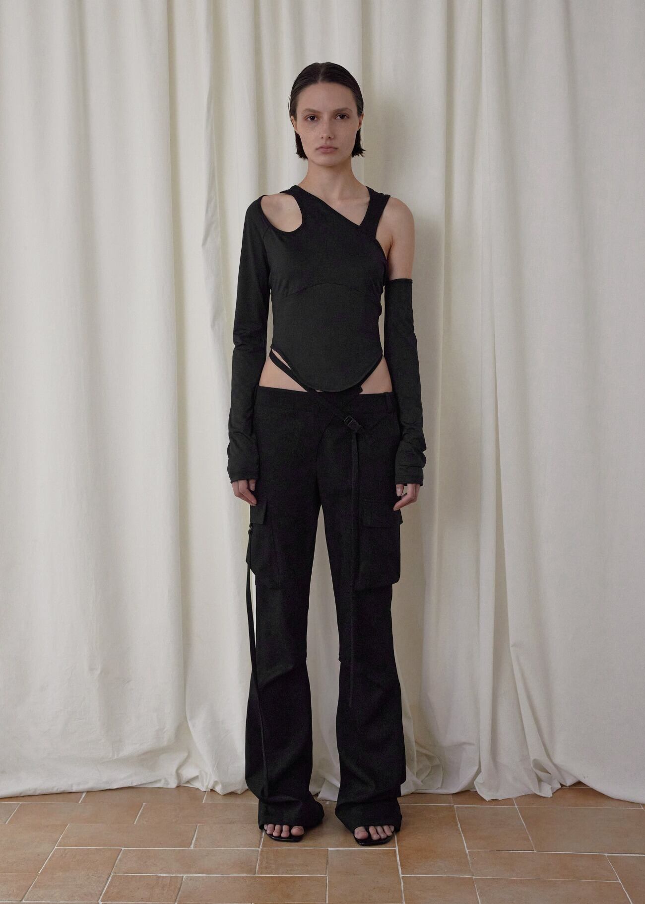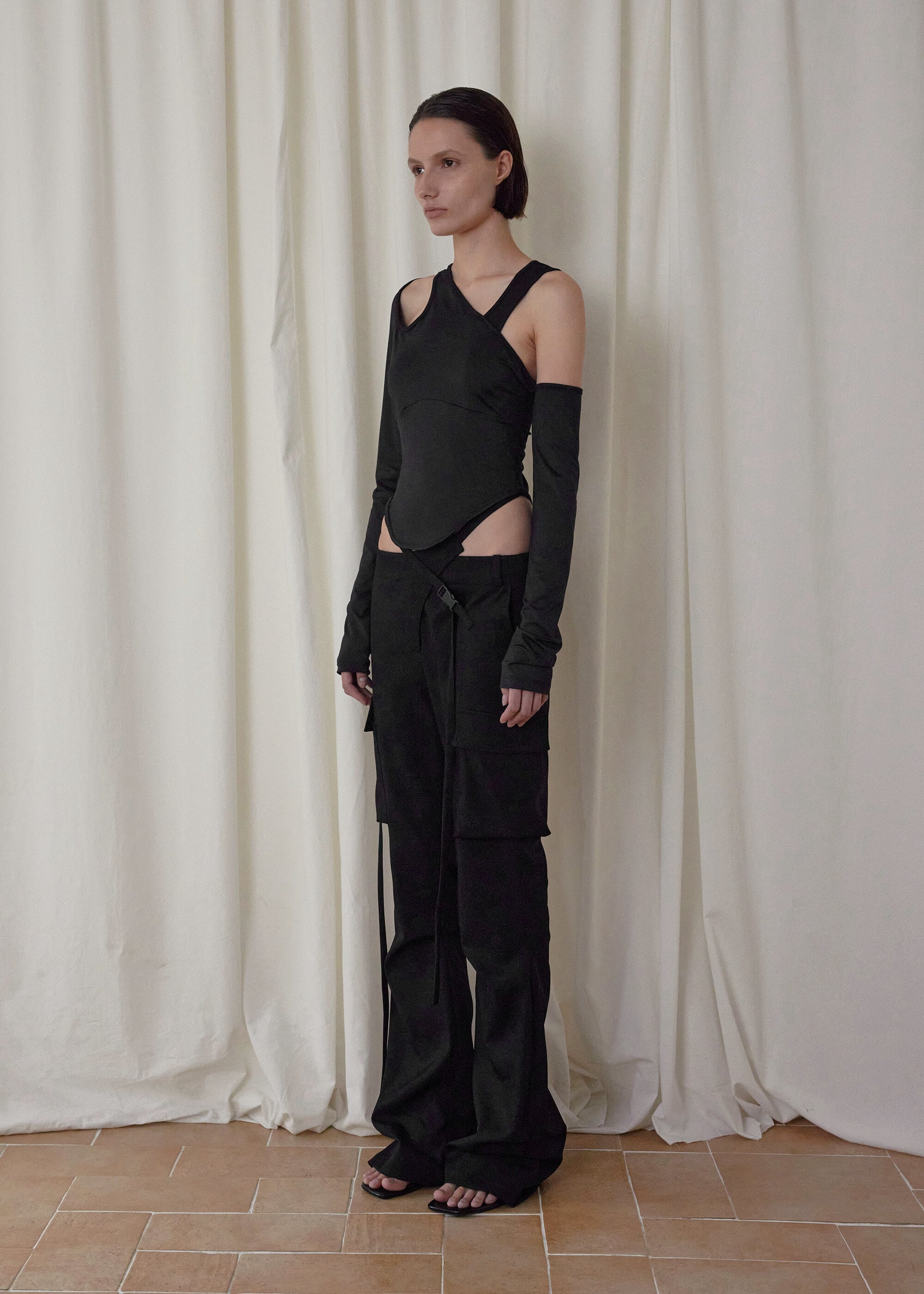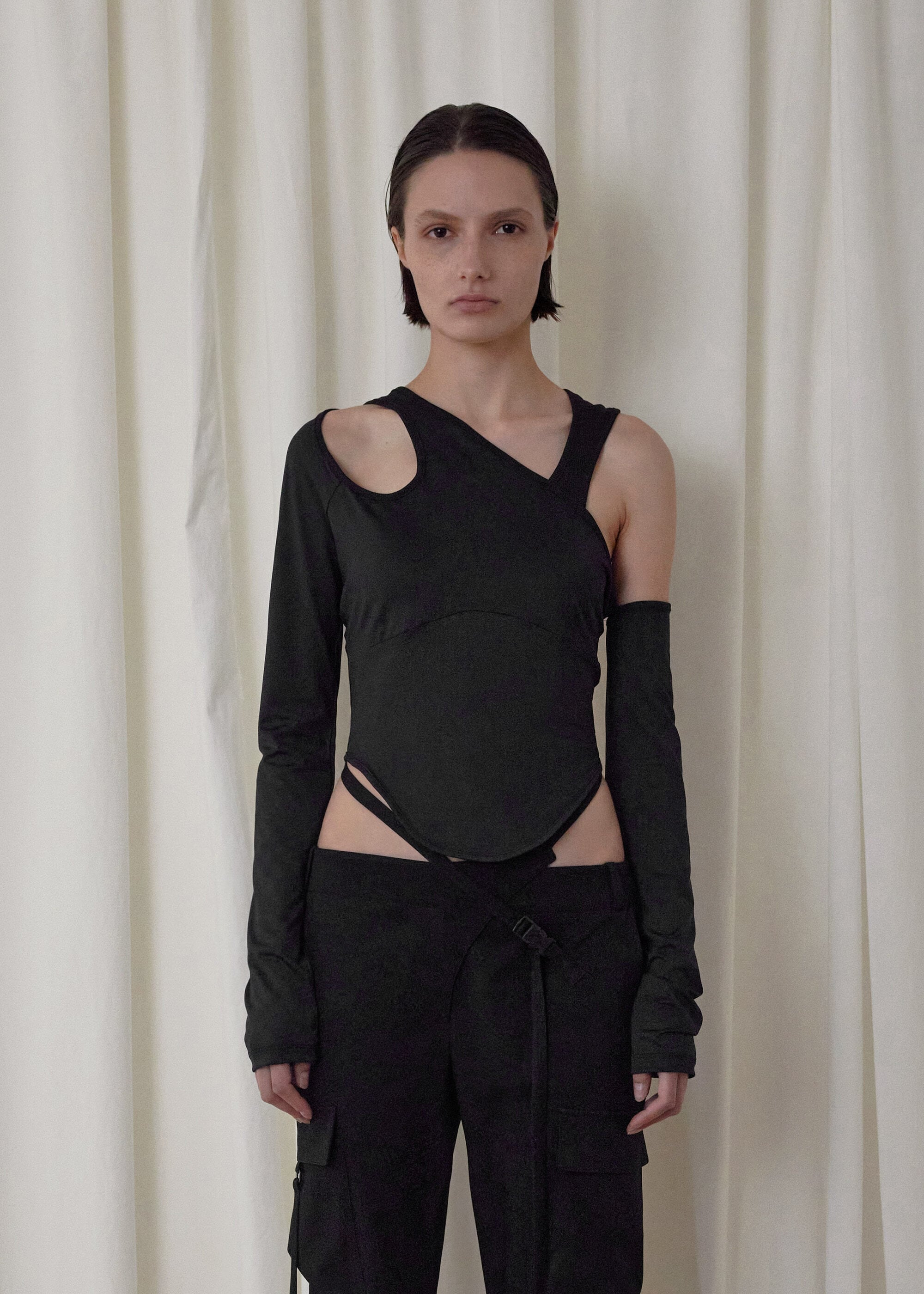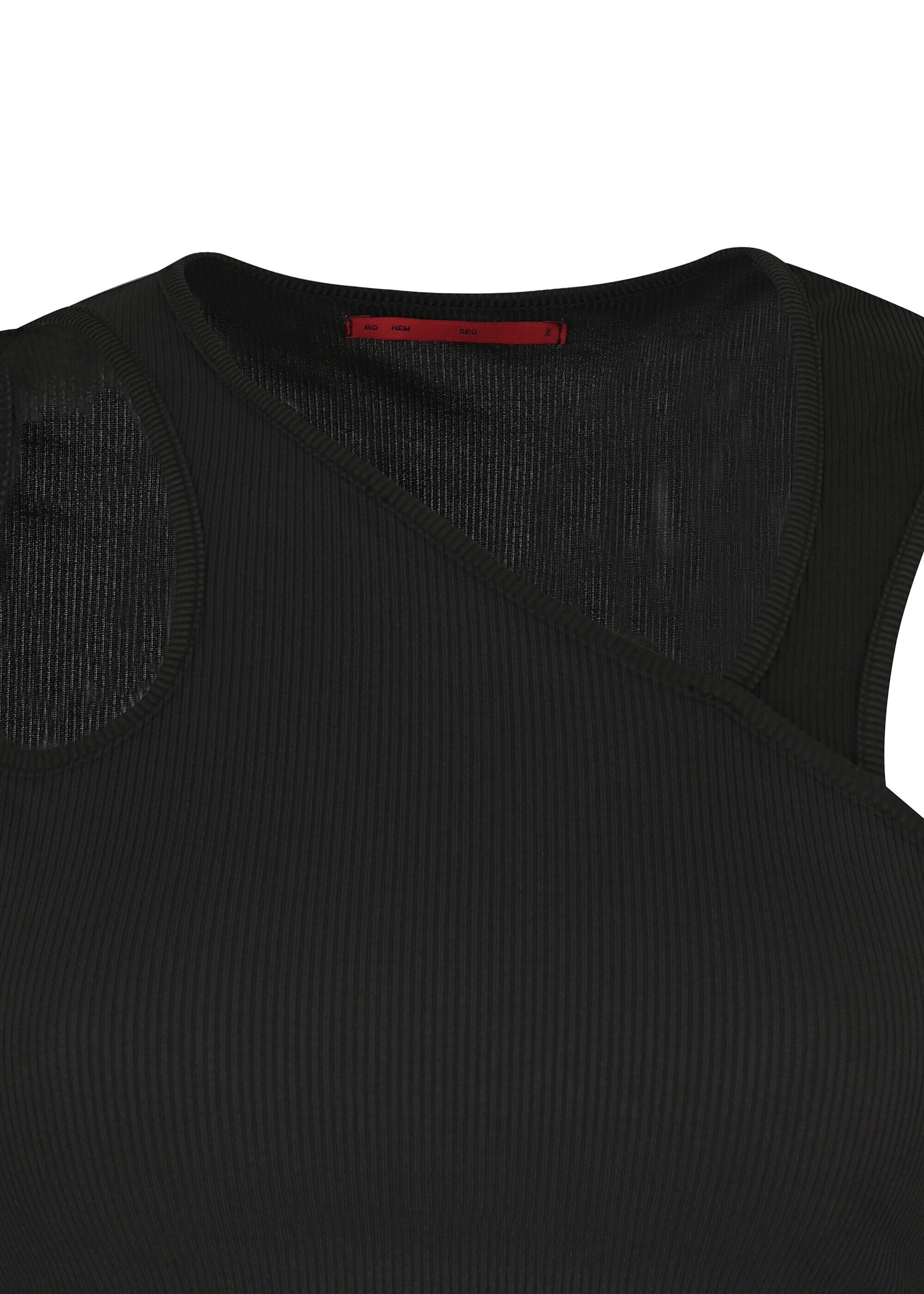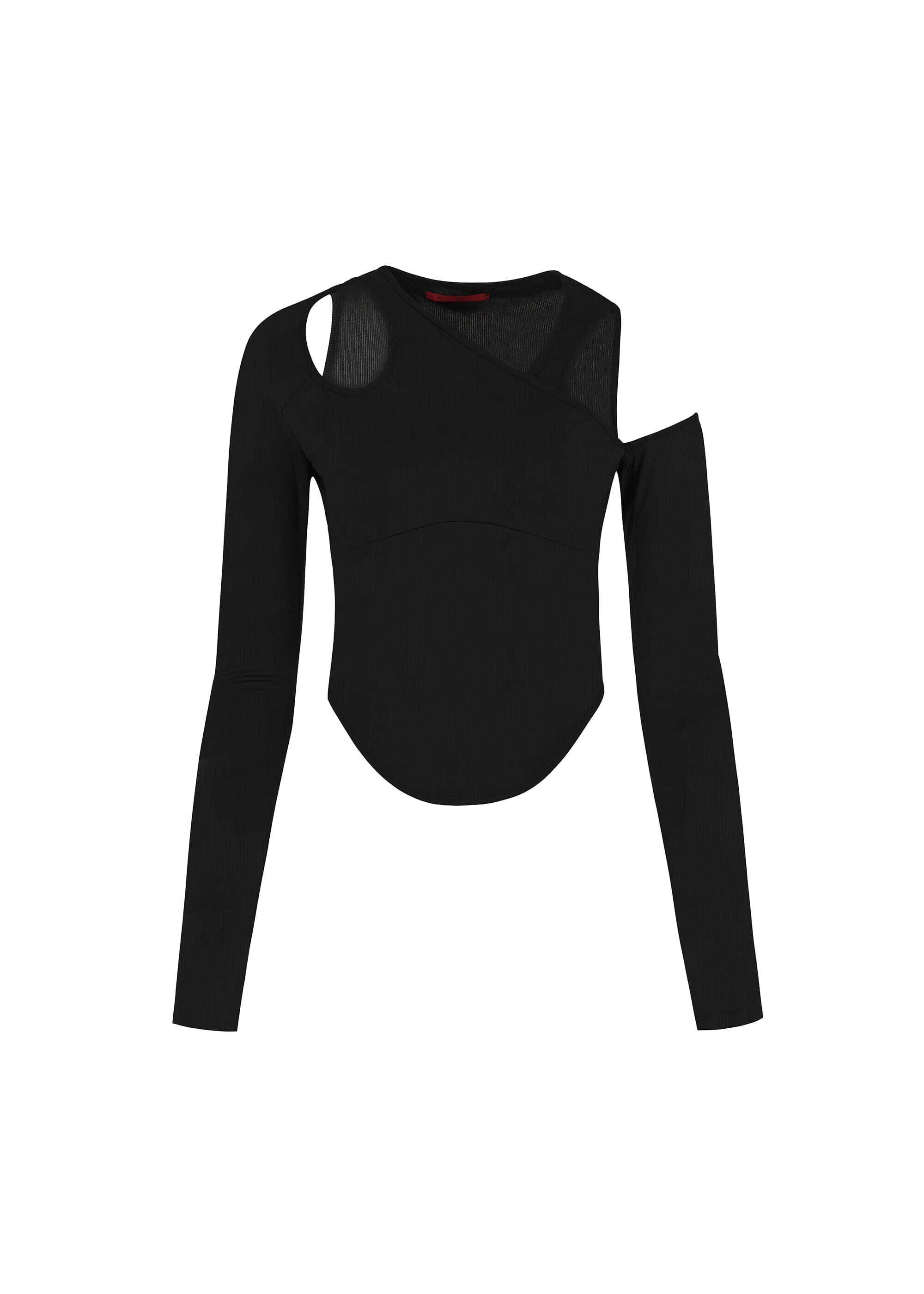 [BOHEMSEO] CUT-OUT MIXED TOP, BLACK