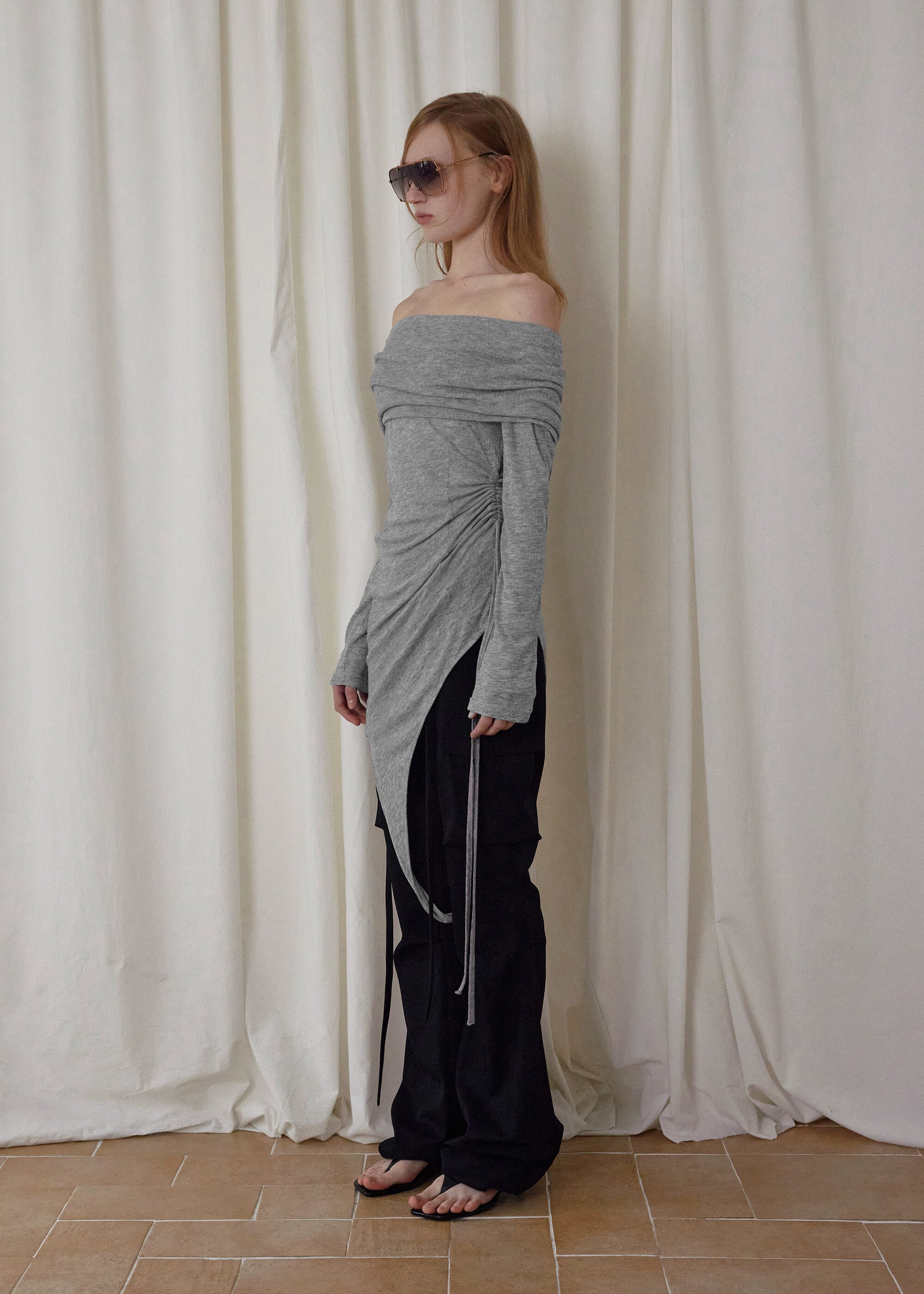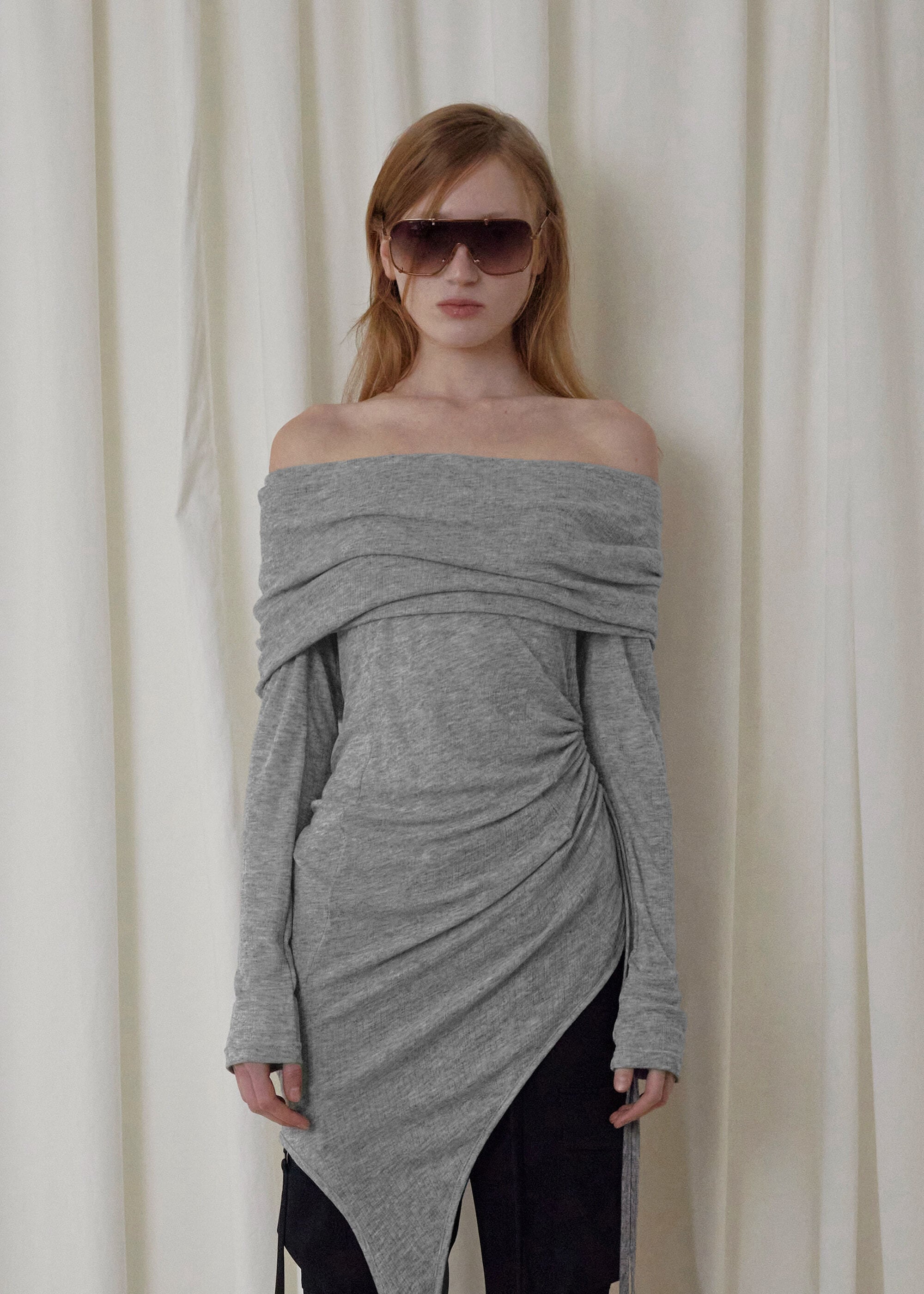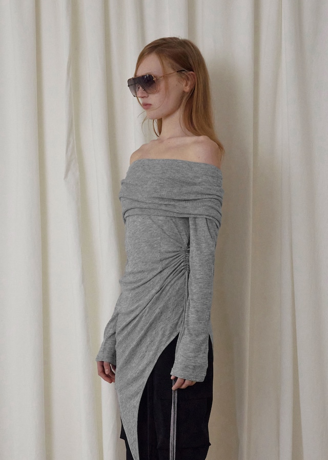 [BOHEMSEO] TWO-WAY OFFSHOULDER TOP, LIGHT GRAY