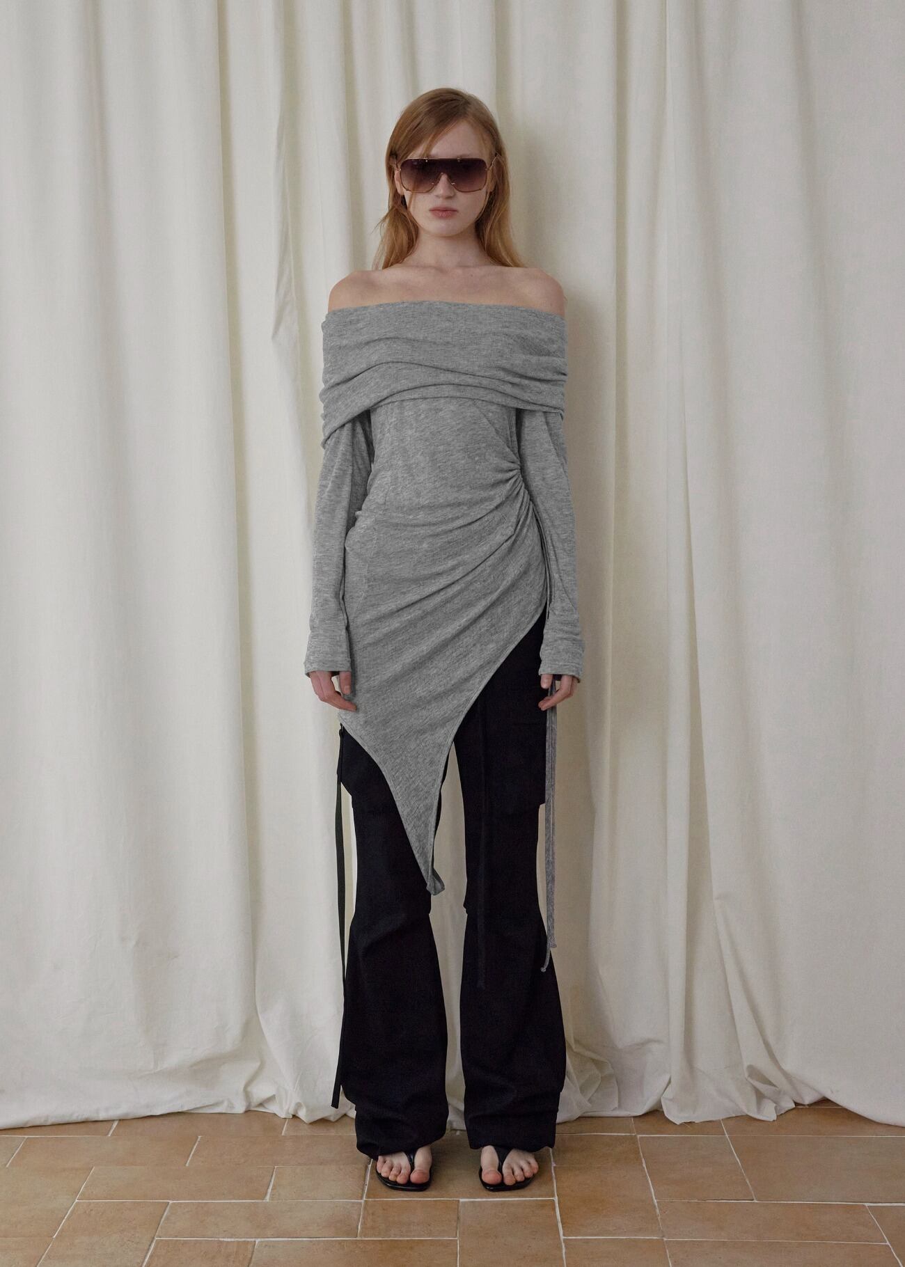 3/11発送 [BOHEMSEO] TWO-WAY OFFSHOULDER TOP, LIGHT GRAY 正規品 韓国ブランド 韓国通販 韓国代行 韓国ファッション BOHEMIAN SEOUL ボヘミアンソウル 日本 店舗