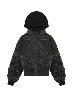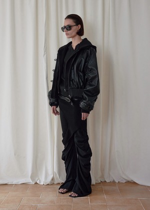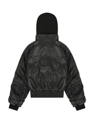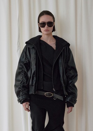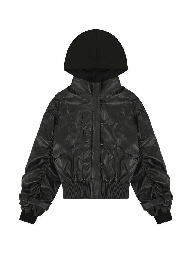 [BOHEMSEO] HOOD DETACHABLE LEATHER ZIP UP, BLACK