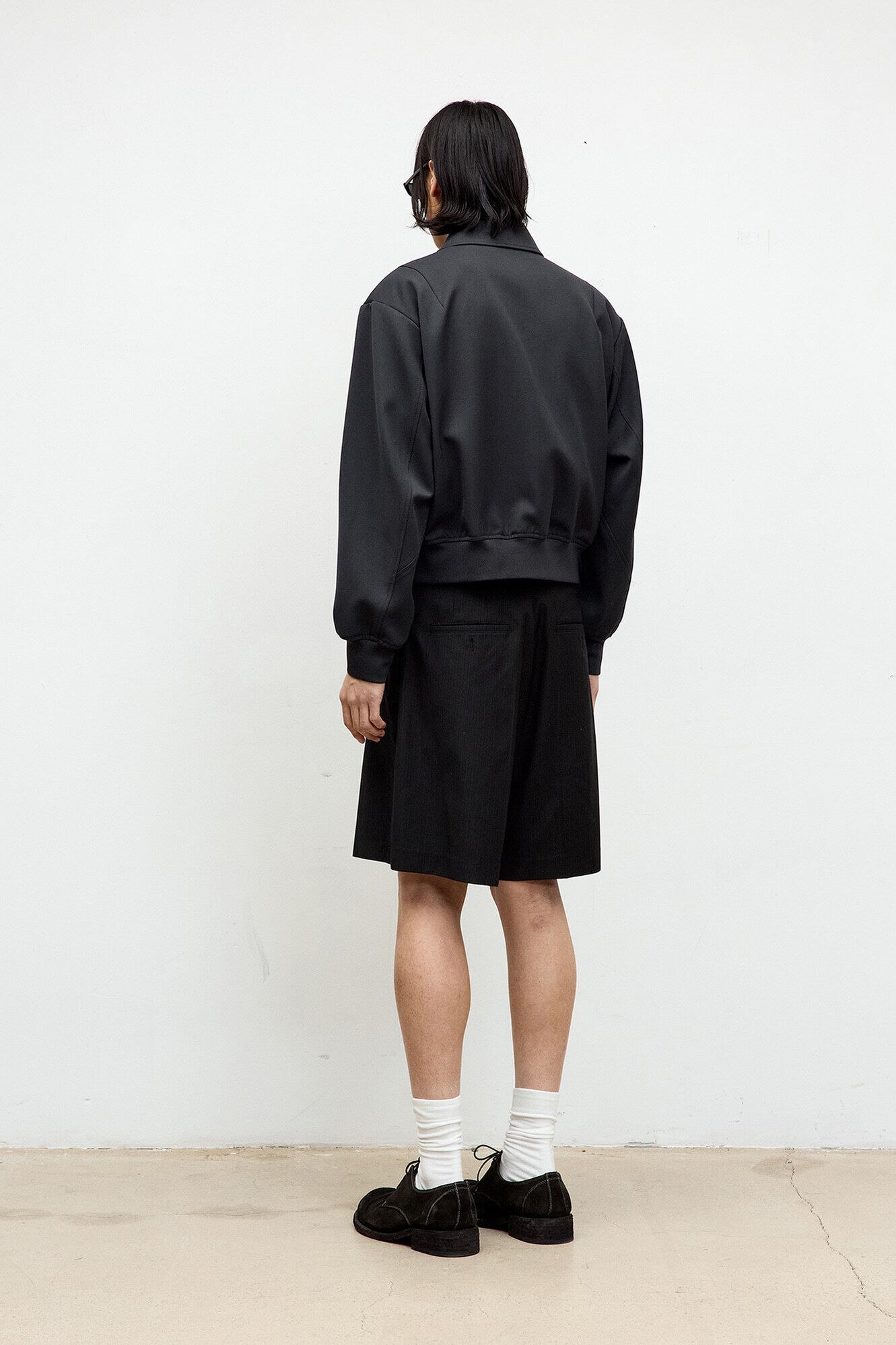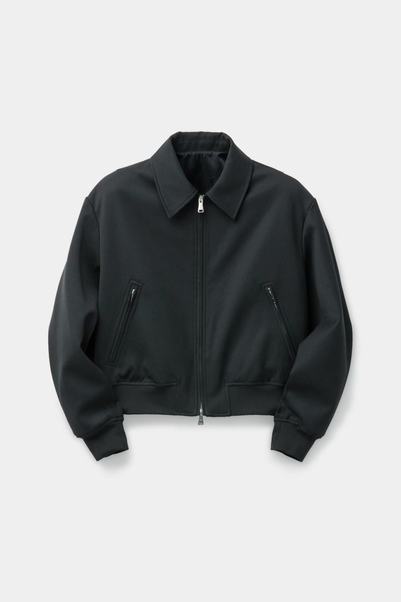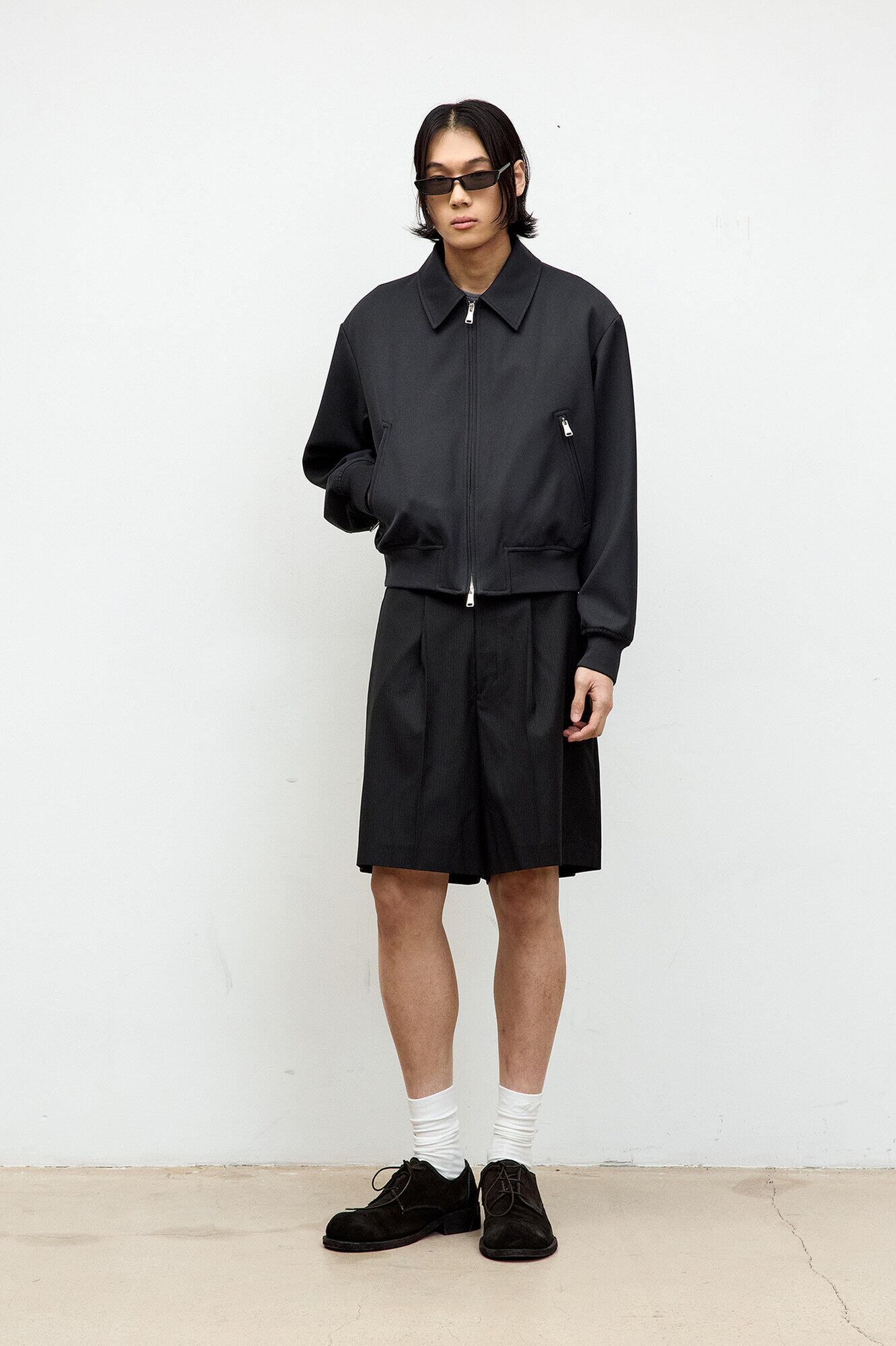 [COOR] Cropped Padded Shoulder Collar Bomber (Deep Blue Gray)