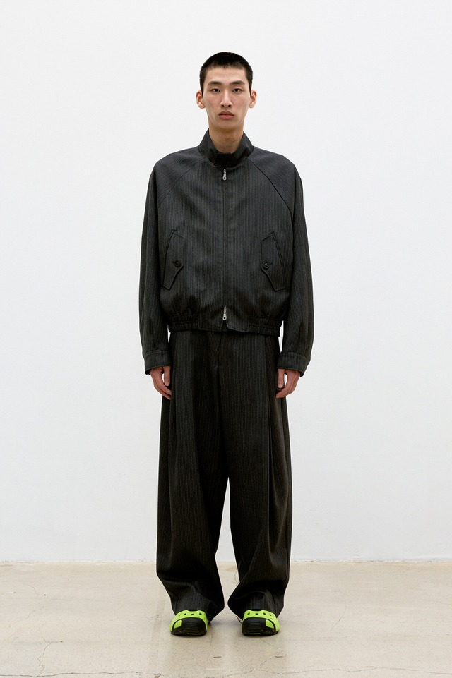 [COOR] Stripe Wool Blend Harrington Jacket (Charcoal Gray)