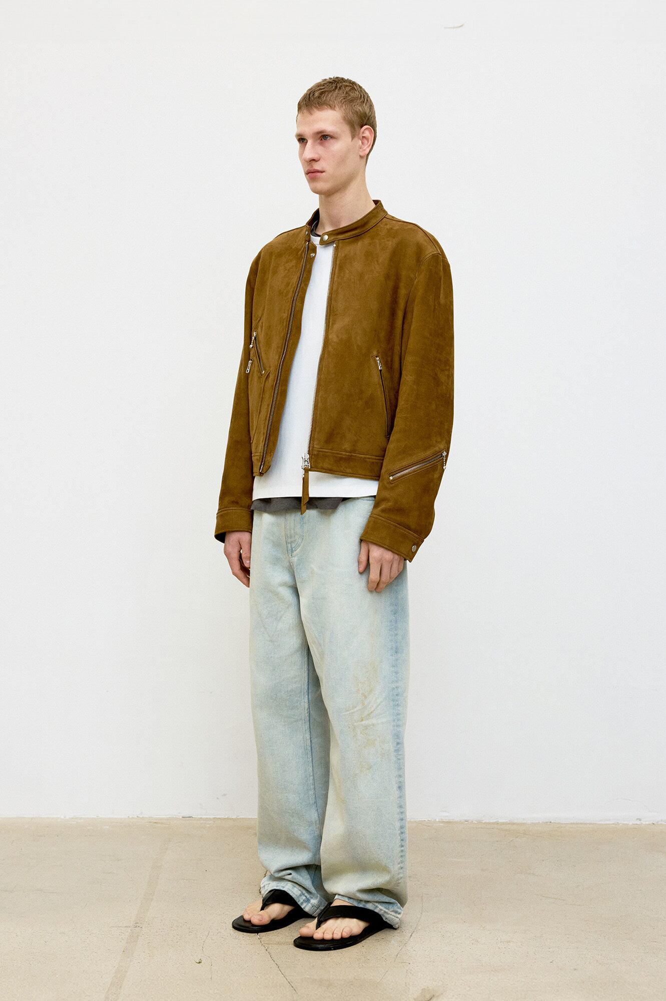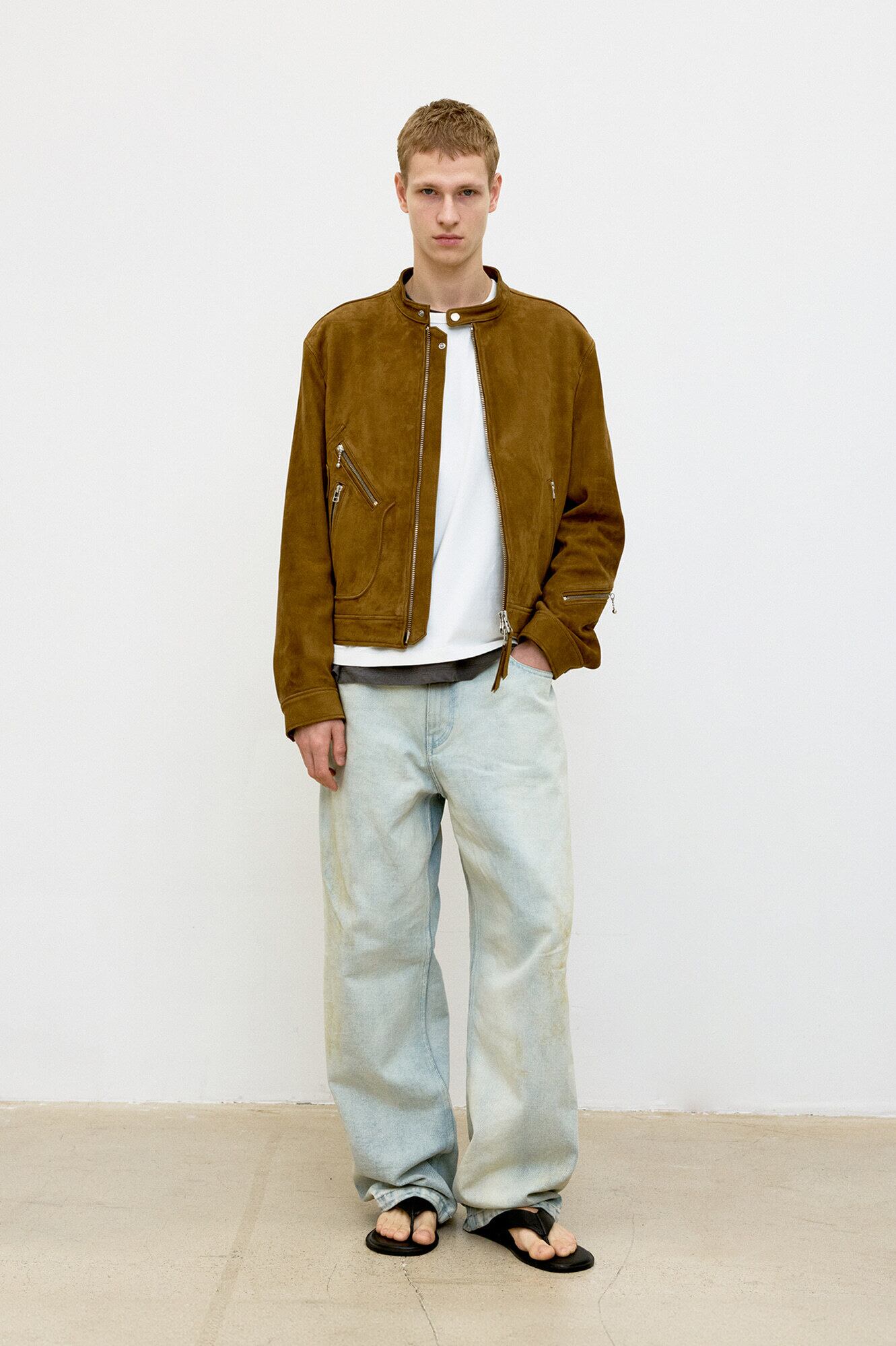 [COOR] Calfskin D Pocket Biker Jumper (Camel Brown)
