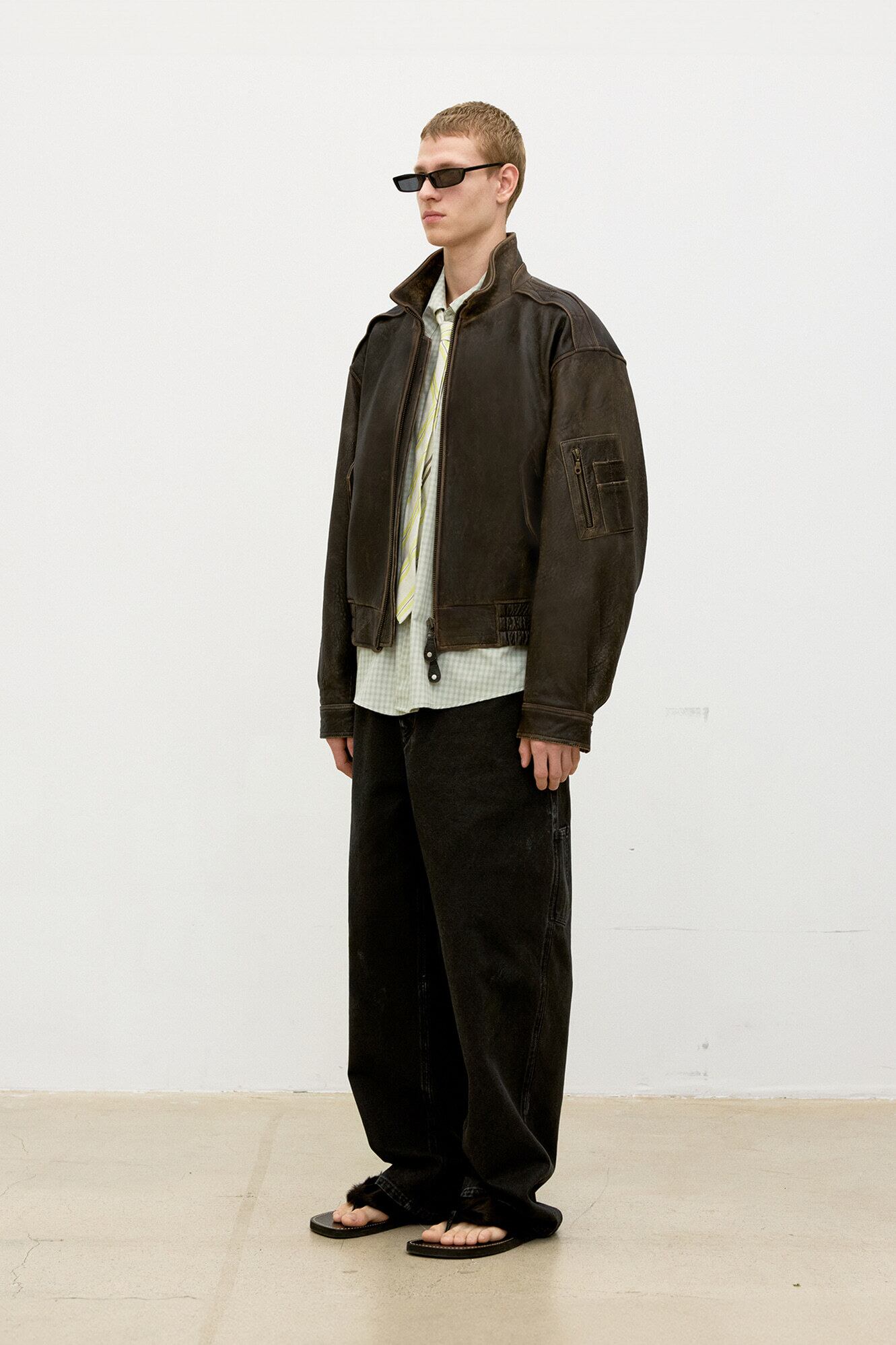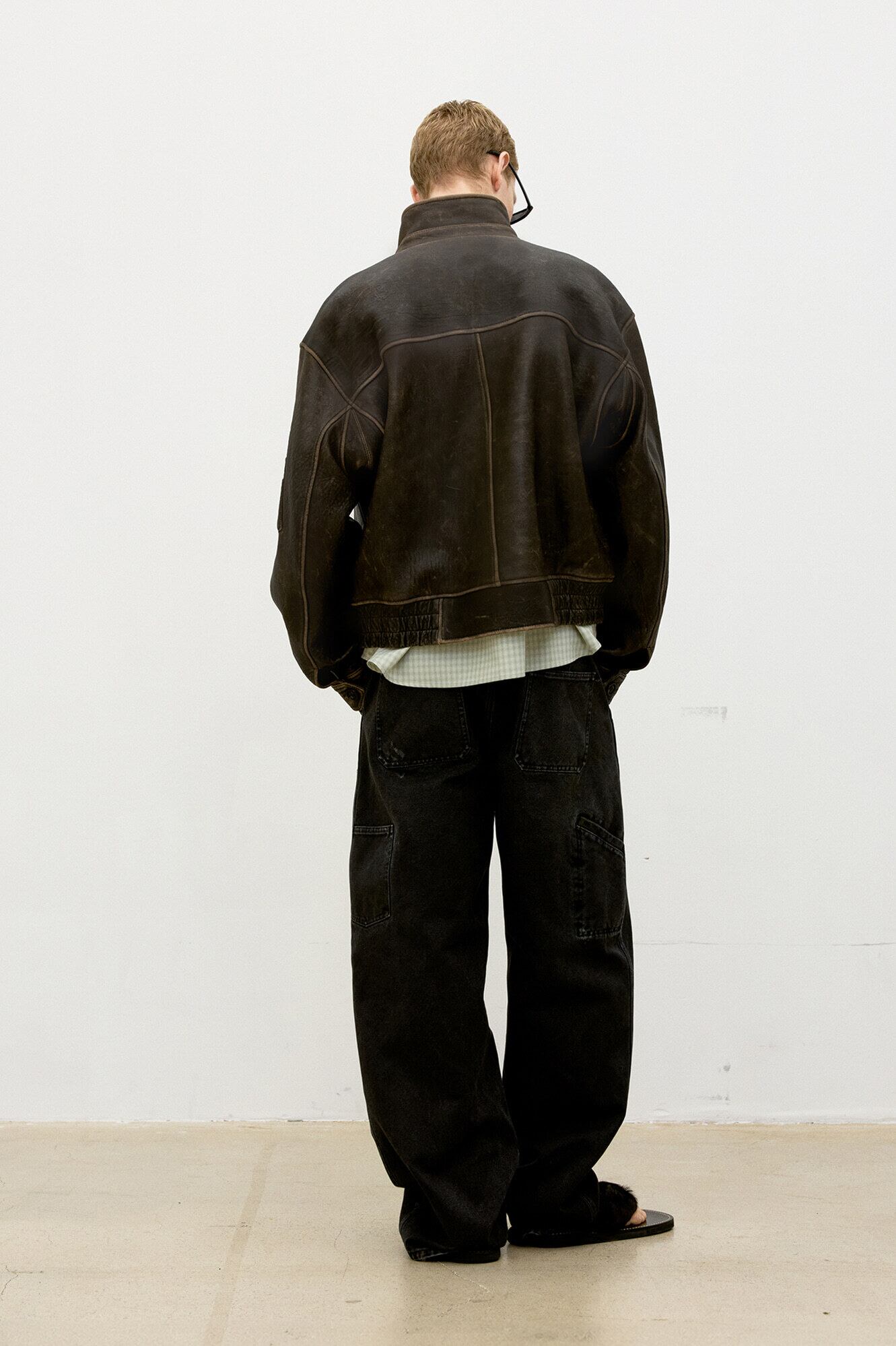 [COOR] Vintage Shelter Neck Collar Leather Jumper (Dark Brown)
