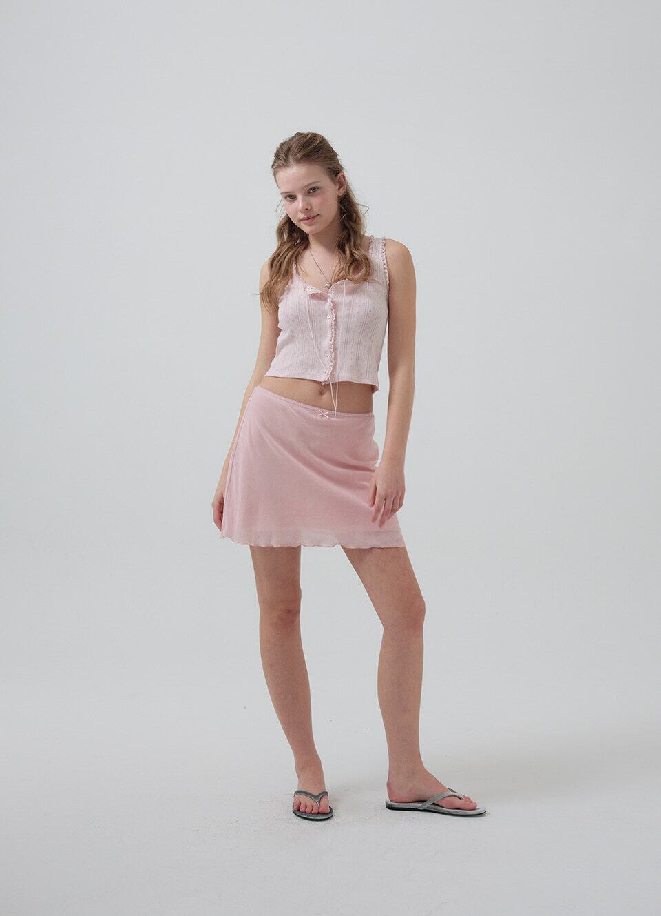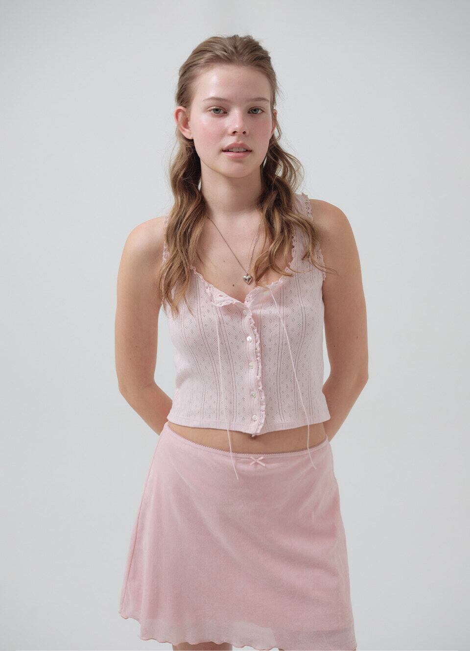 [The Barnnet] Ravioli Lace-Trim Tank Top_Pink