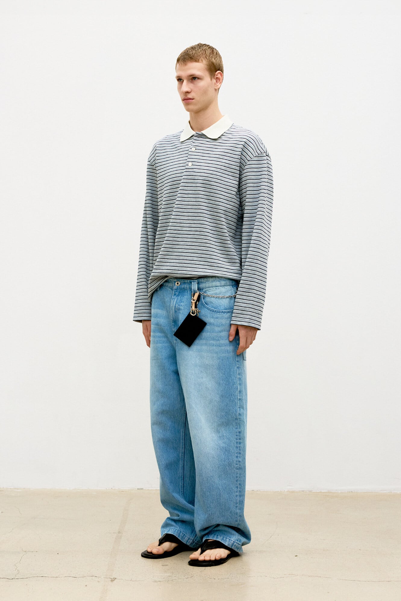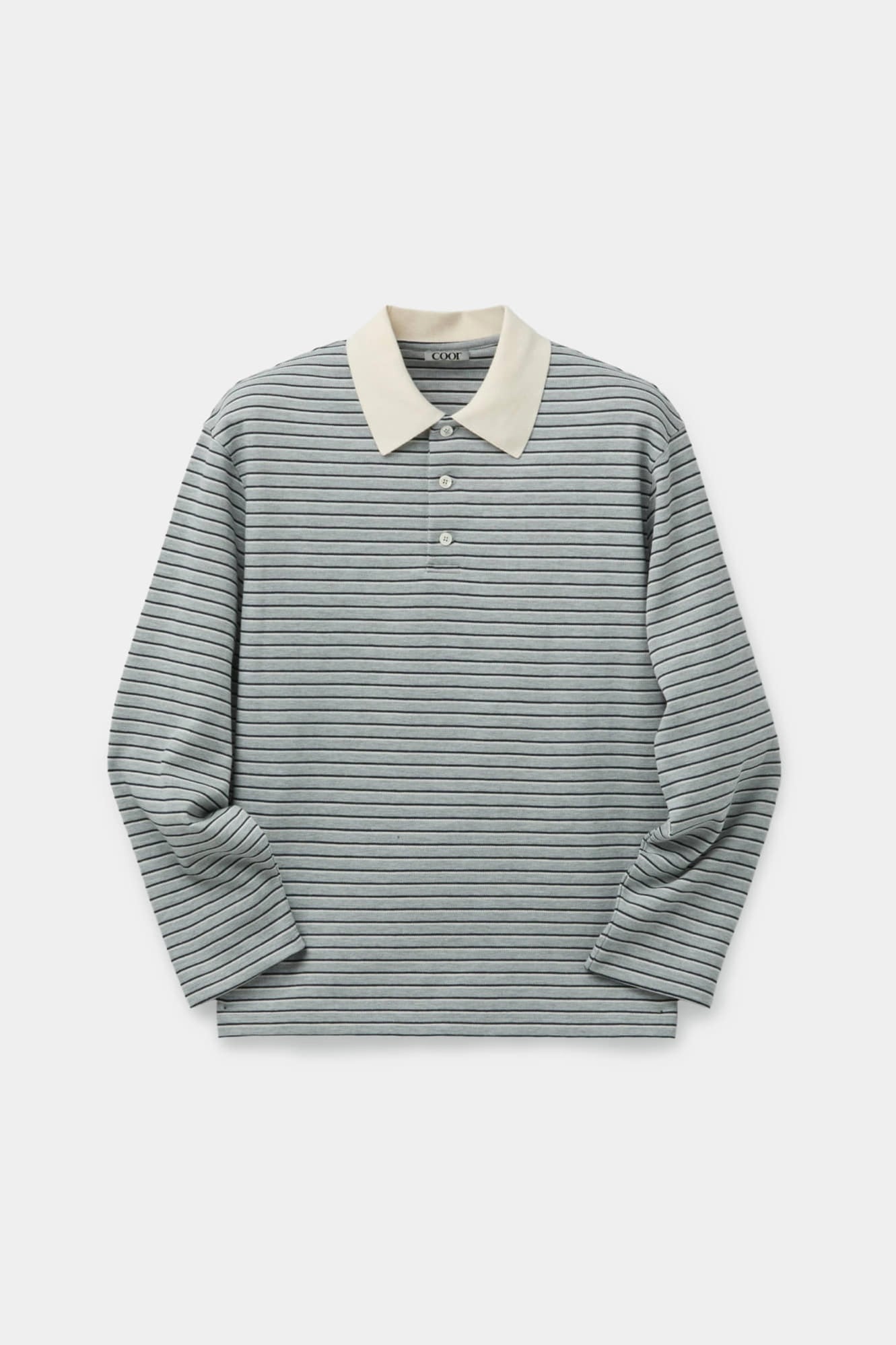 [COOR] Multi-Stripe Piqué Polo Shirt (Melange Gray)