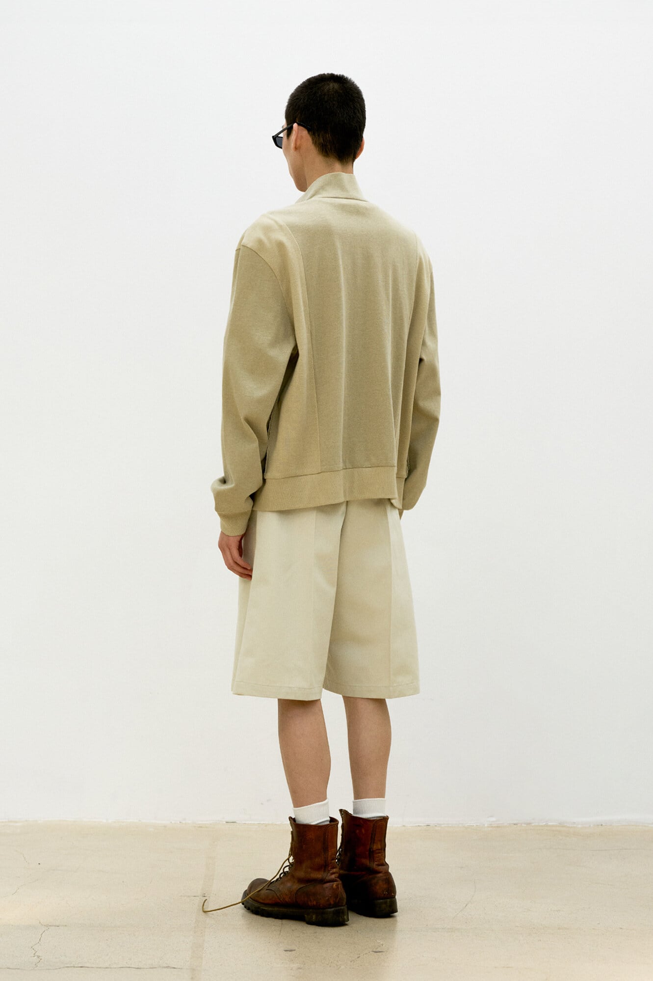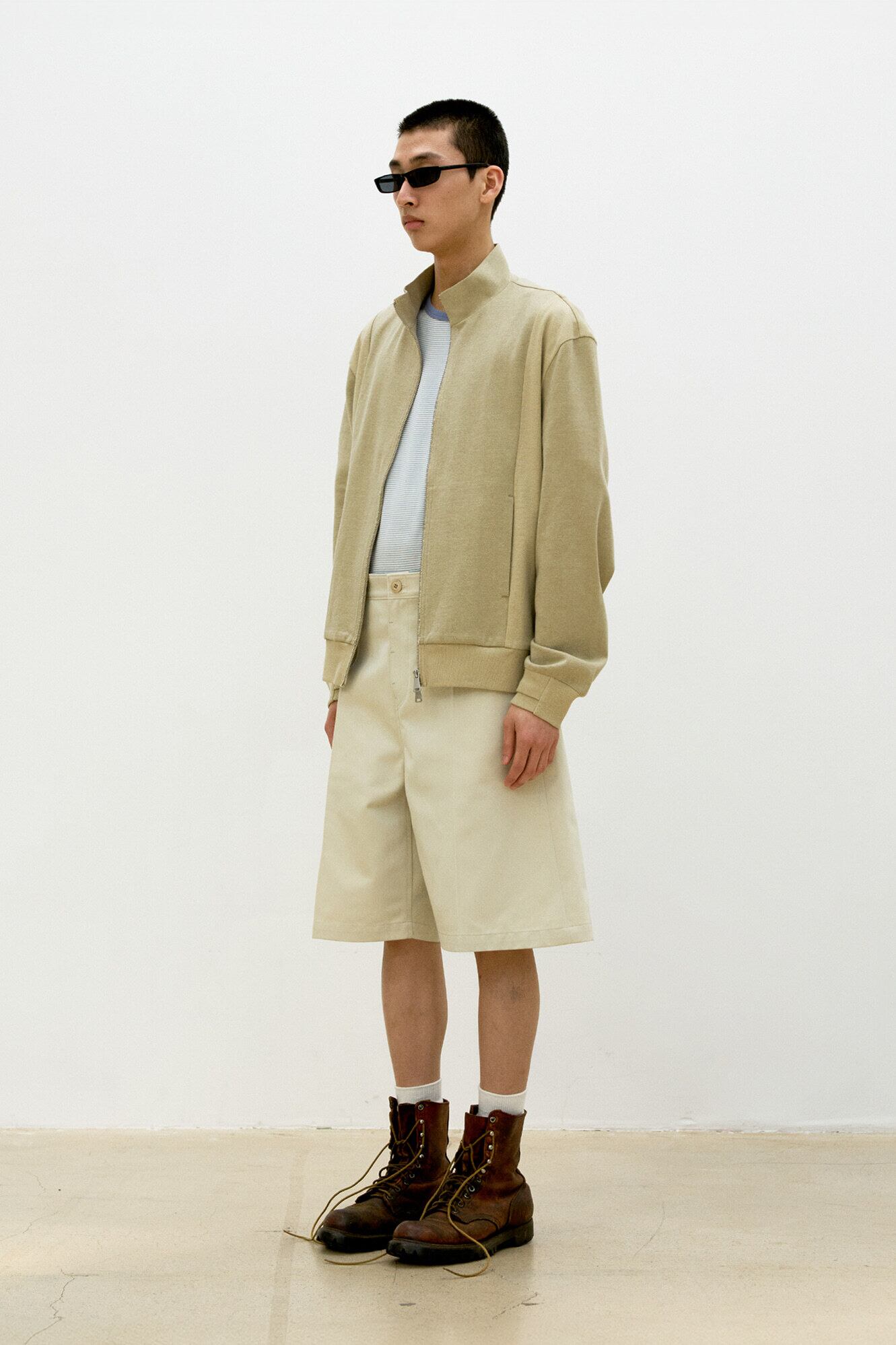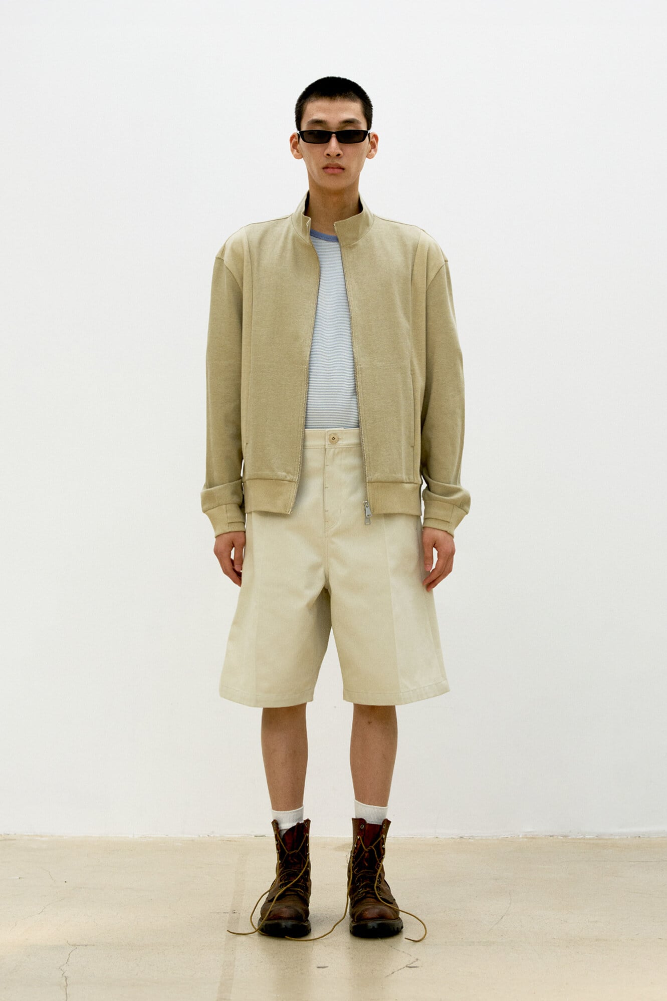 [COOR] Washed Cotton Stand Collar Mixed Zip Up (Washed Beige)