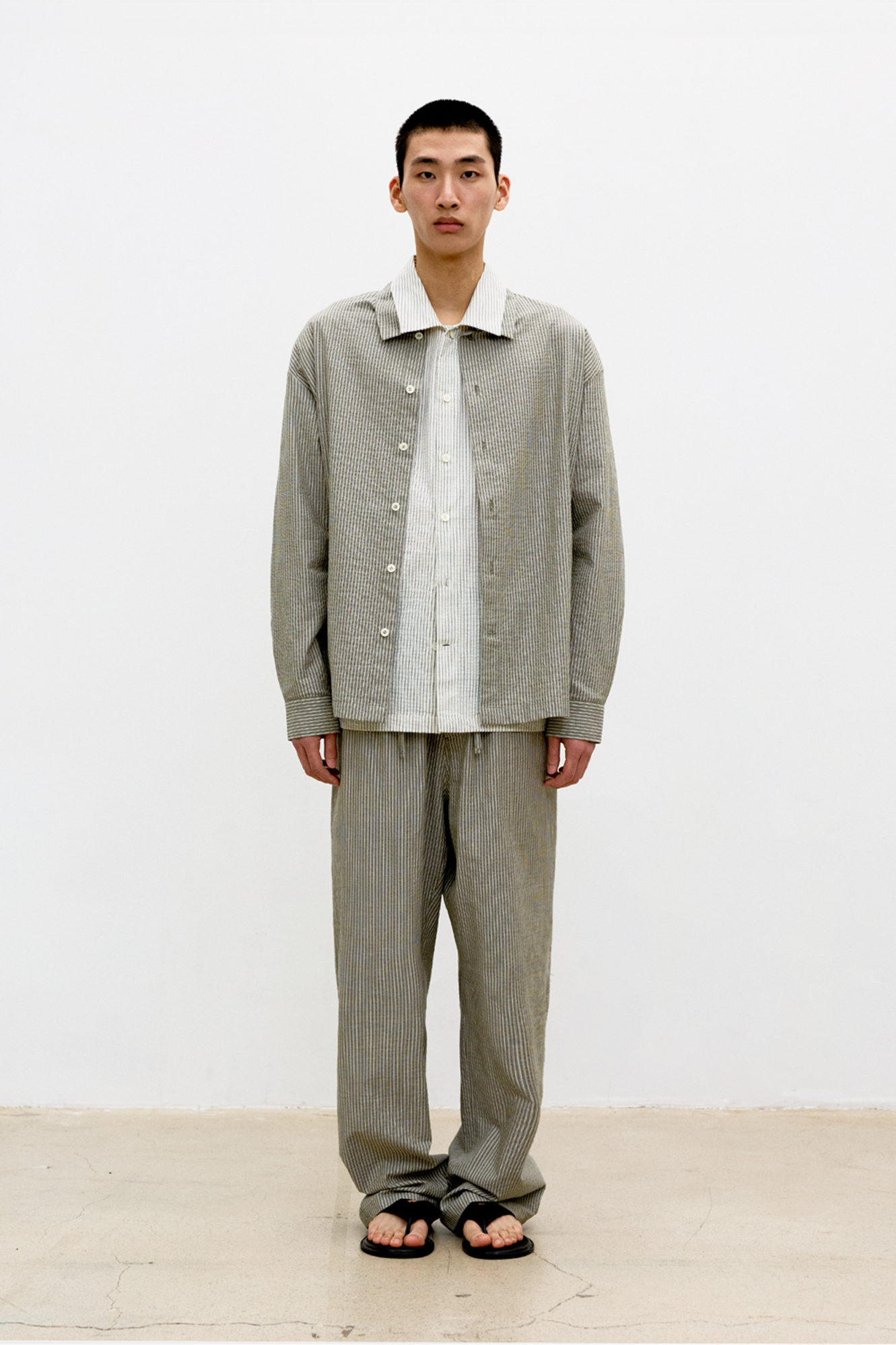 [COOR] Stripe Cotton Lounge Pants (Khaki)