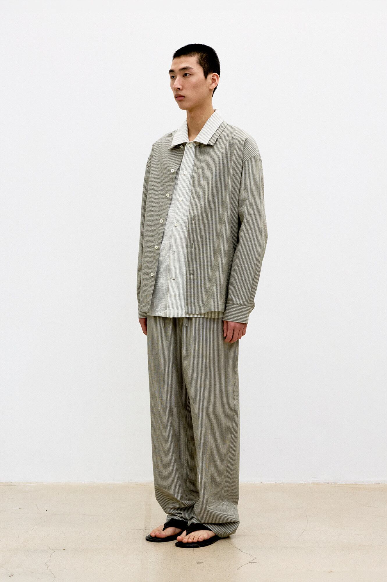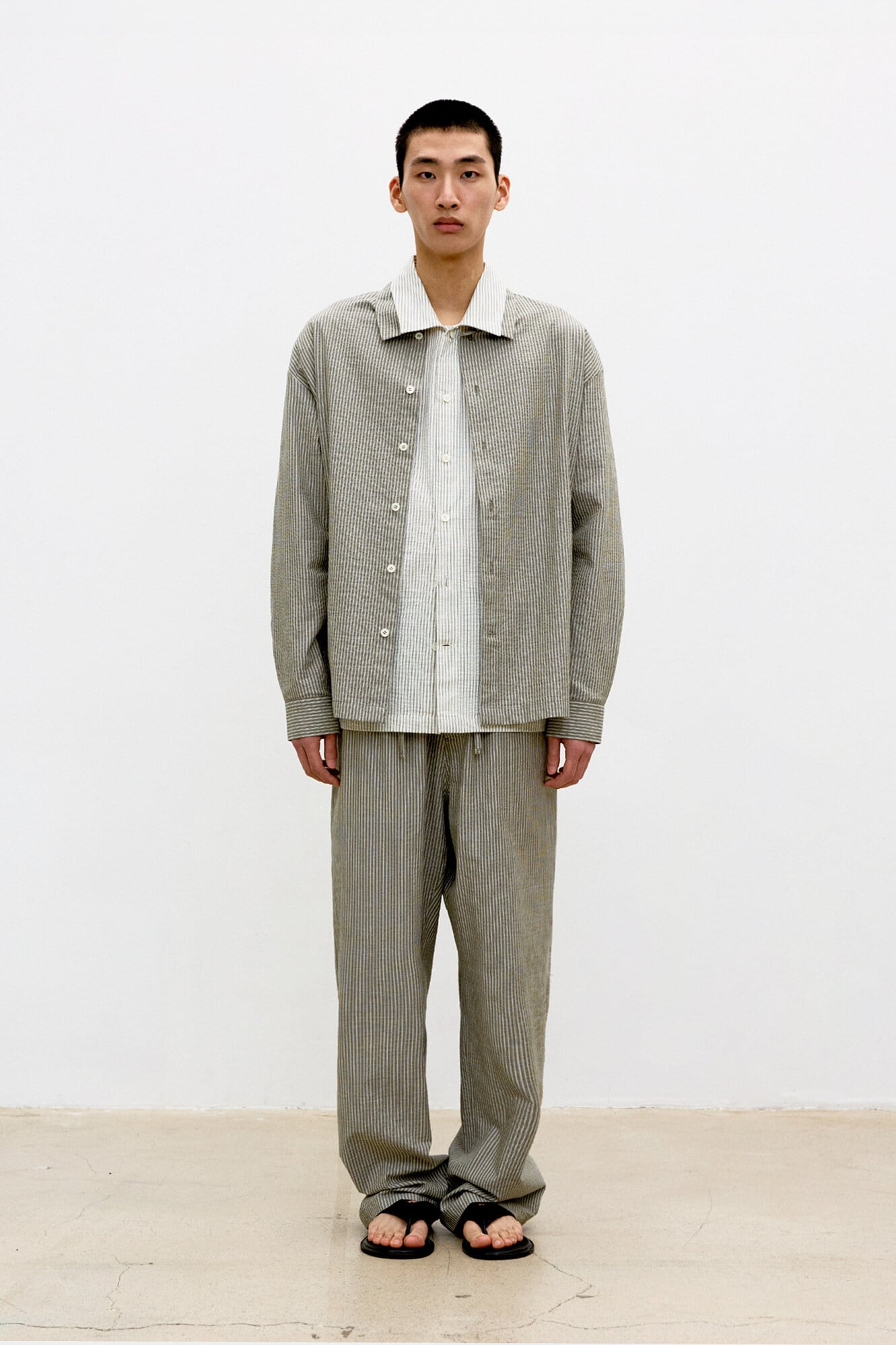 [COOR] Stripe Cotton Lounge Shirt (Khaki)