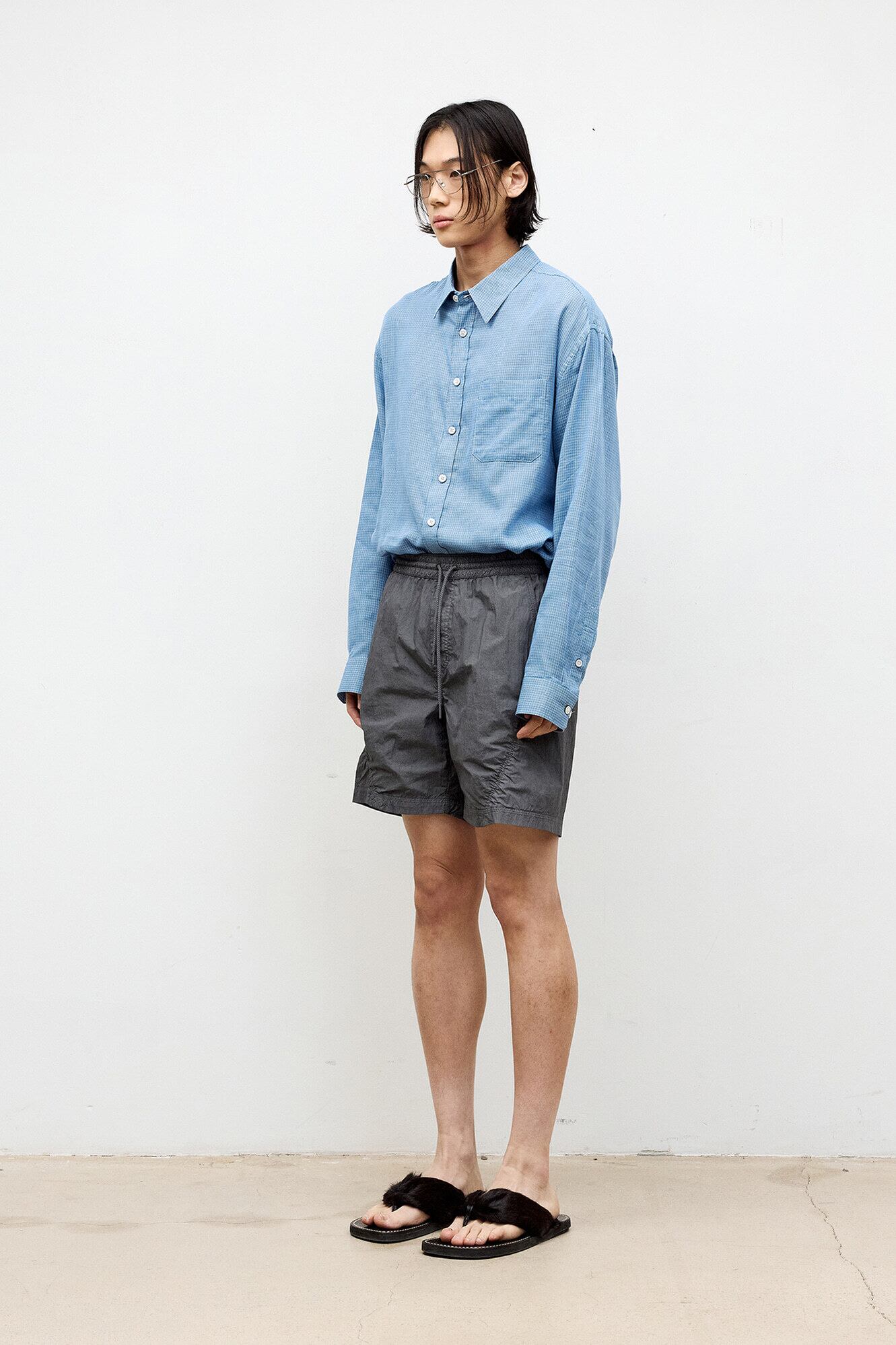 [COOR] Cotton Tencel Micro Blue Check Shirt (Blue Check)