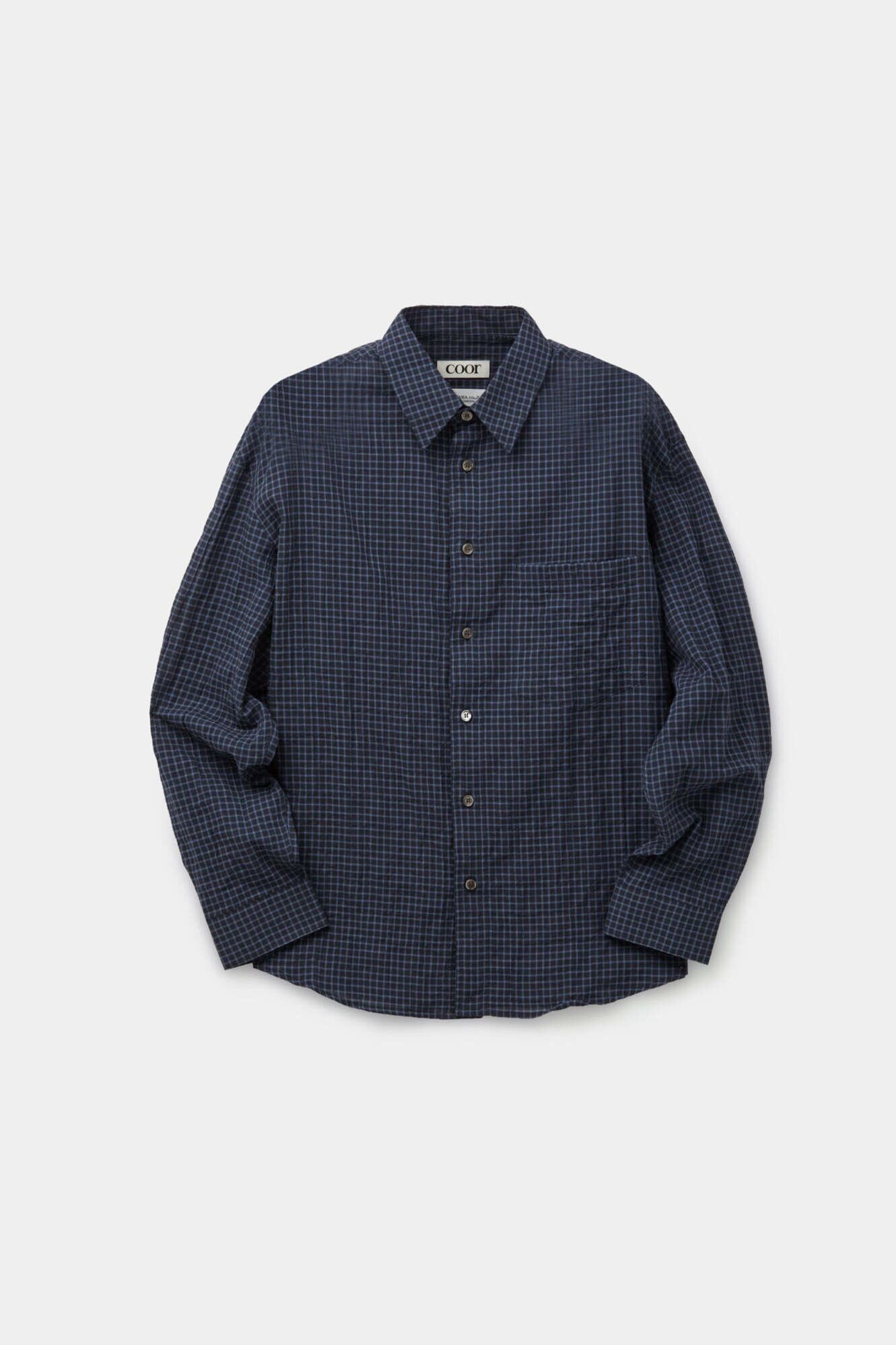 [COOR] Wrinkle Sheer Check Shirt (Navy)