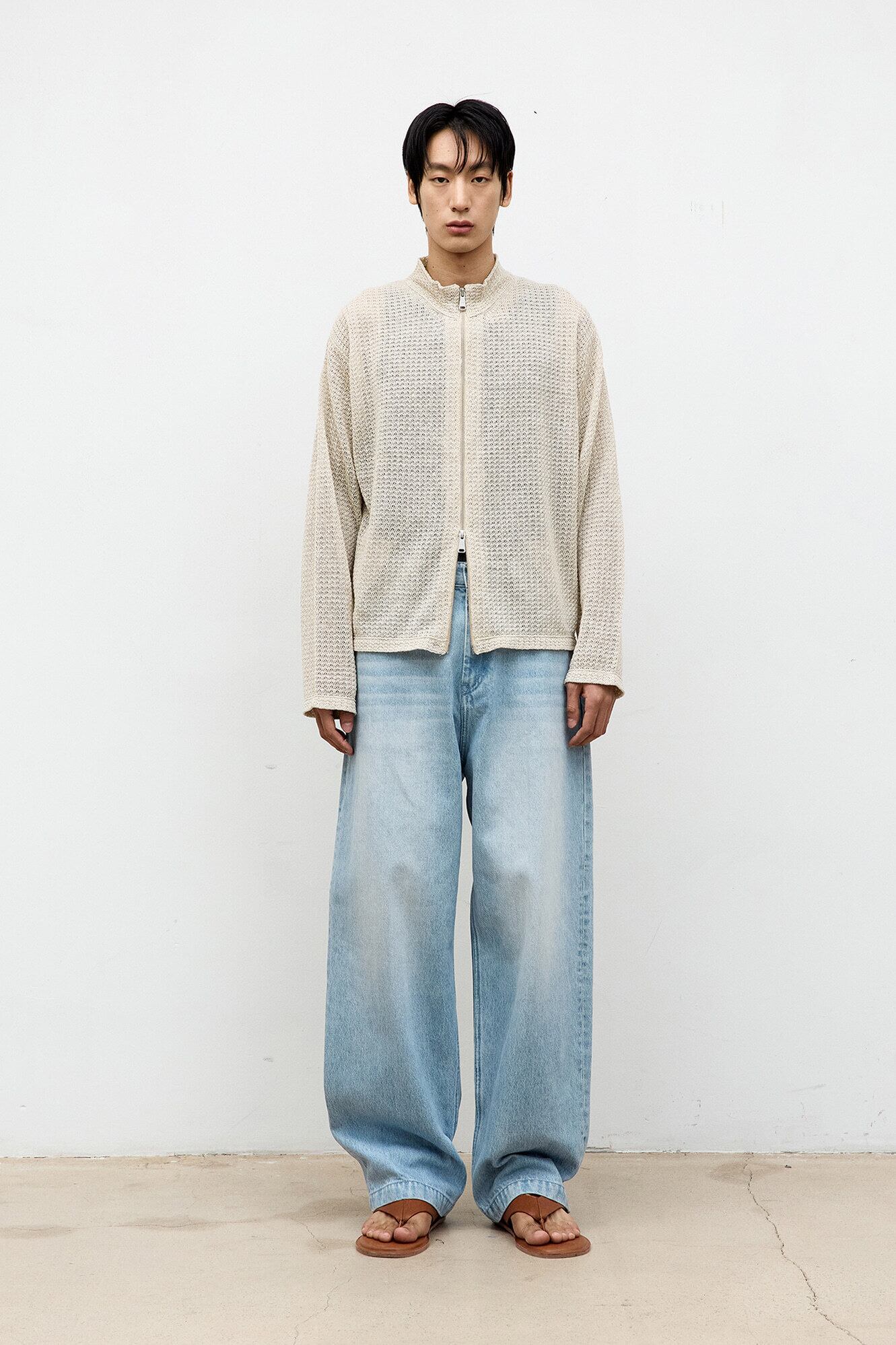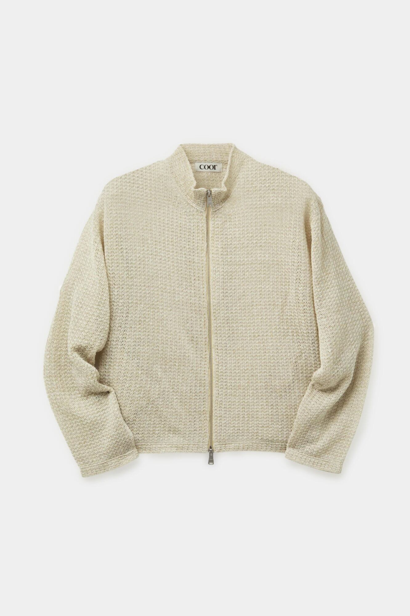 [COOR] Linen Blend Stand Collar Knit Zip-Up (Natural)