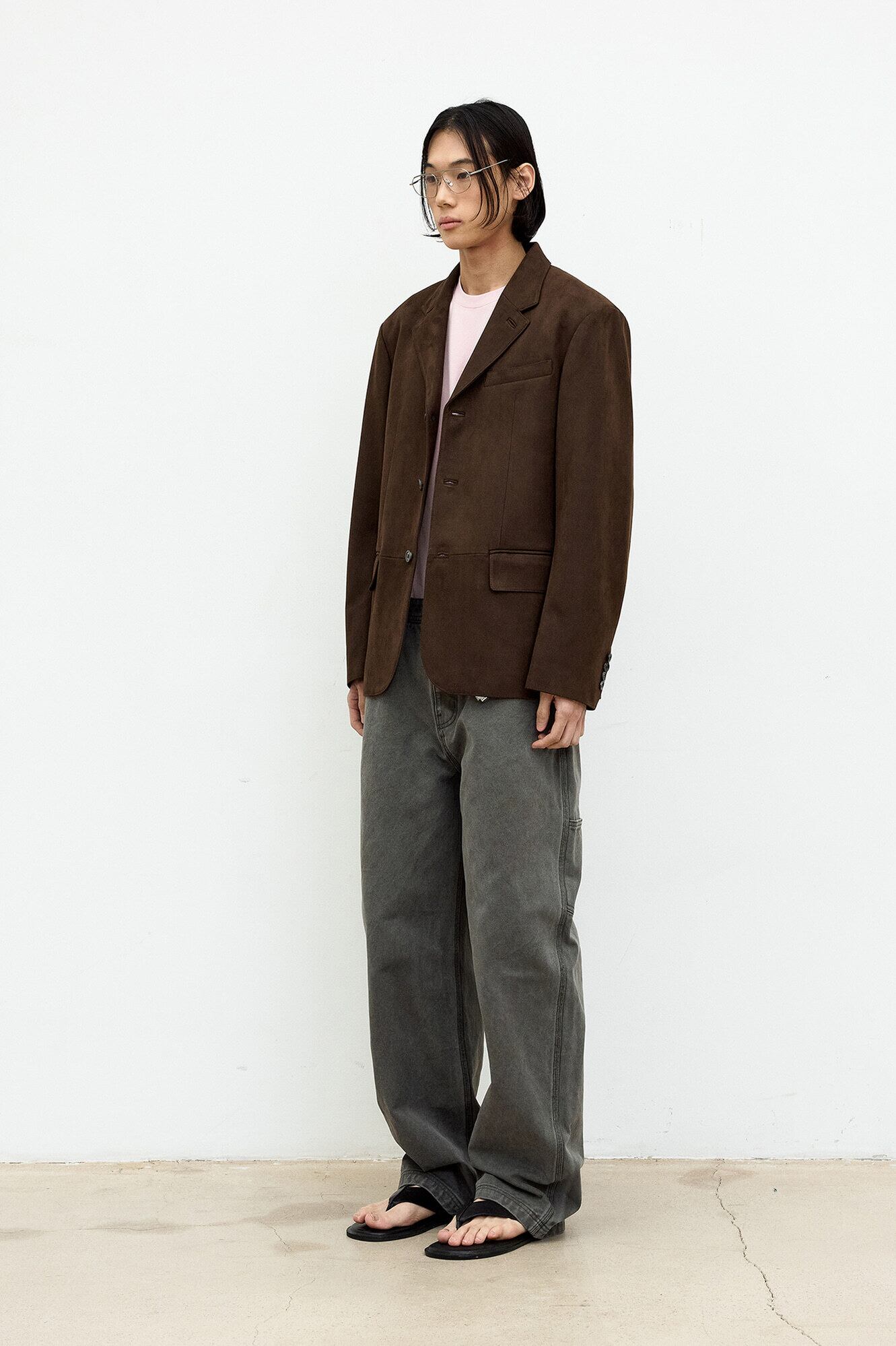 [COOR] Fake Suede Three Button Blazer (Dark Brown)