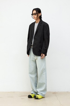 [COOR] Washed Linen Blend Two Button Blazer (Black)
