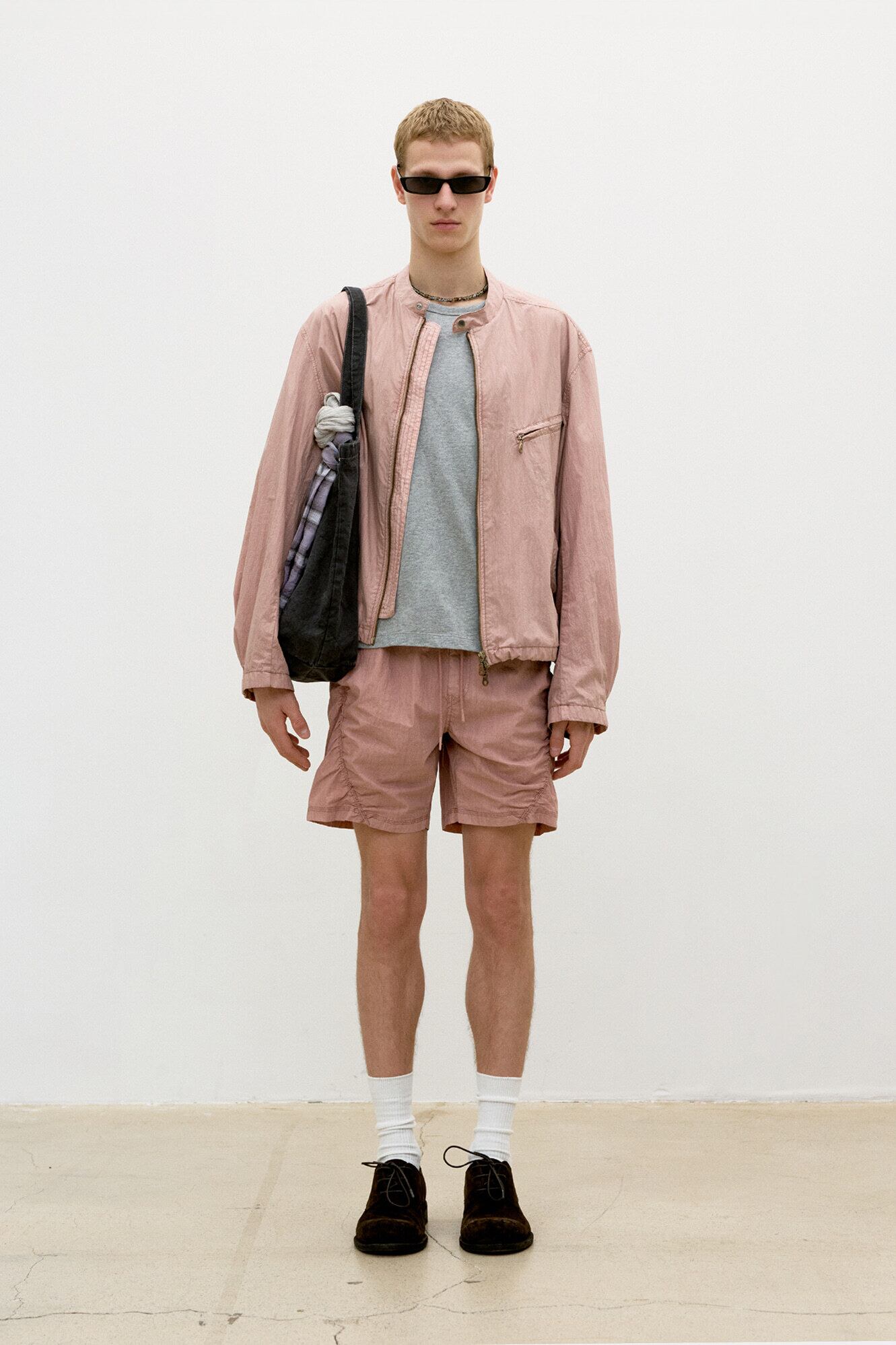 [COOR] Garment Dyed Biker Jacket (Washed Dusty Pink)