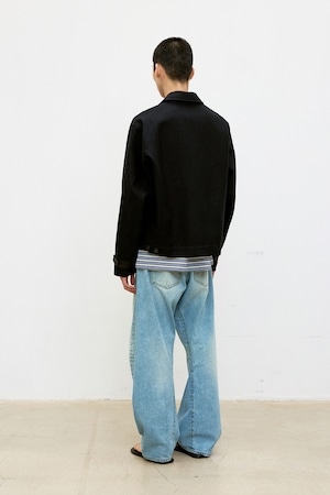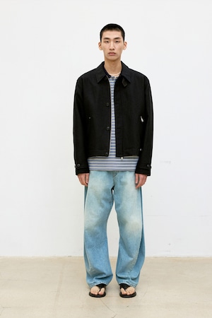 [COOR] Wool Linen Blend Leather Tab Jacket (Black)