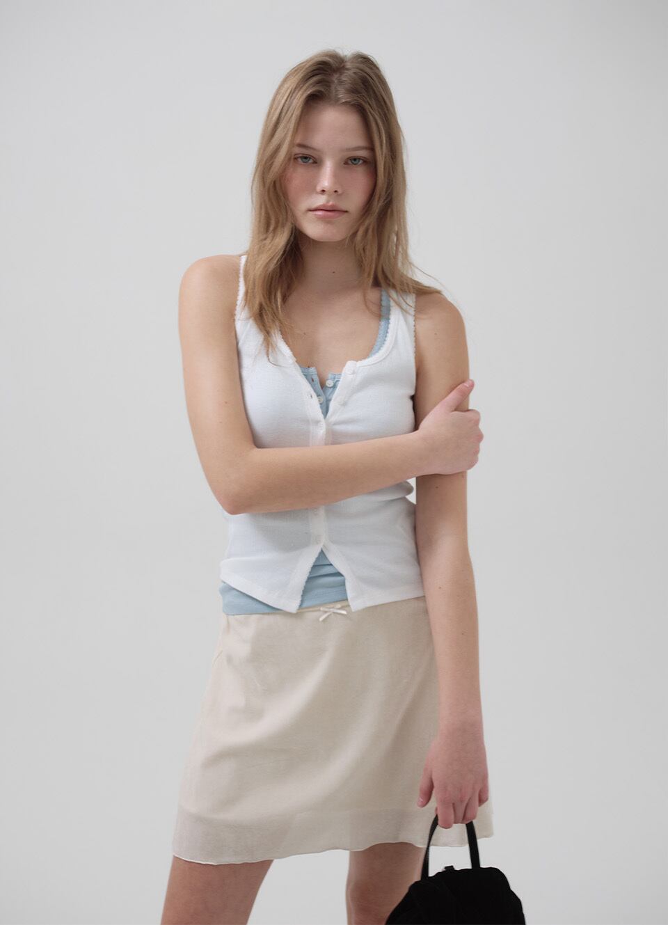 [The Barnnet] Clara Button Layer Tank Top_Ivory