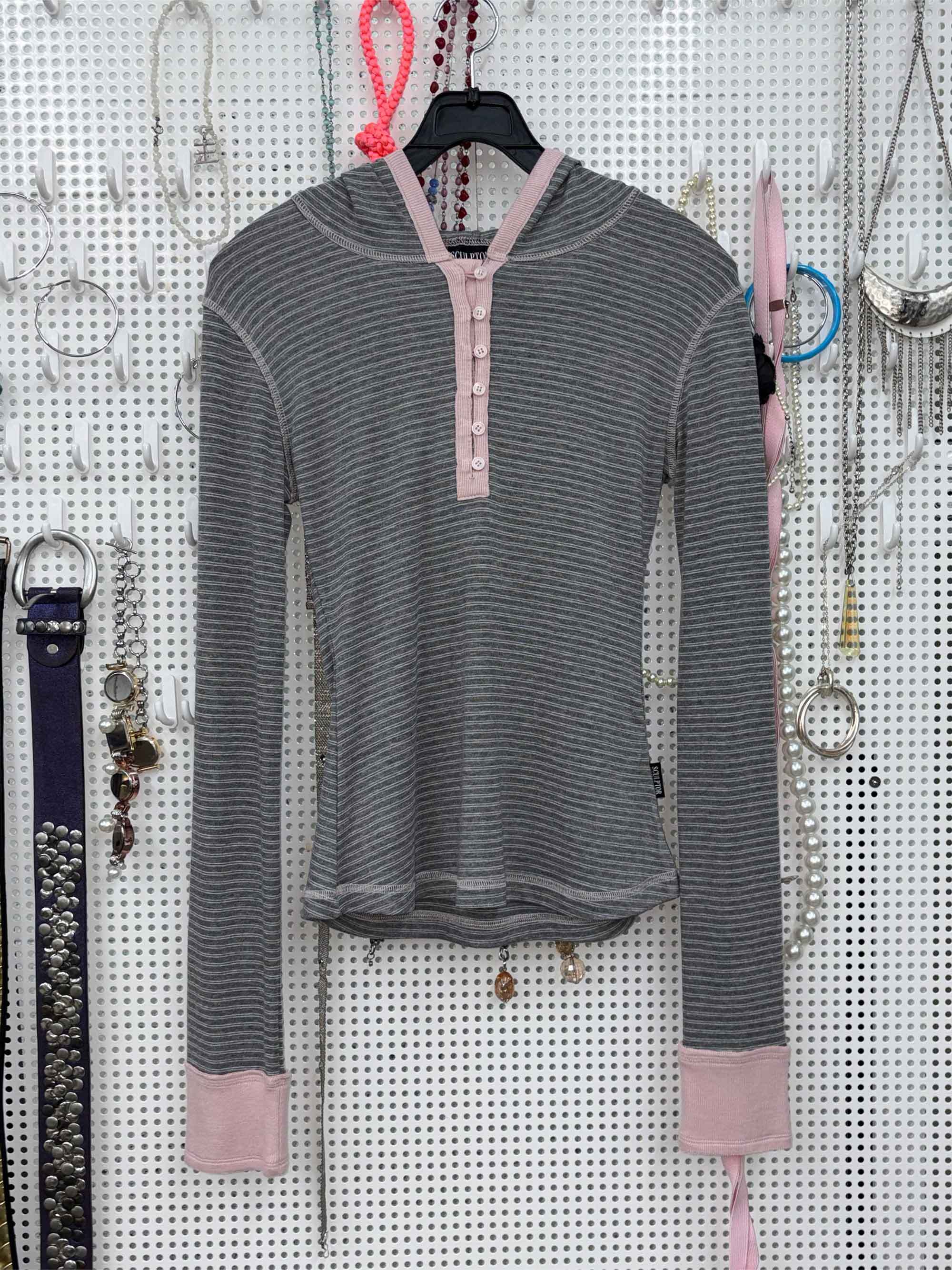 [SCULPTOR] Striped Button Down Hoodie Melange Gray 正規品 韓国ブランド 韓国通販 韓国代行 韓国ファッション スカルプター 日本 店舗