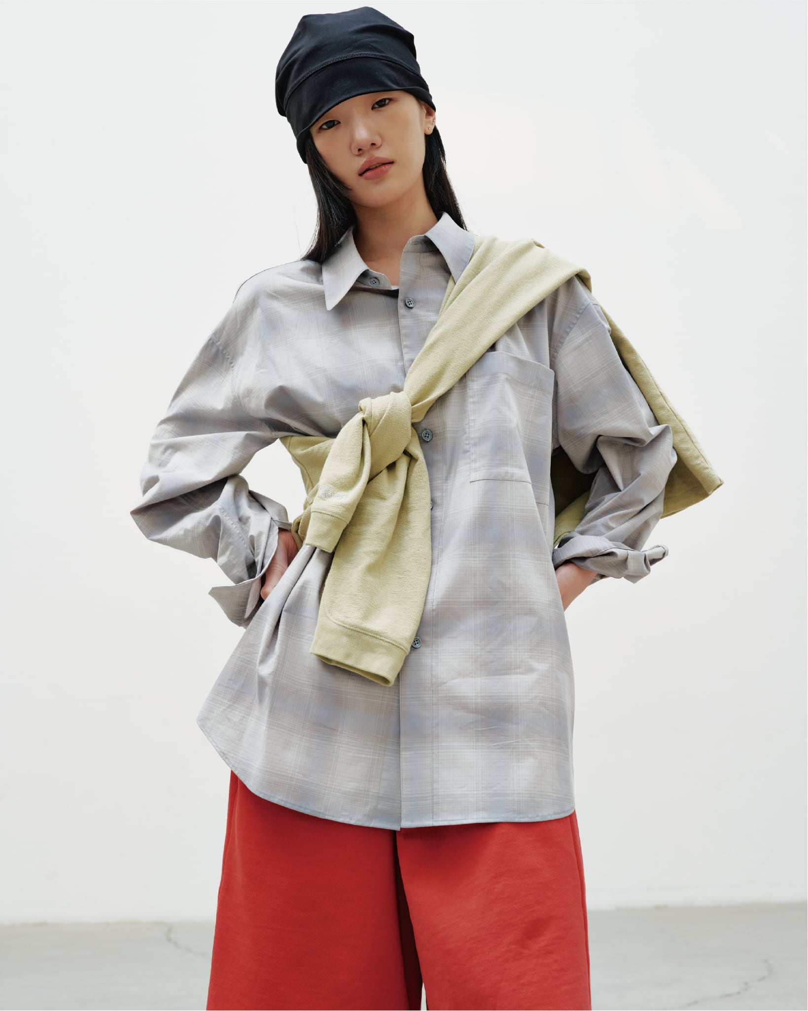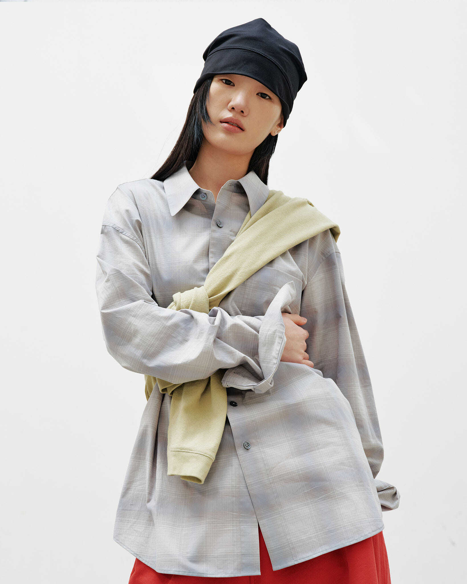 [999HUMANITY] EASY CHECK SHIRT V19 (POPLIN GREY) 正規品 韓国 ブランド 韓国ファッション 韓国代行 999 ヒューマニティ HUMANITY 日本 店舗