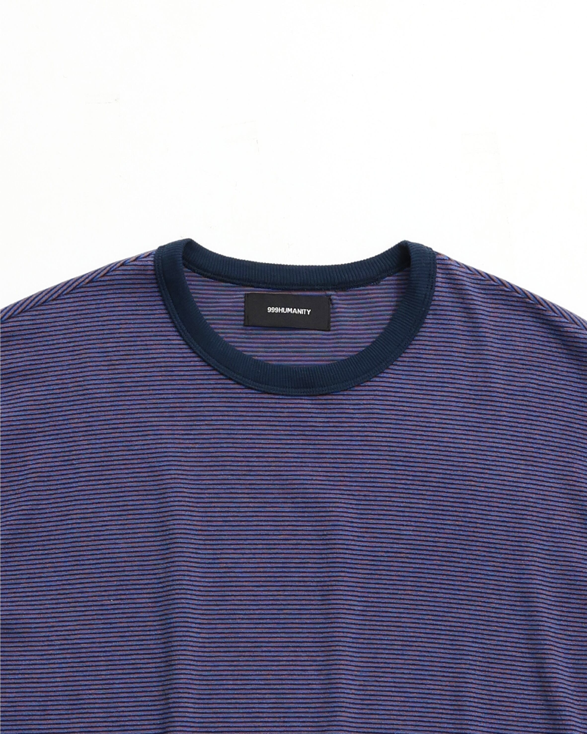 [999HUMANITY] STRIPE HALF TEE (BLUE BROWN)