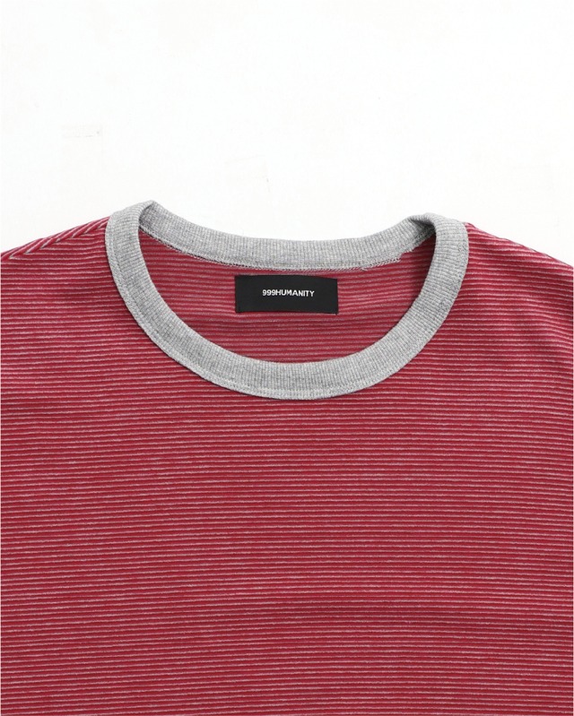 [999HUMANITY] STRIPE HALF TEE (PINK GREY) 正規品 韓国 ブランド 韓国ファッション 韓国代行 999 ヒューマニティ HUMANITY 日本 店舗